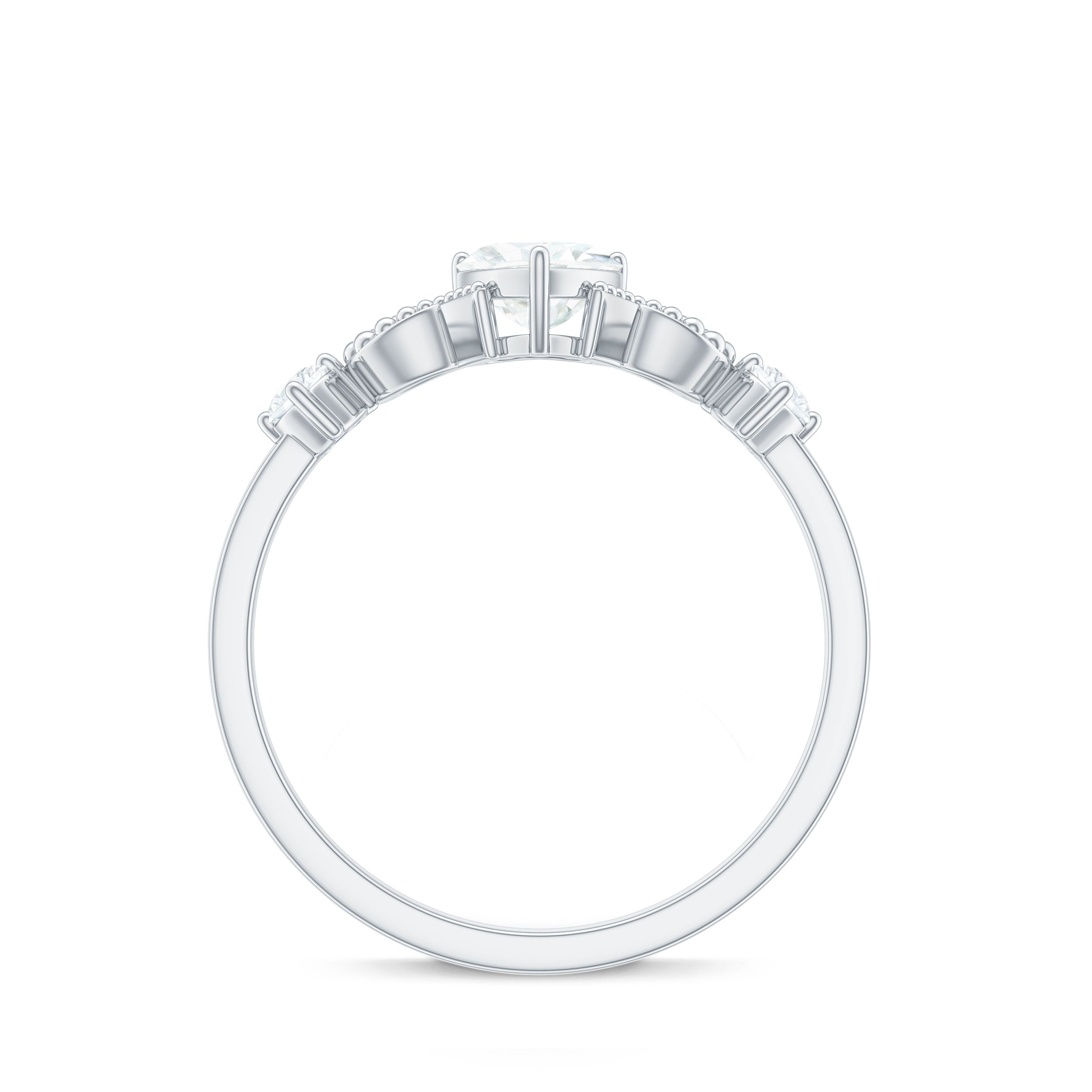This delicate and timeless Simulated Diamond Jewelry is the perfect symbol of your love. The minimal style makes it perfect for everyday wear and easy to stack with other jewelry. Heavenly crafted in Gold with Heart and Round Shape Cubic Zirconia set in Prong Setting with gold beaded detail, makes a perfect CZ Heart Engagement Ring.