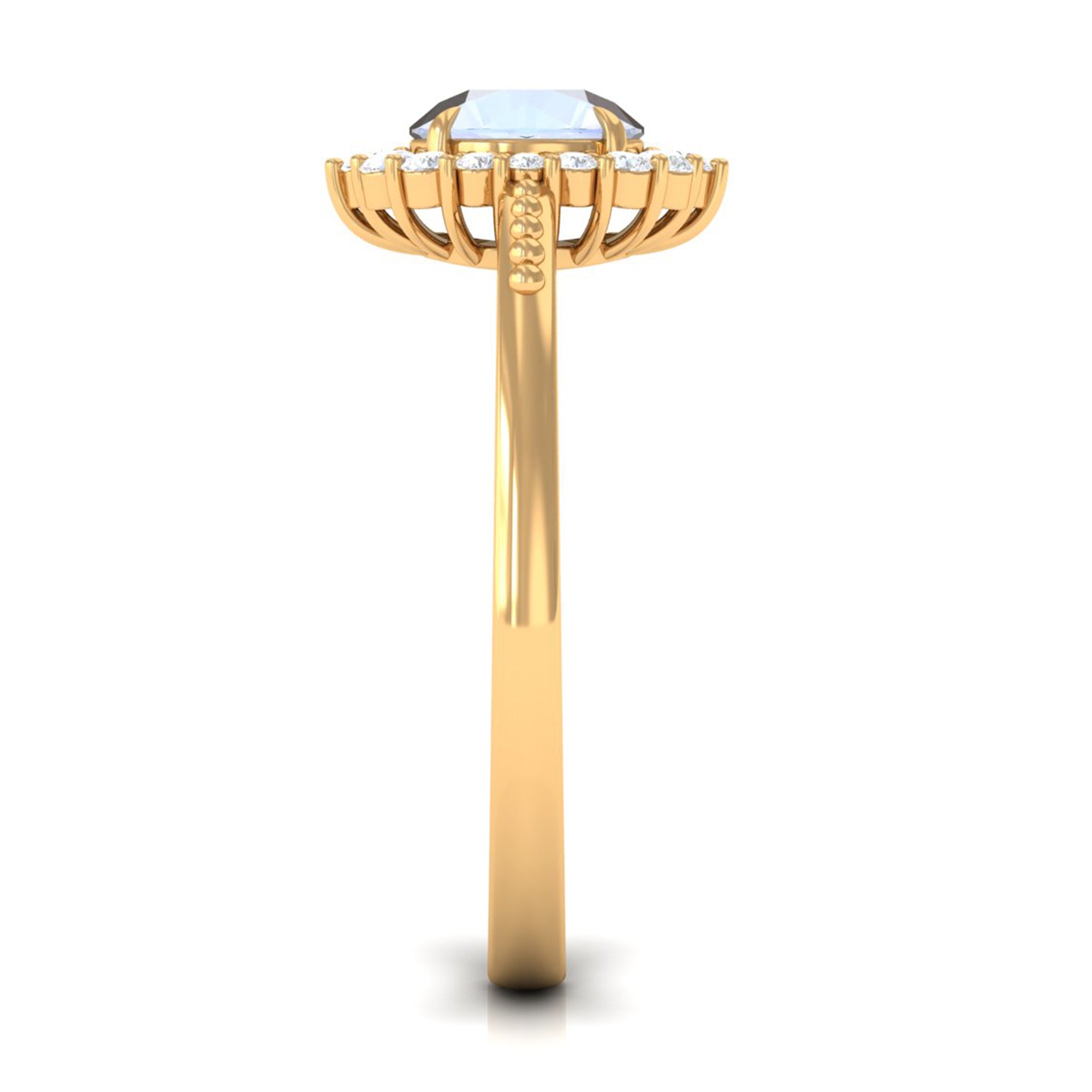 Moonstone Engagement Ring has an extraordinary sparkle because of its Blue hue, having Round Diamond Halo to add more charm to the wearer. This June Birthstone Ring is crafted in Gold for enchanting appeal. Make your special one feel elated with this perfect Moonstone Gold Ring.