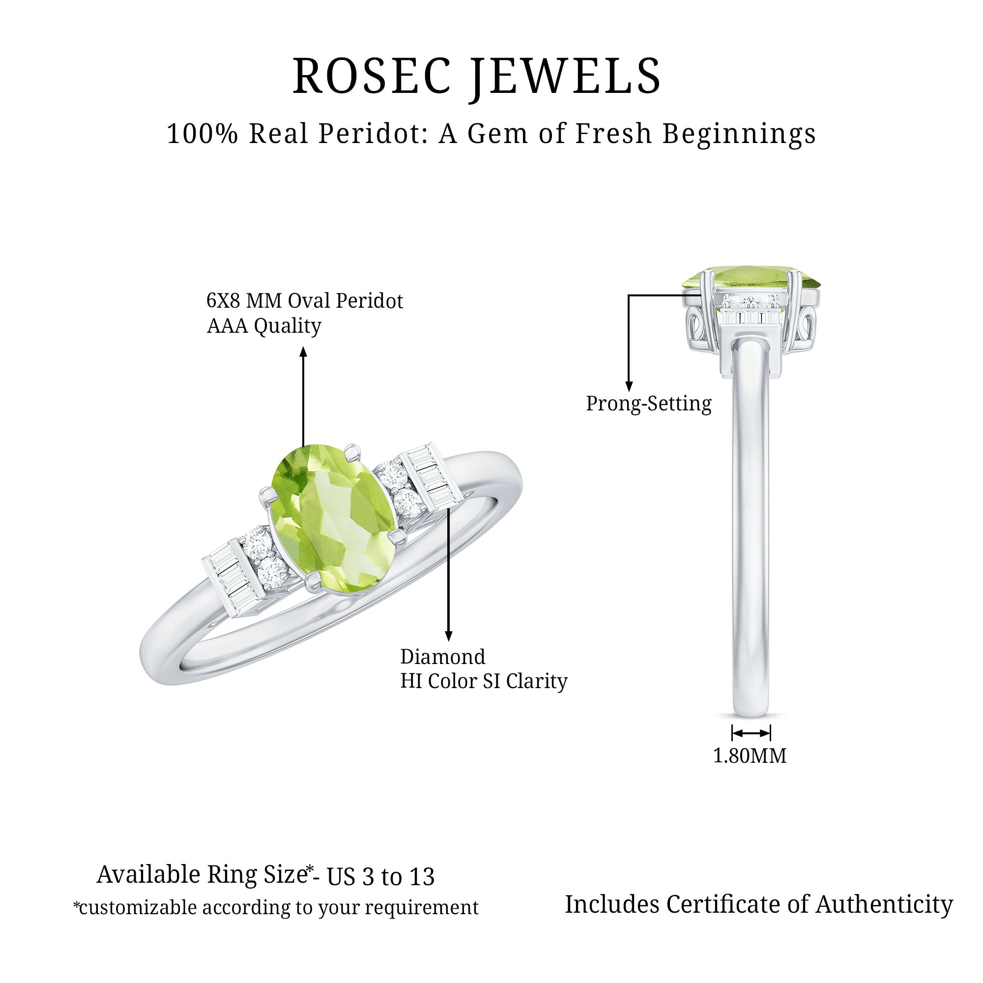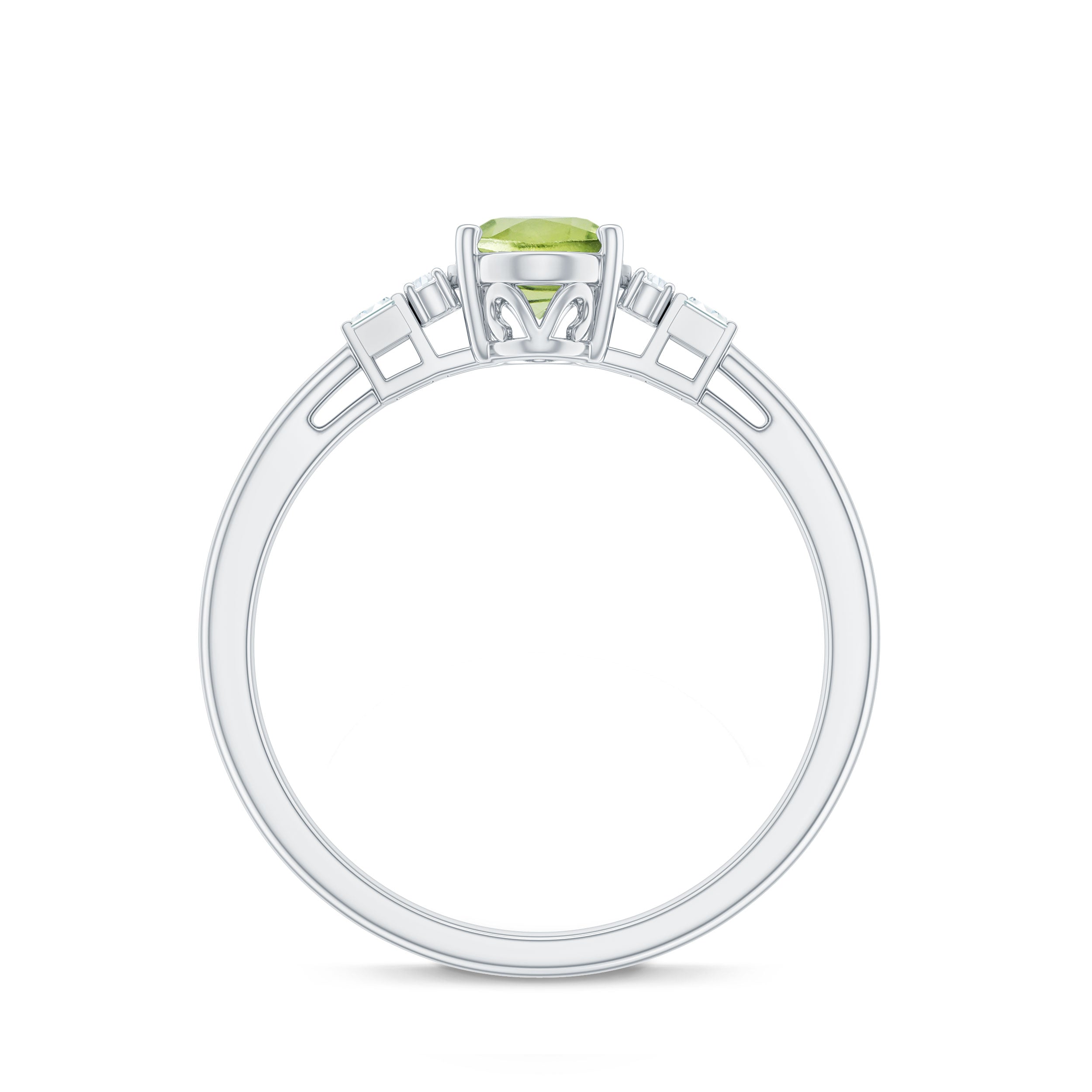 3/4 CT Natural Oval Cut Peridot Classic Engagement Ring with Diamond