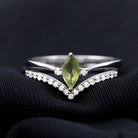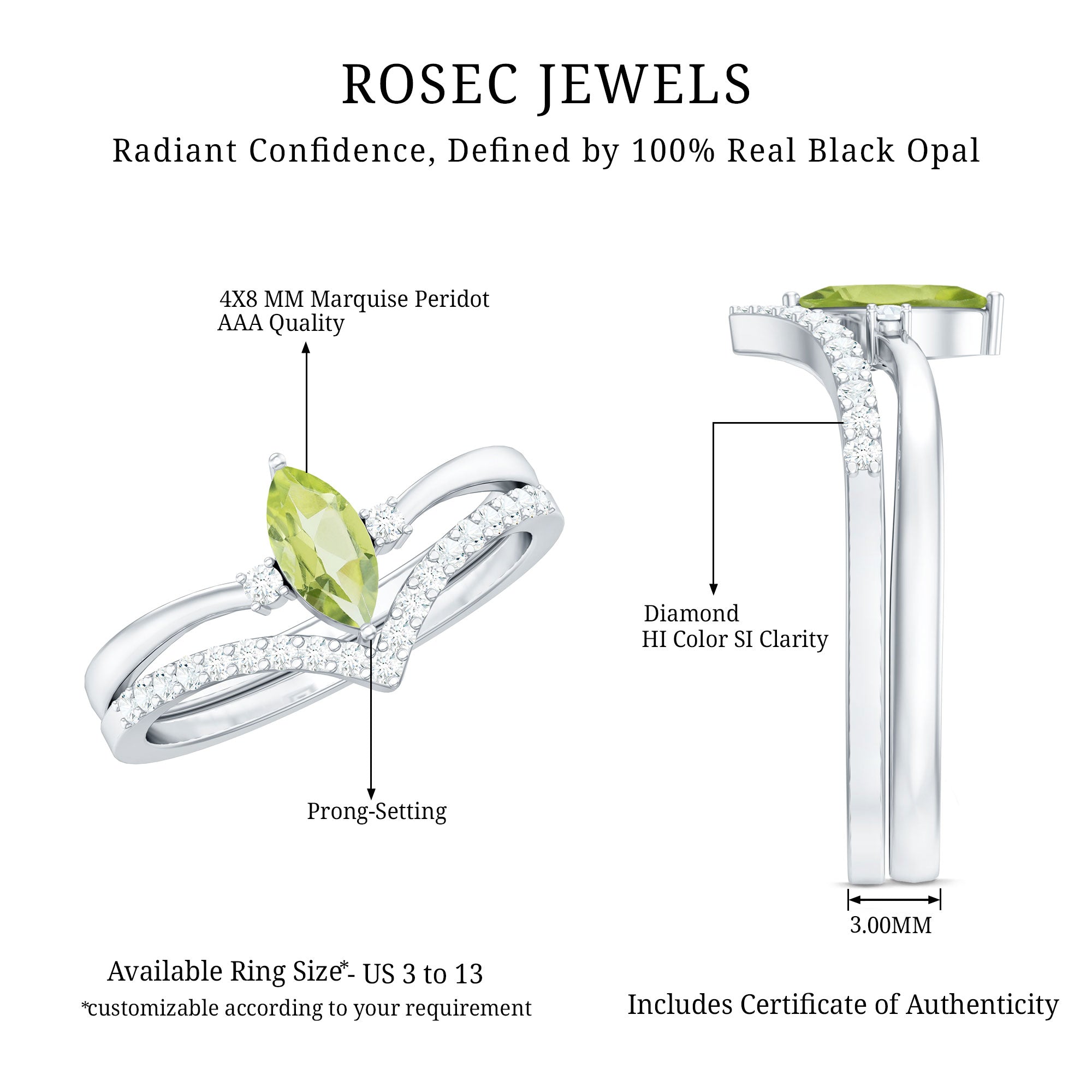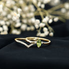 Mark the special day of your life with this Stackable Ring Set Crafted with Gold. This Bridal Ring Set is designed with Solitaire Marquise Cut Peridot Ring with Diamond Side Stone and Diamond Band.