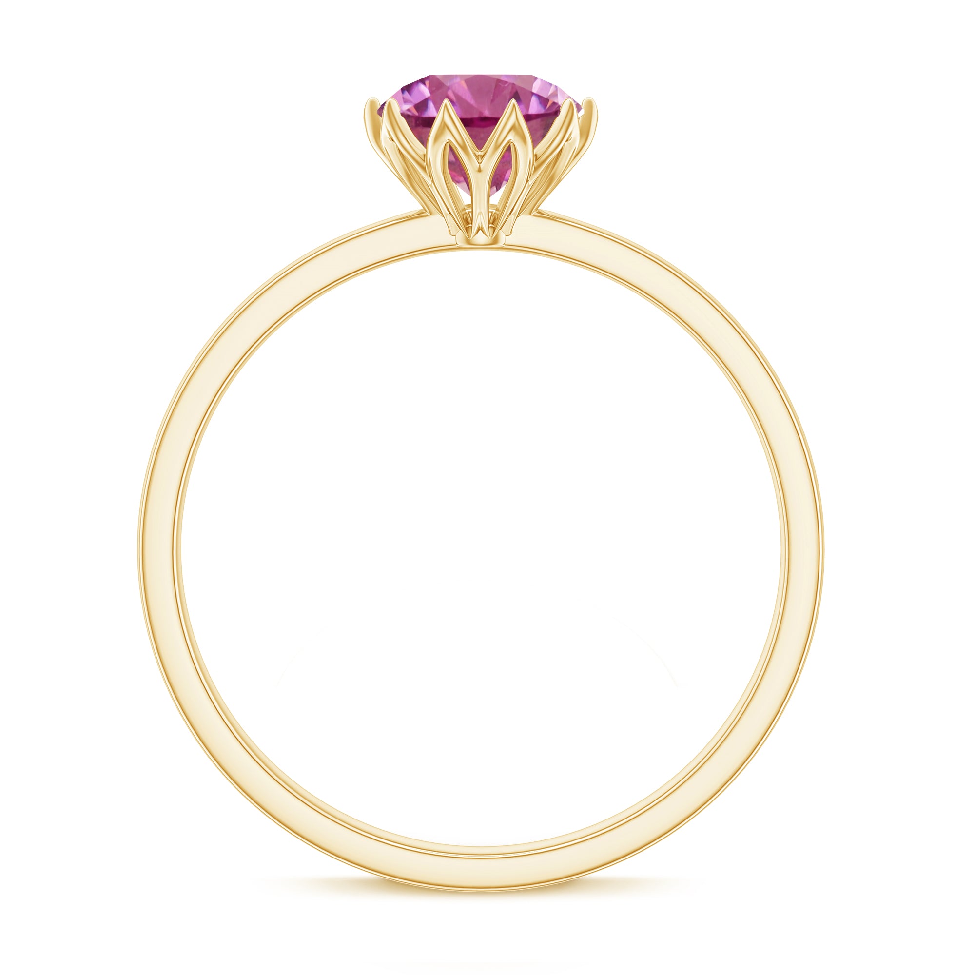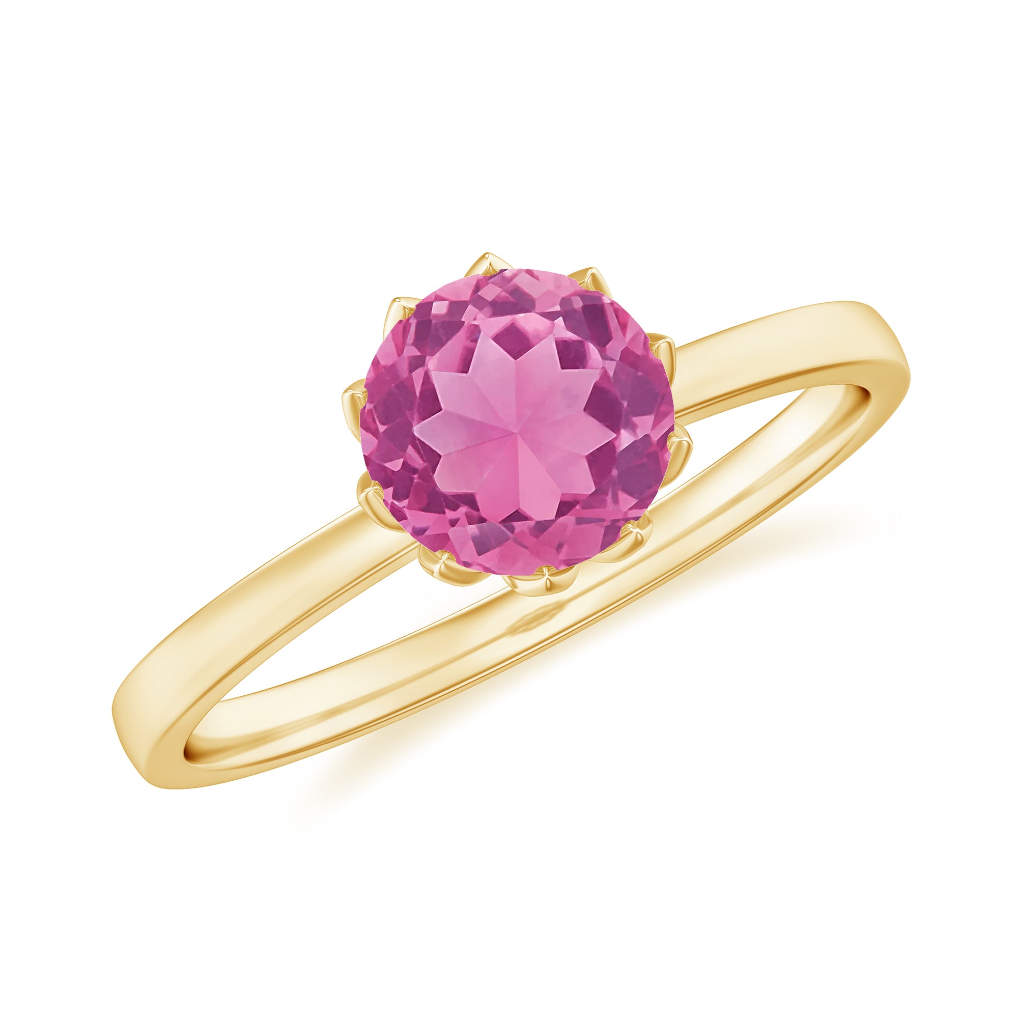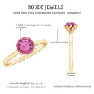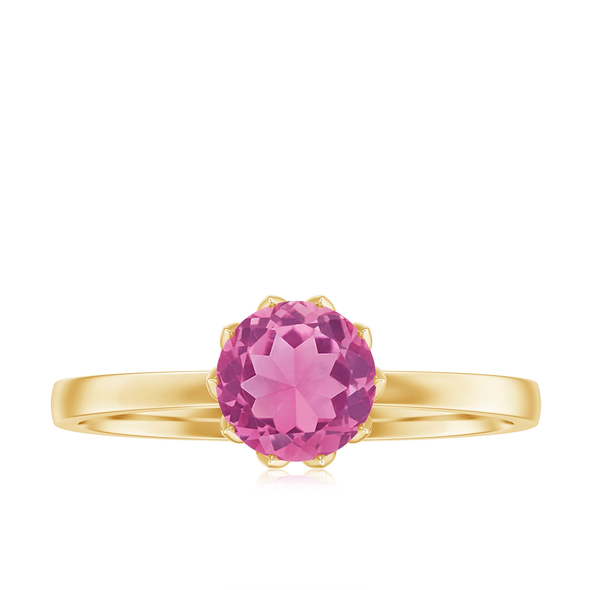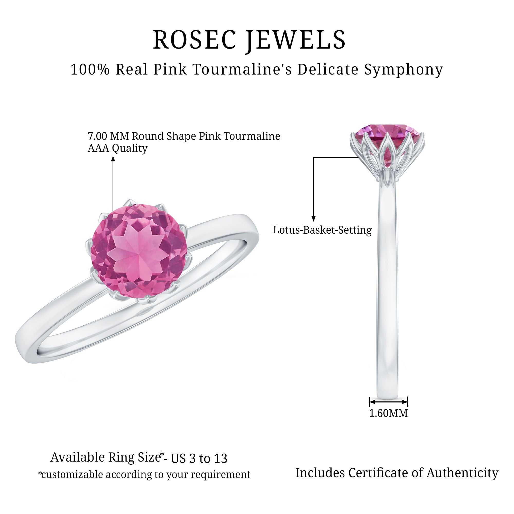 Adorn your finger with elegance in this Solitaire Ring. The exquisite 7 MM Round Shape Pink Tourmaline gemstone set in Lotus Basket Setting, radiates with a soft, rosy allure. This Pink Gemstone Ring embodies both grace and symbolism, making it the perfect choice for those who appreciate both aesthetics and deeper meaning.