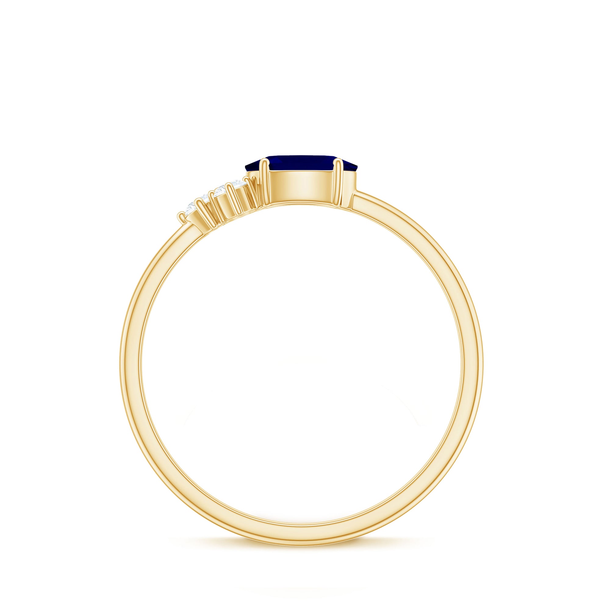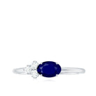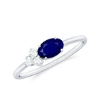 3/4 CT Oval Cut Blue Sapphire Promise Ring with Diamond Trio