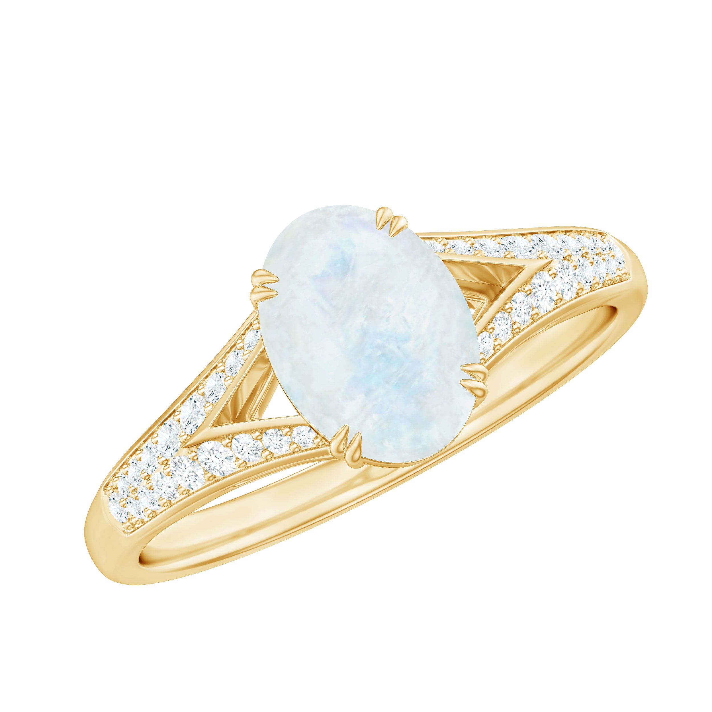 3/4 CT Oval Cut Moonstone Solitaire Engagement Ring with Diamond Accent