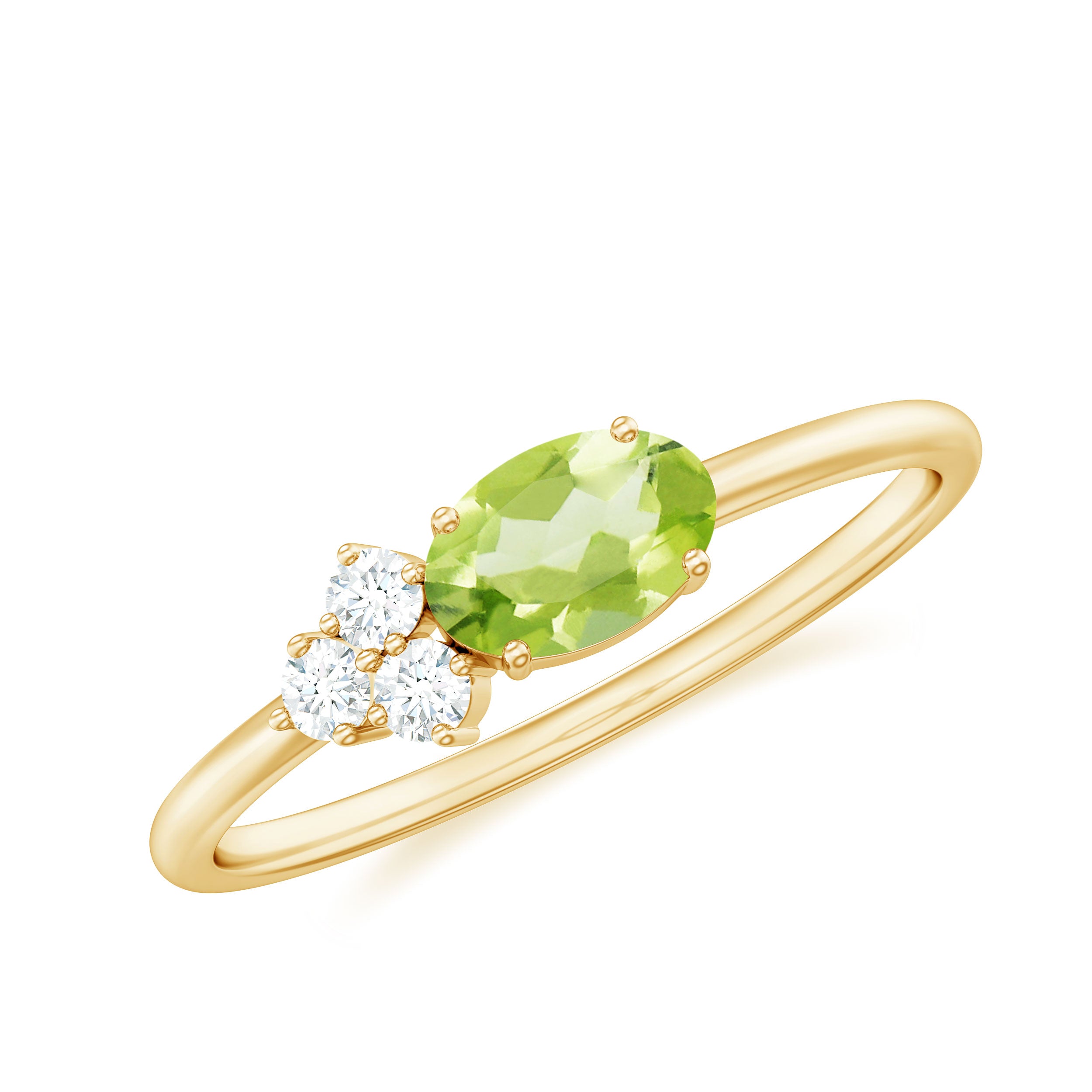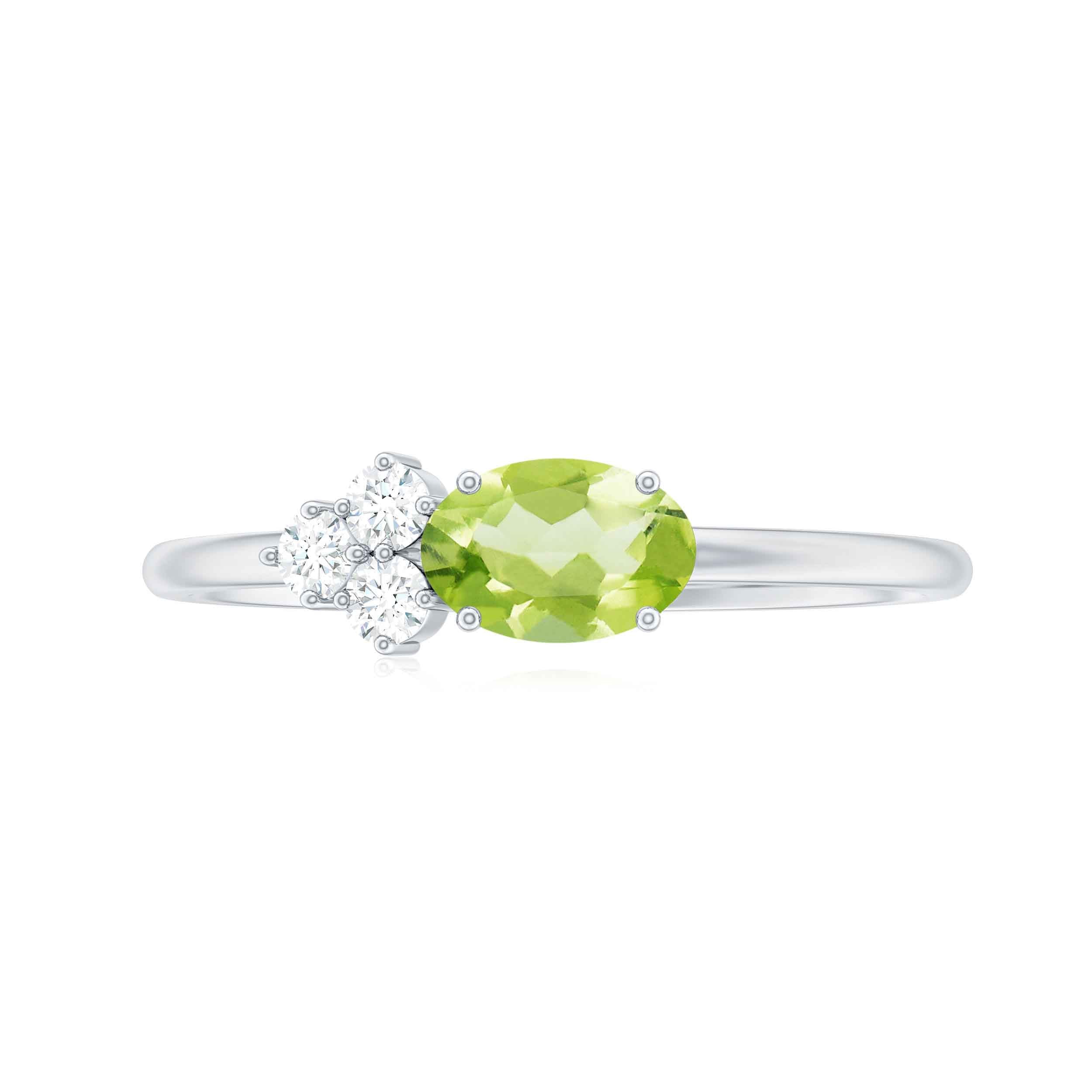 3/4 CT Oval Cut Peridot Promise Ring with Diamond Trio