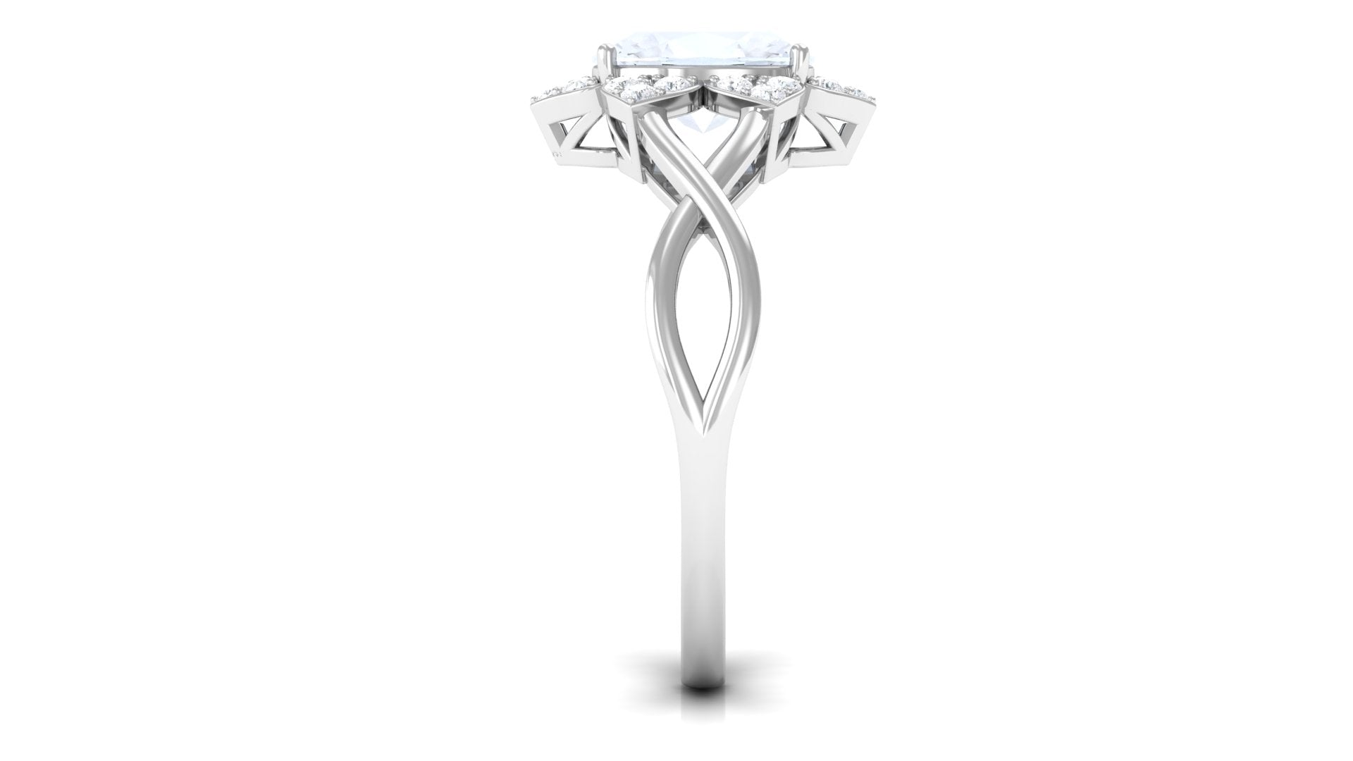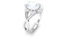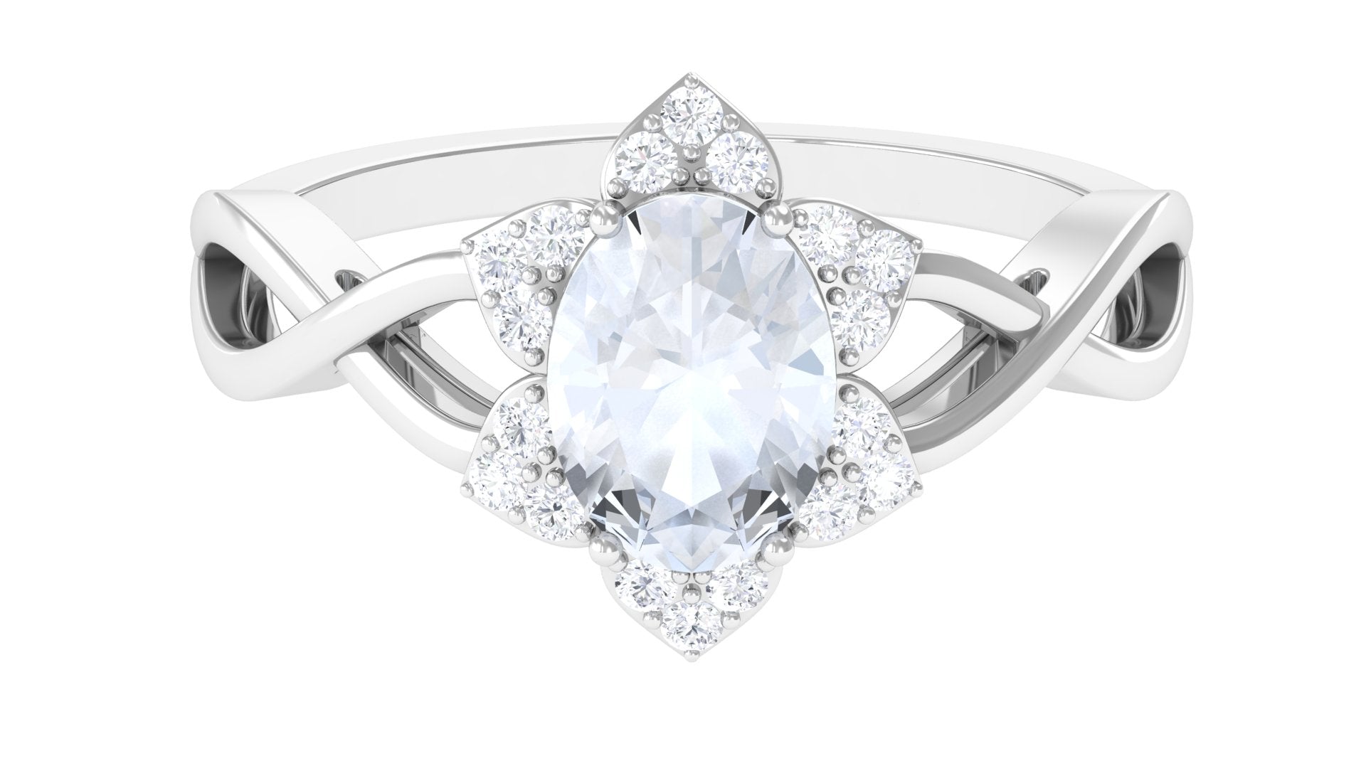 3/4 CT Oval Cut Solitaire Moonstone and Diamond Floral Halo Ring