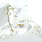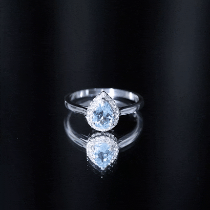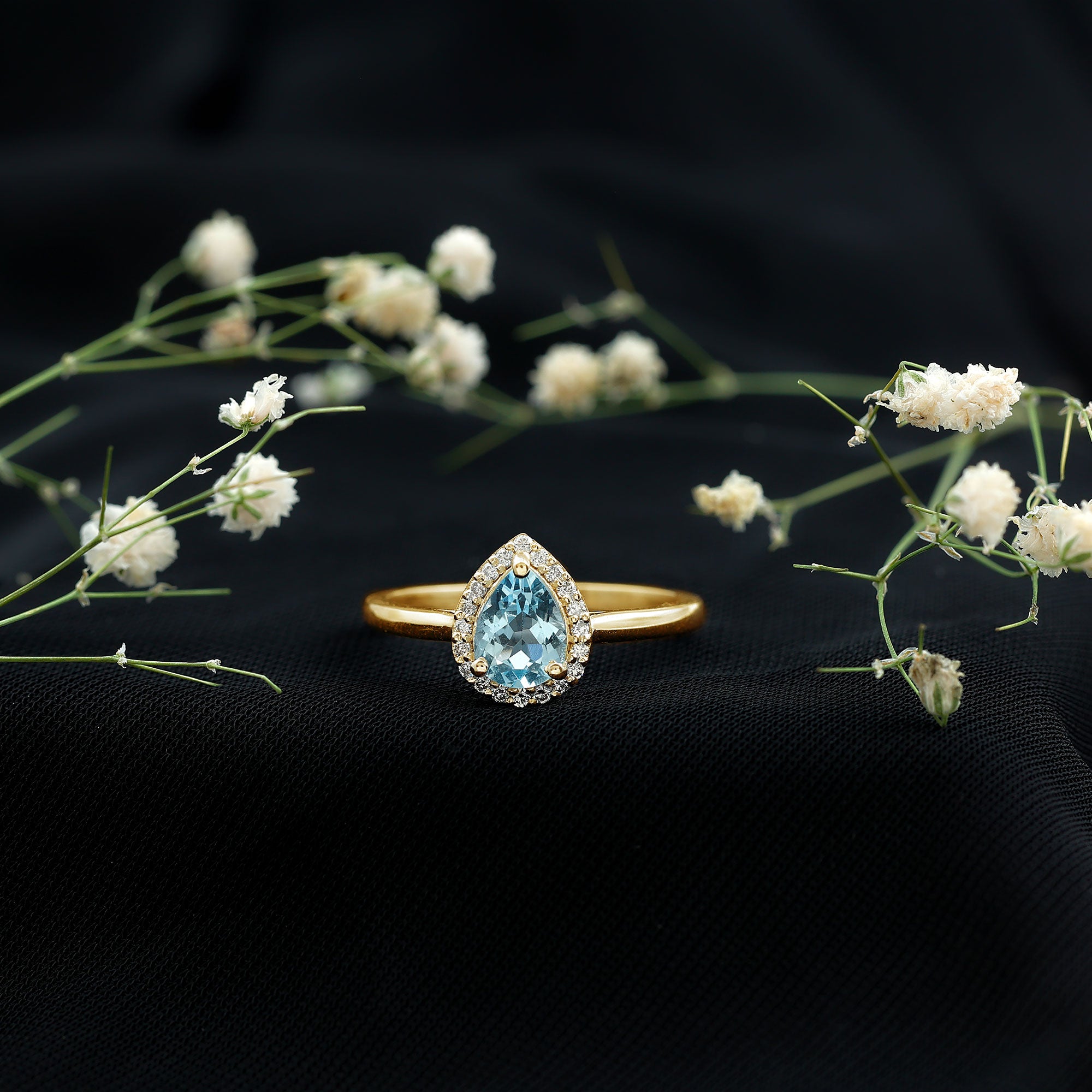 3/4 CT Pear Cut Aquamarine Solitaire Engagement Ring with Diamond Halo