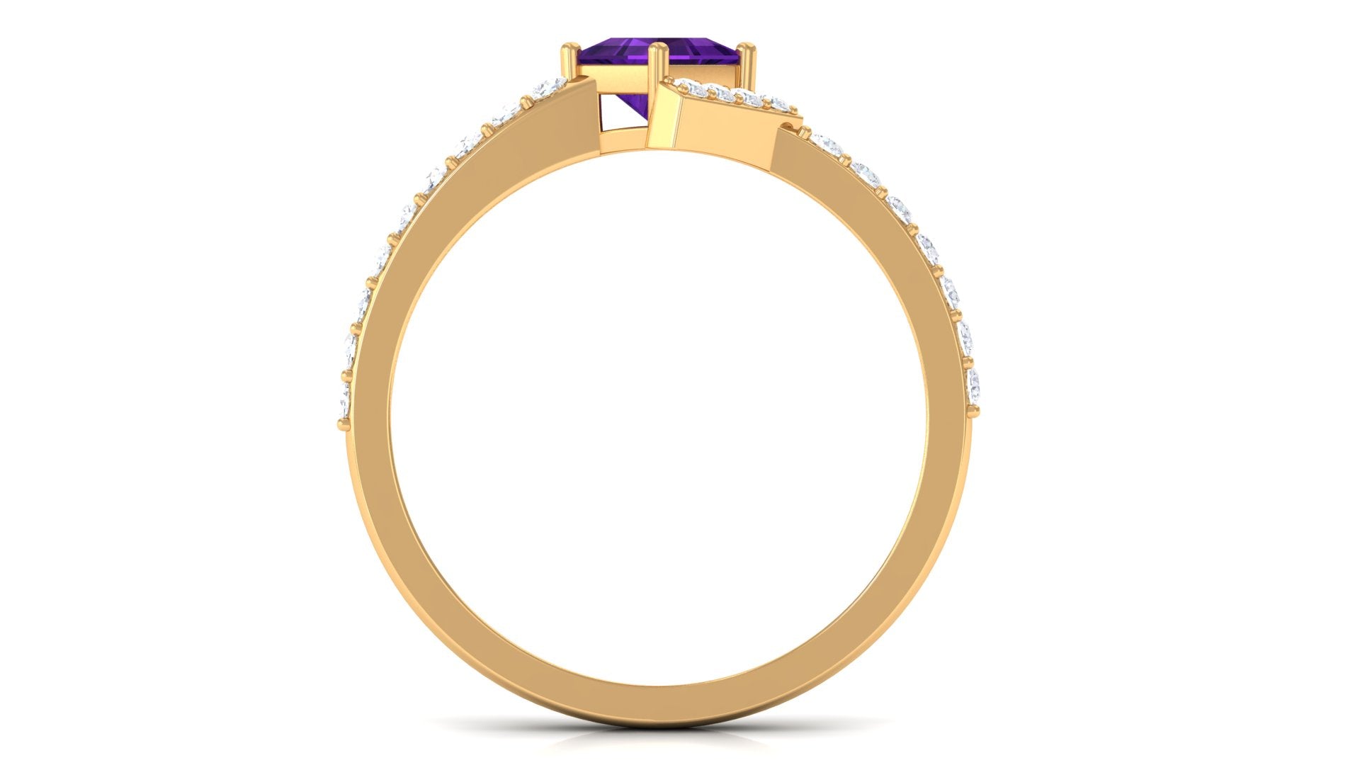 3/4 Ct Princess Amethyst Half Halo Promise Ring with Diamond