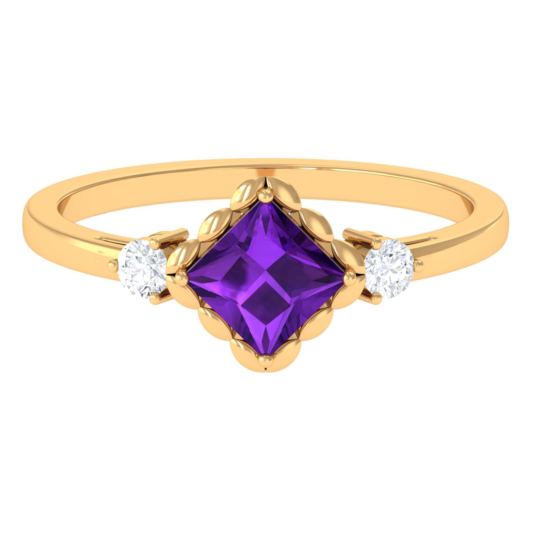 Designed with utmost love and care, this Princess Cut Amethyst Engagement Ring is crafted to offer a luxurious charm. This Amethyst Ring is embellished with Round Diamond flanking to amplify the beauty of this ring. This Amethyst and Diamond Engagement Ring is a designer ring, bring to life for charming appeal.