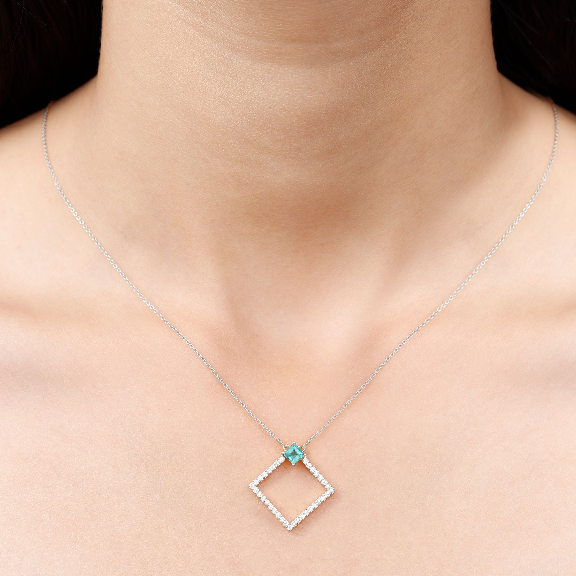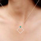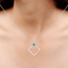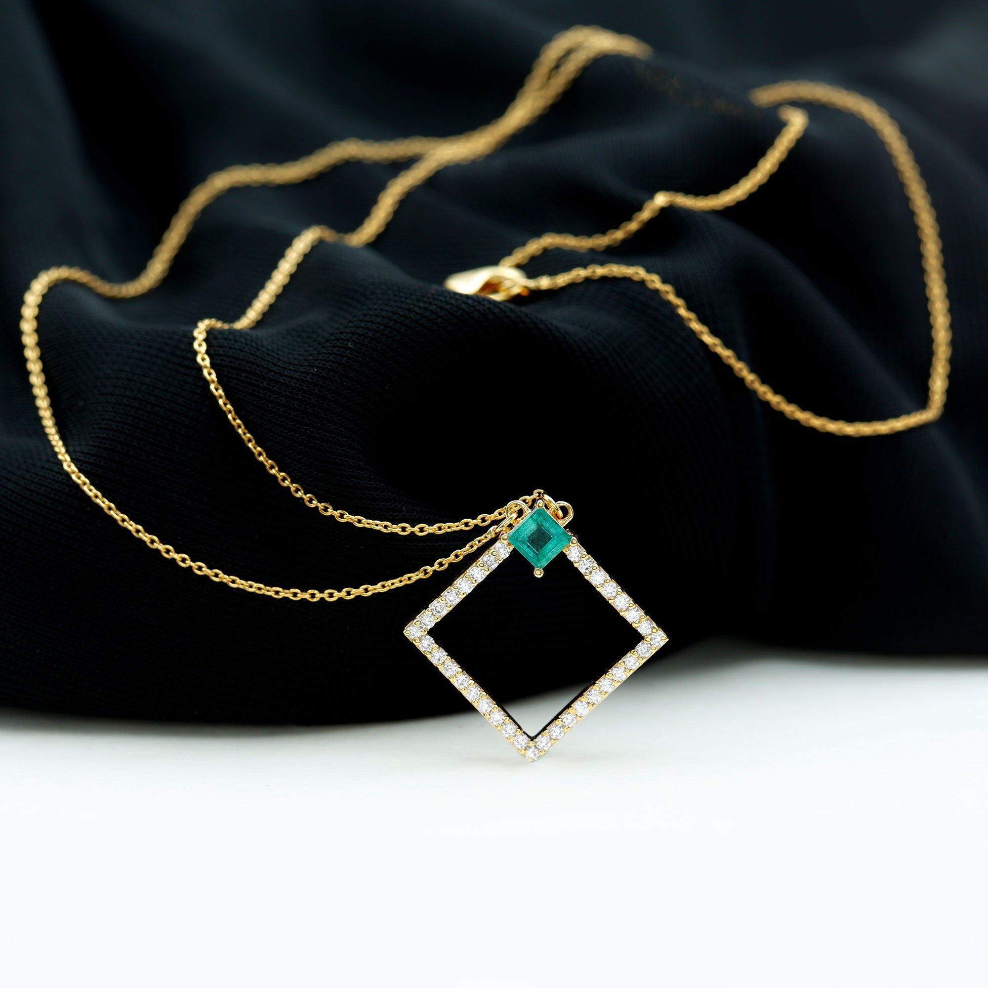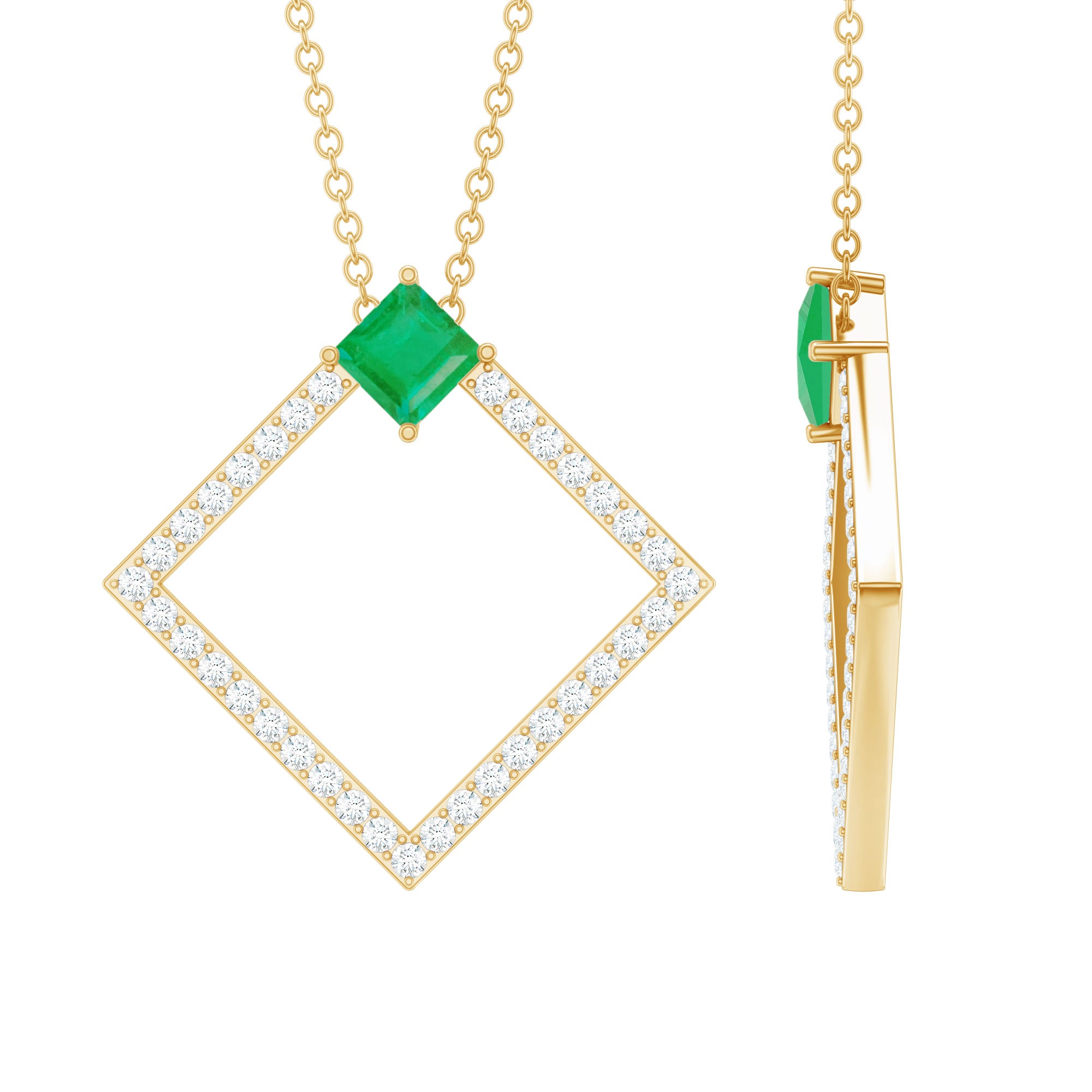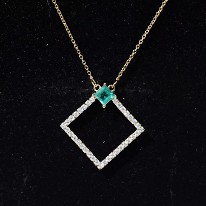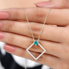 3/4 CT Princess Cut Emerald and Diamond Square Pendant
