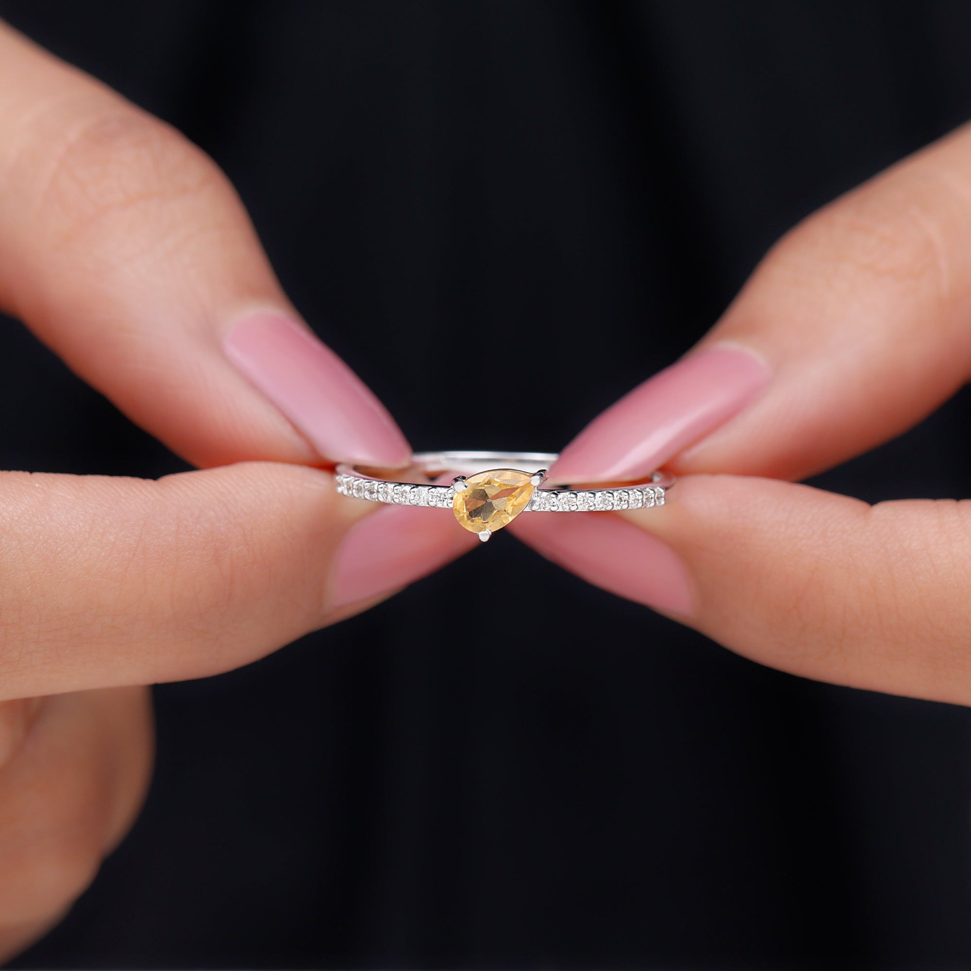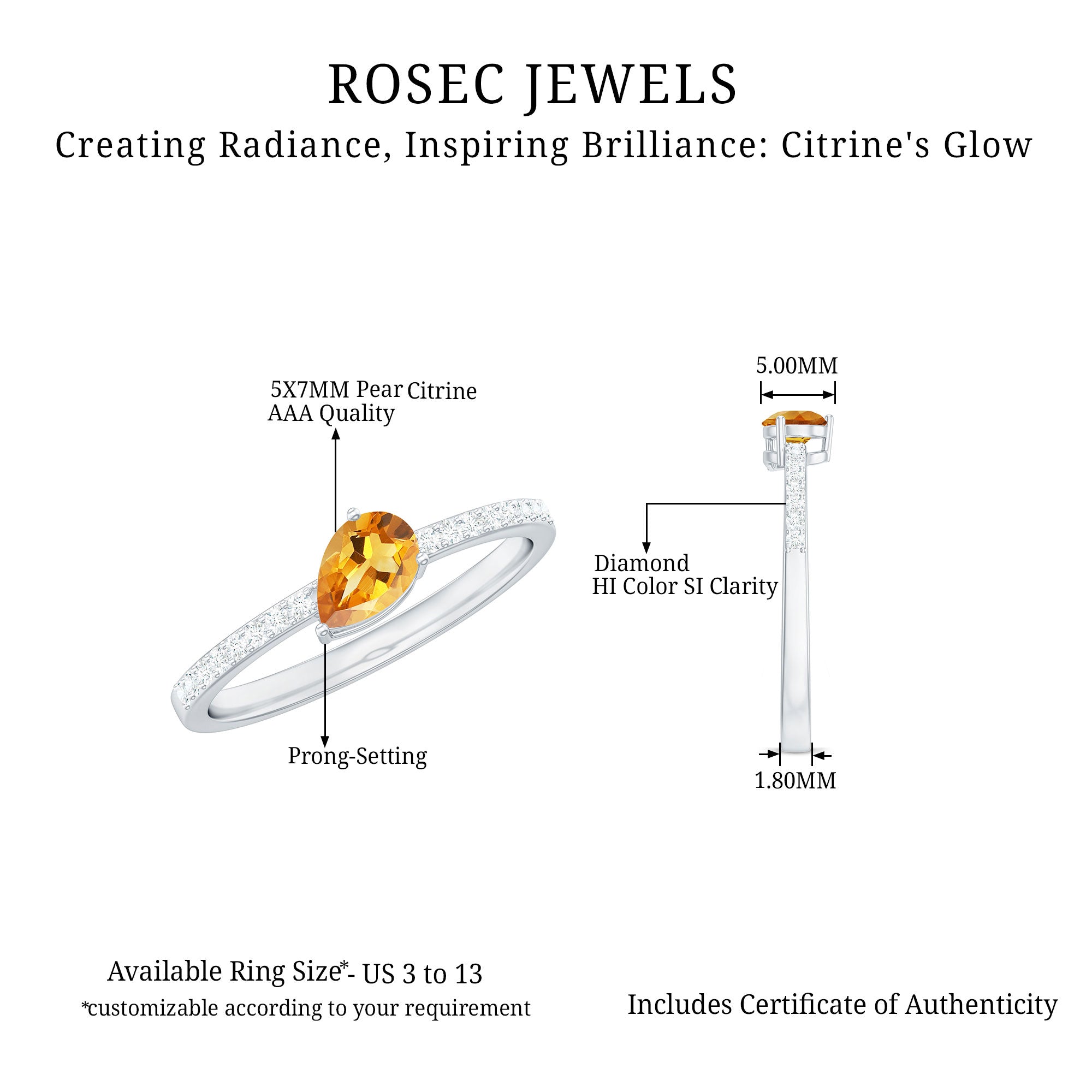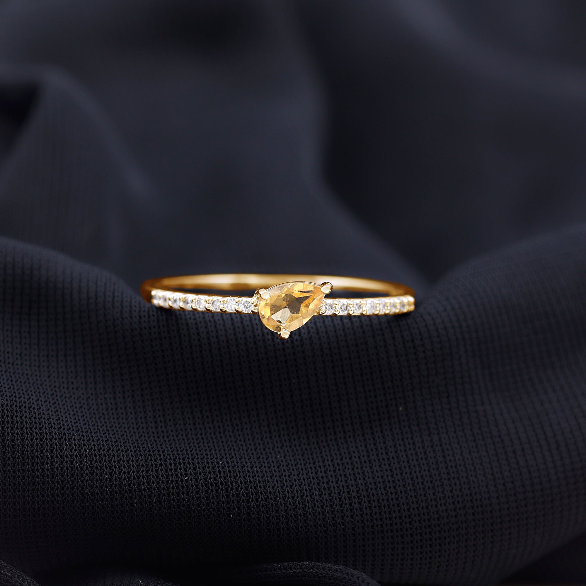 Make a profound statement of love with this exquisite Solitaire Ring designed for women. It is the ideal gift to express your affection. This ring showcases a stunning 5X7 MM Pear Cut Citrine, slantly placed in graceful Prong Setting, and is further embellished by glistening Round Shape Diamond gemstones. Let this be your heartfelt surprise to your beloved this season, a symbol of your deep and enduring love.