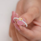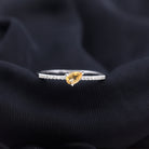 Real Citrine Solitaire Promise Ring with Diamond Side Stones