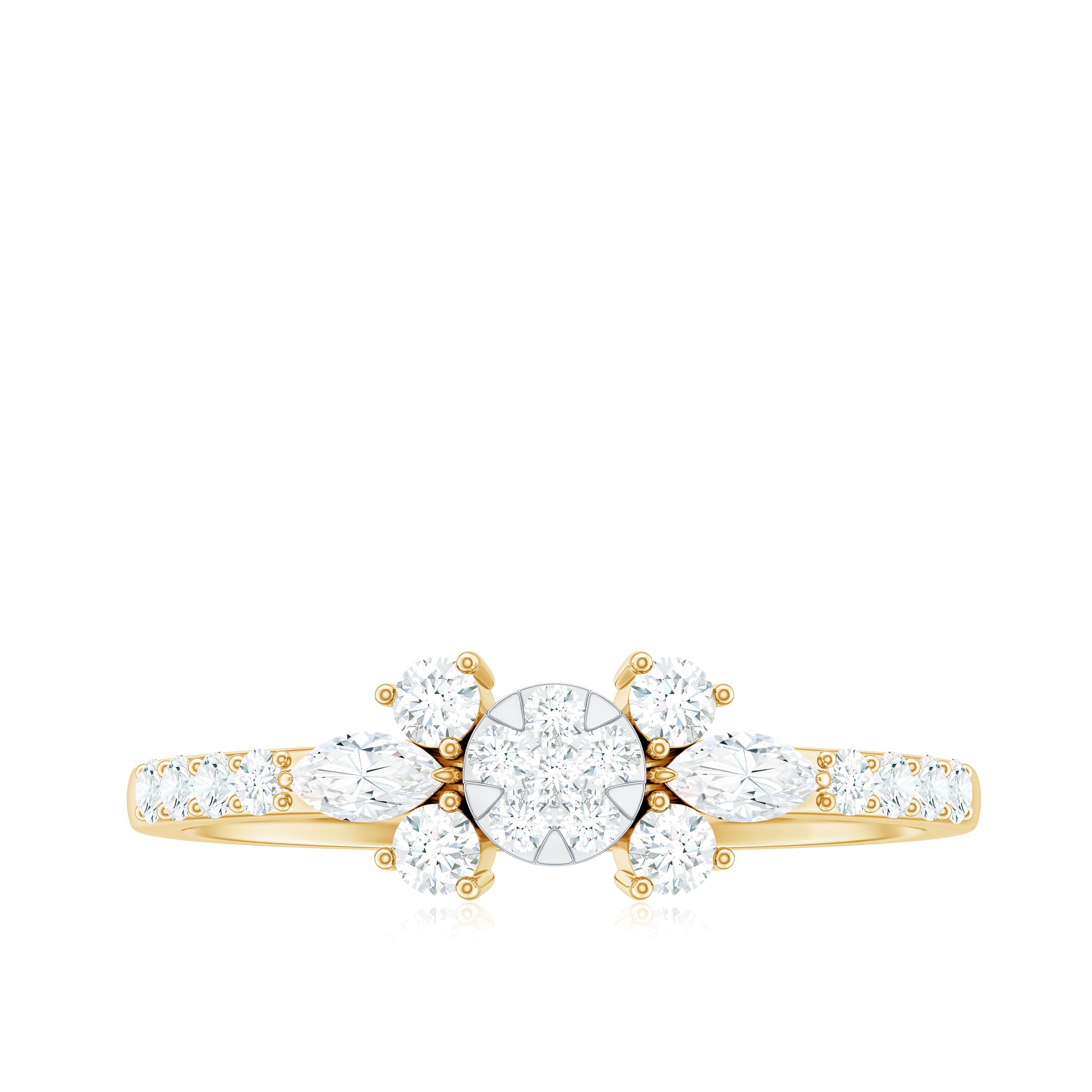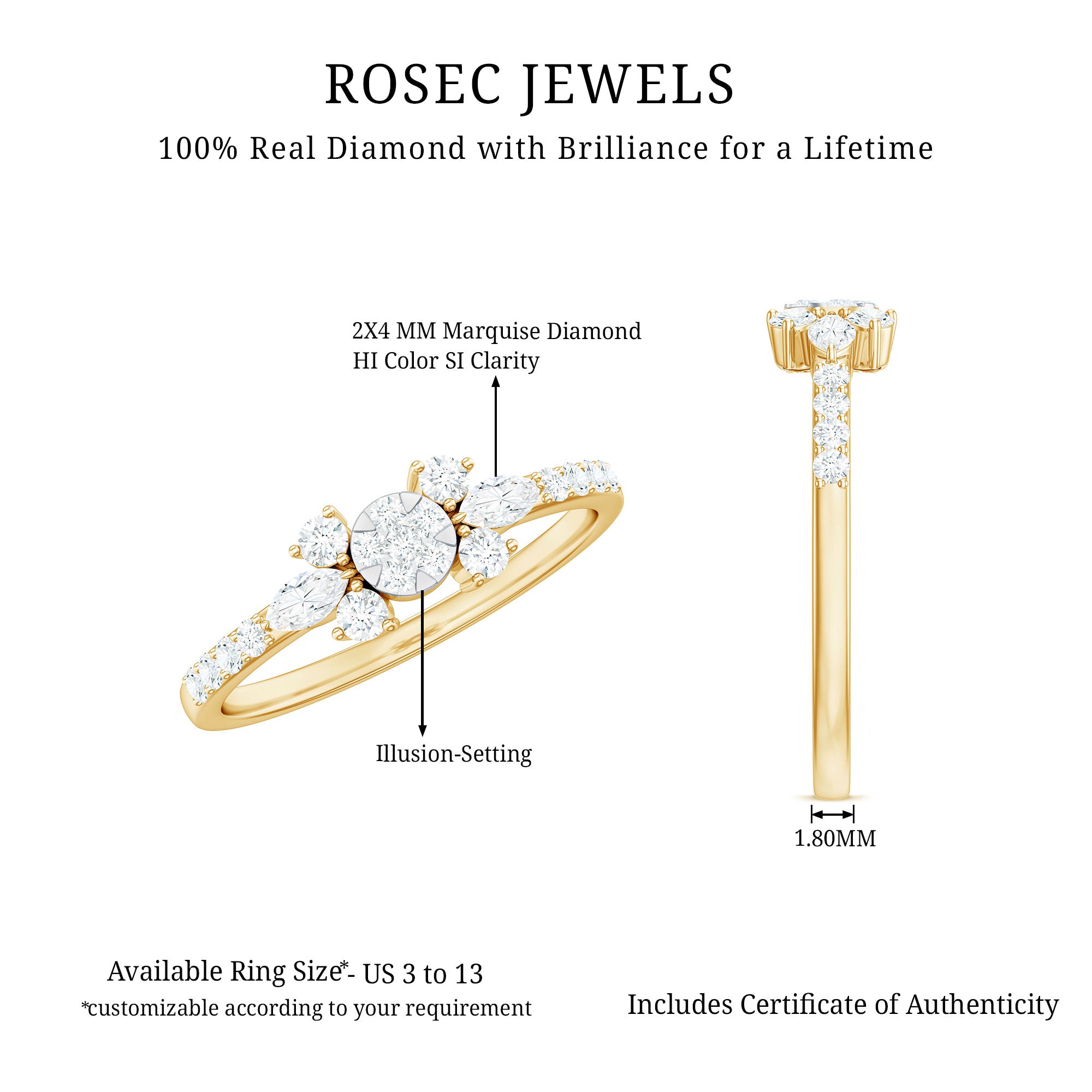 Confess how much your favorite person means to you by giving her this gorgeous Promise Ring embellished with a Round and Marquise Cut Diamond set in Claw - Prong Setting with Diamond Accent. Gold Build gives this Antique Ring a magical touch making it a brilliant present for your beloved.