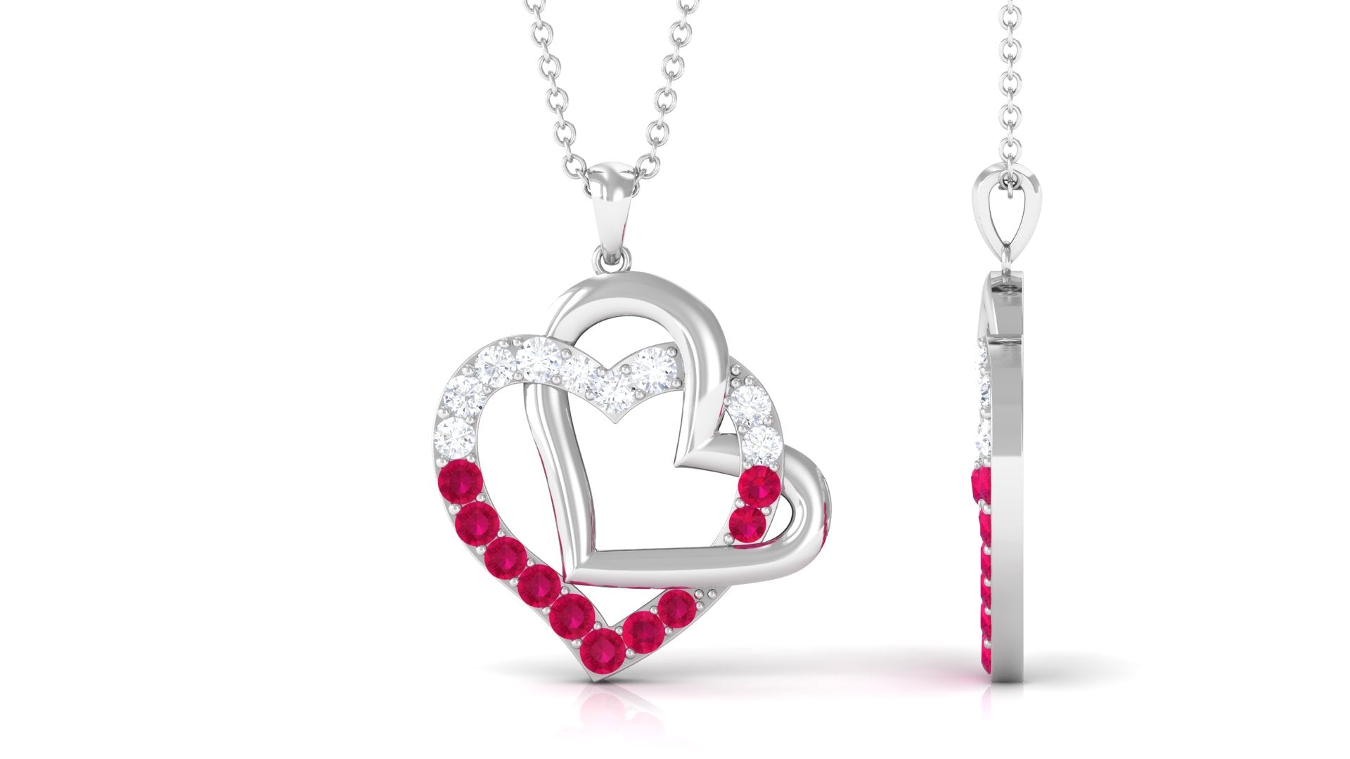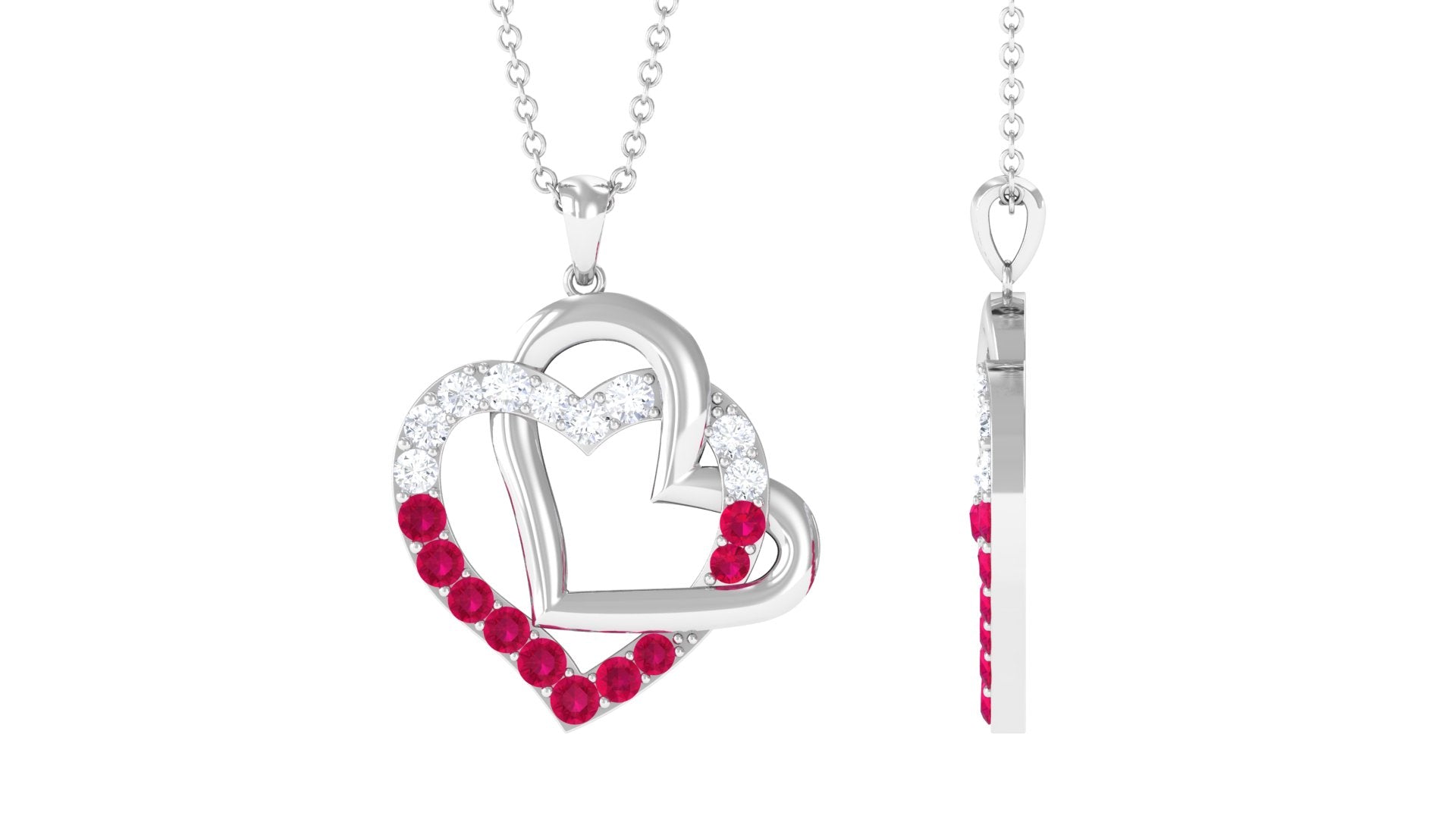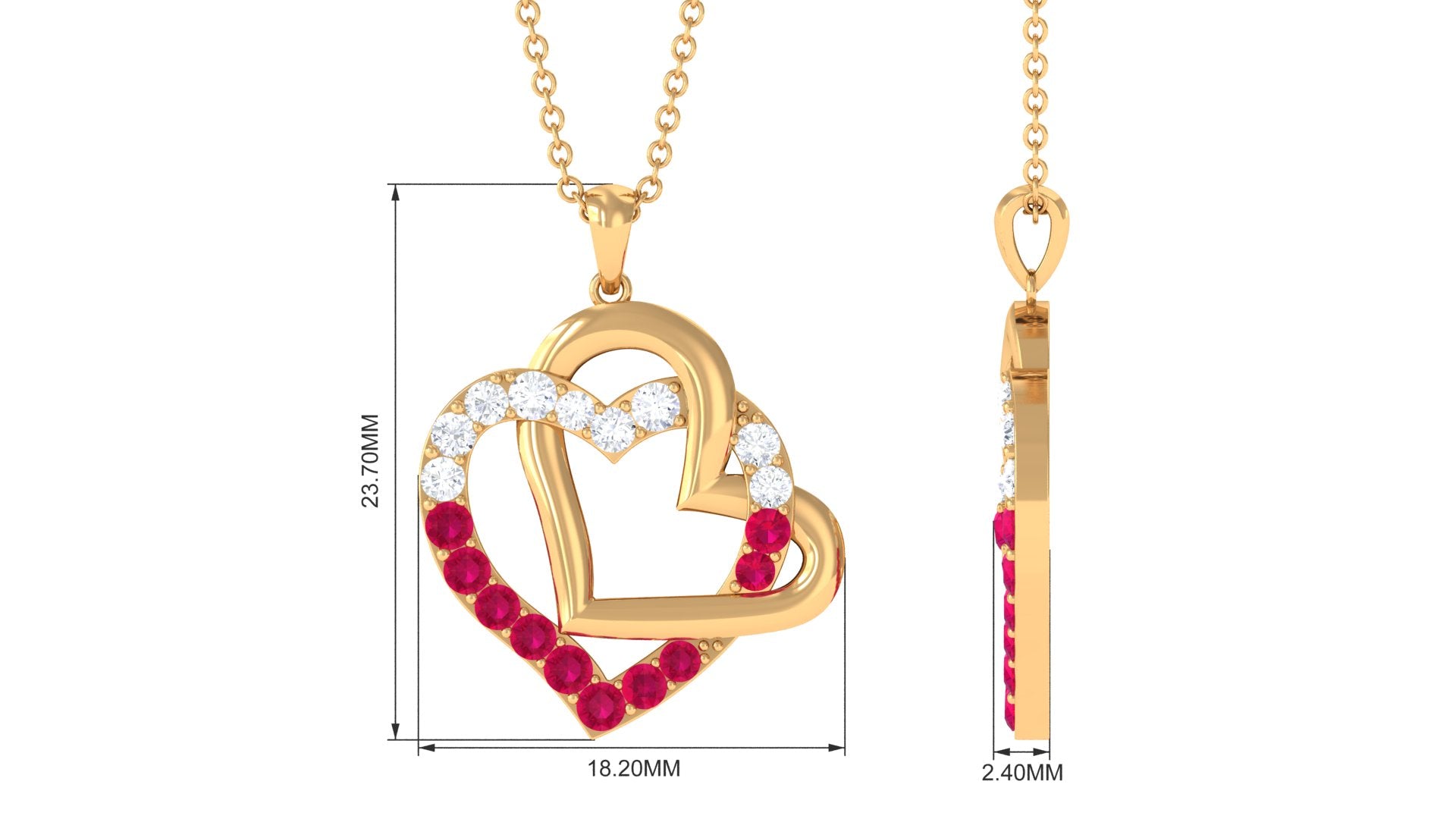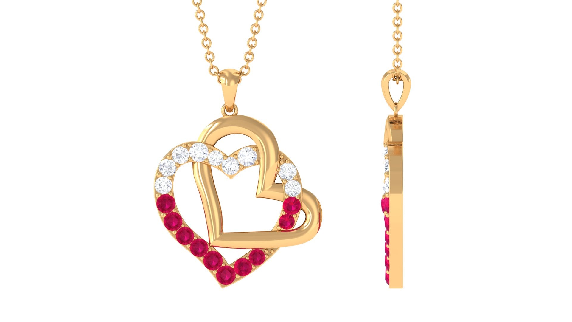 3/4 CT Real Ruby and Moissanite Interlock Heart Gold Pendant