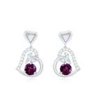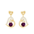 Be Dazzle with these beautiful Heart Drop Earrings embellished with Round Shape Rhodolite as Solitaire in 3 Prong Setting and Round Shape Diamond in Prong Setting, Crafted in Solid Gold.