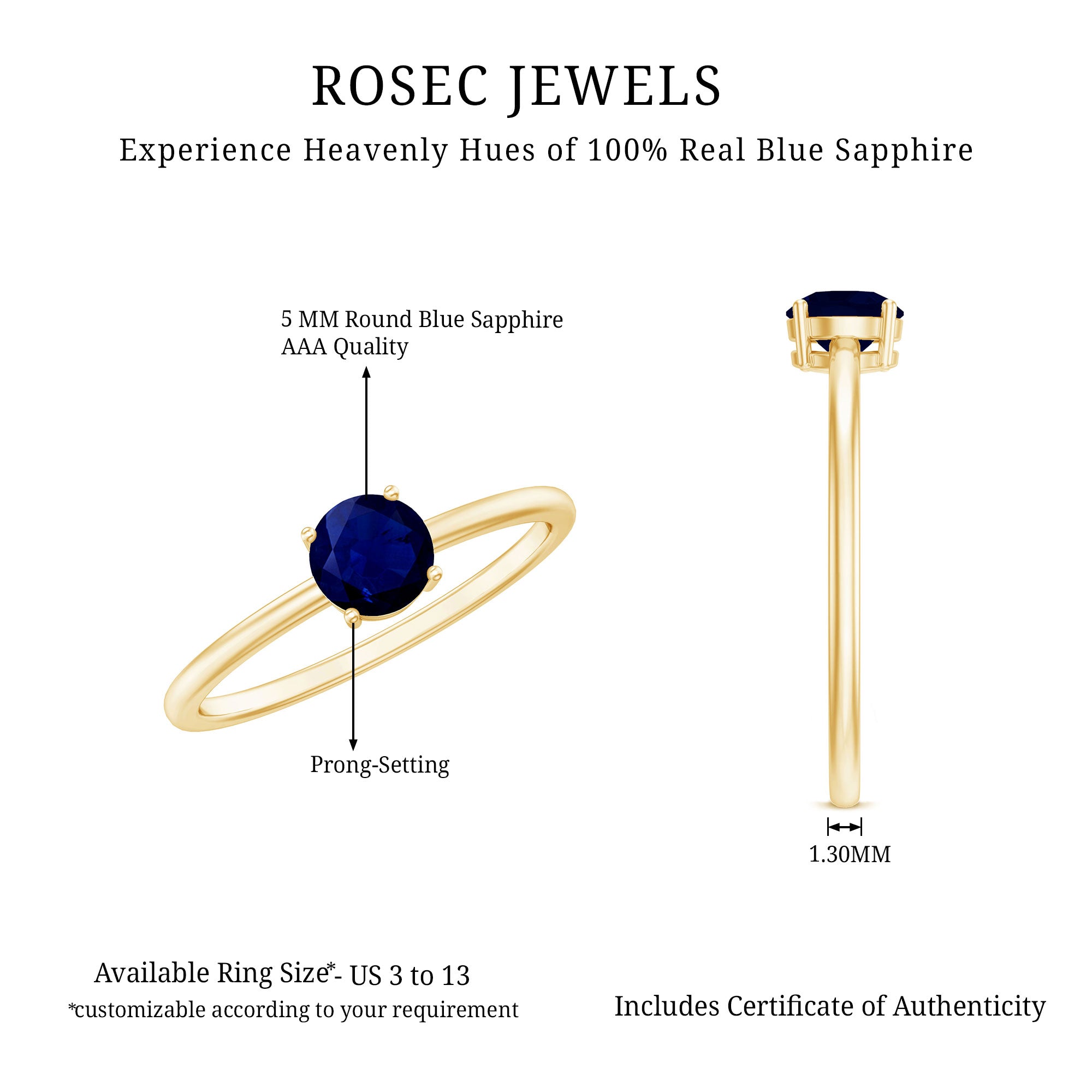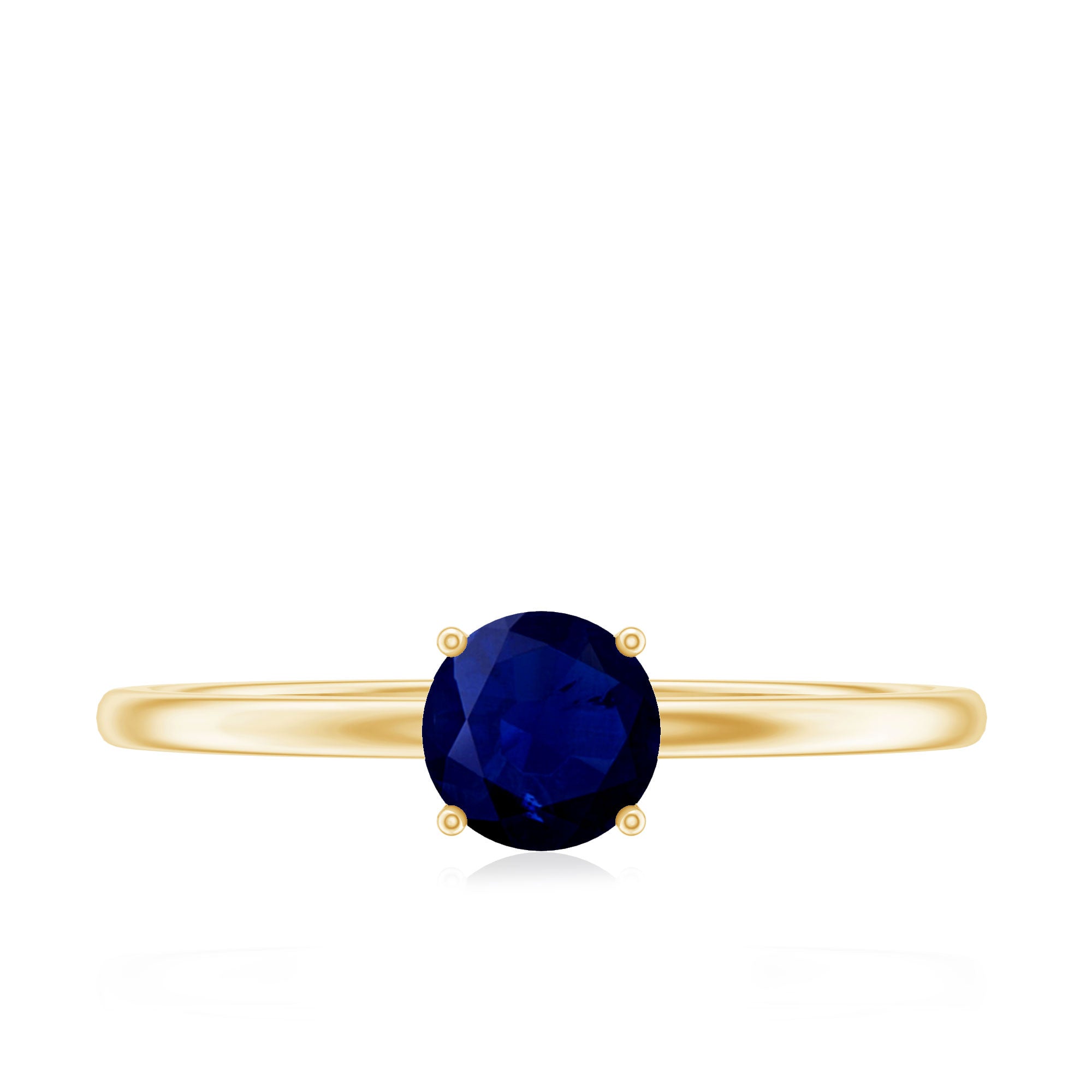 Adorned with a Round Cut Blue Sapphire Solitaire in 4 Prong Setting, this Birthstone Ring is a Basic and Simple Ring for your everyday wear. Mounted in Solid Gold, it is designed especially for you to signify your commitment.