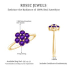 A Simple but Classic Flower Ring are embellished with Round Shape Amethyst is beautifully studded in the cluster prong setting. This stunning floral design enhances the beauty of the ring is composed of Solid Gold.