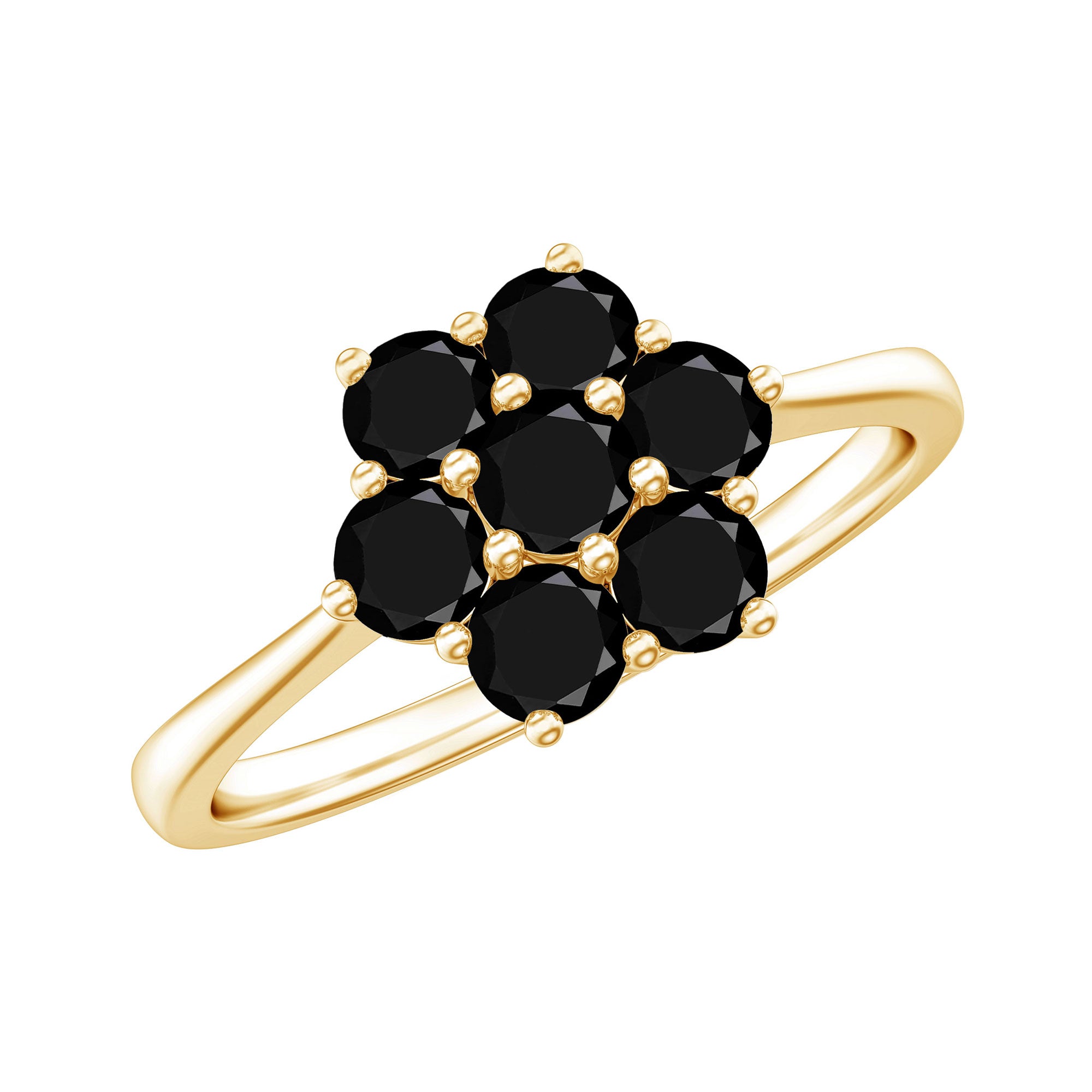 A Simple but Classic Flower Ring are embellished with Round Shape Black Spinel is beautifully studded in the cluster prong setting. This stunning floral design enhances the beauty of the ring is composed of Solid Gold.