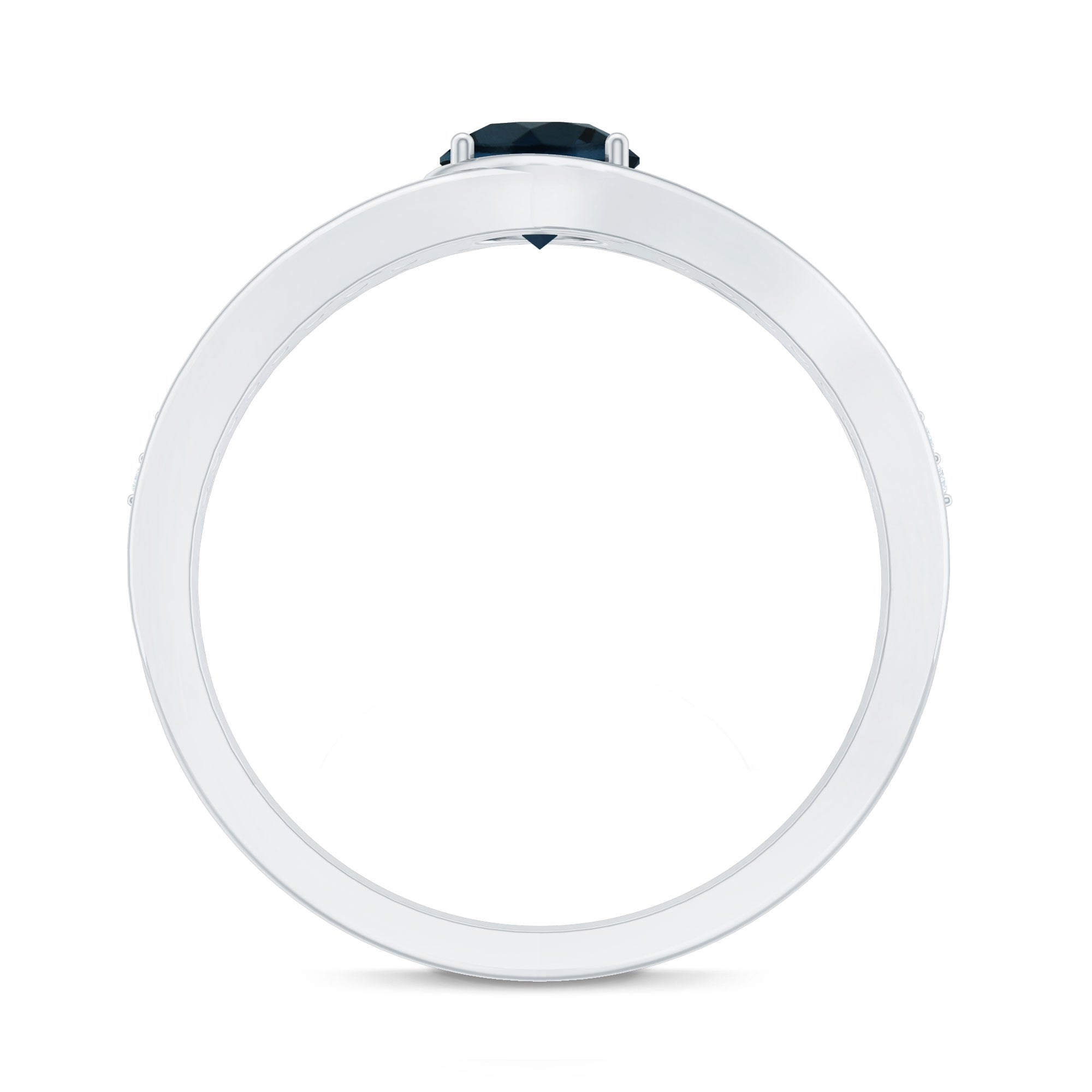 Genuine London Blue Topaz Engagement Ring with Diamond Side Stones
