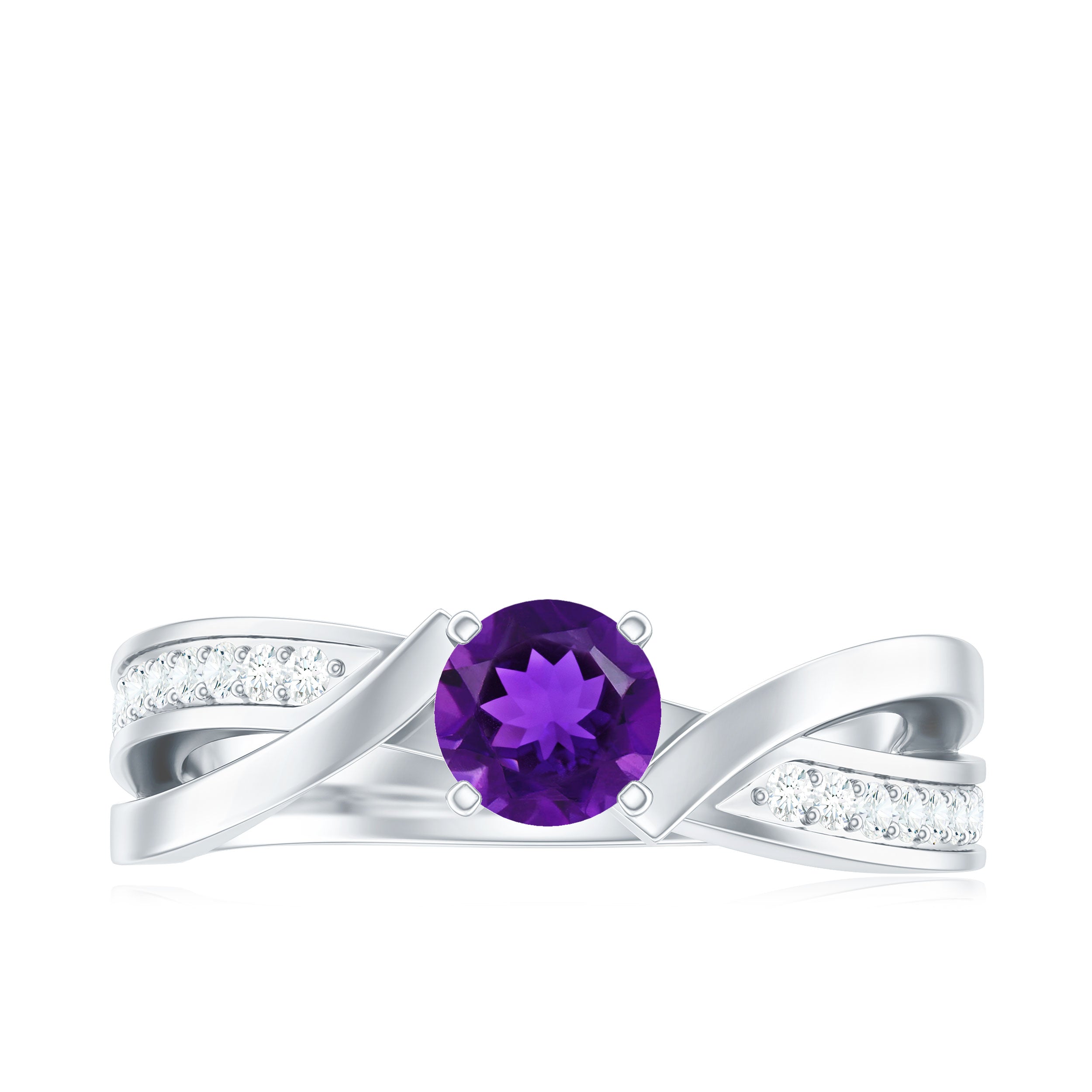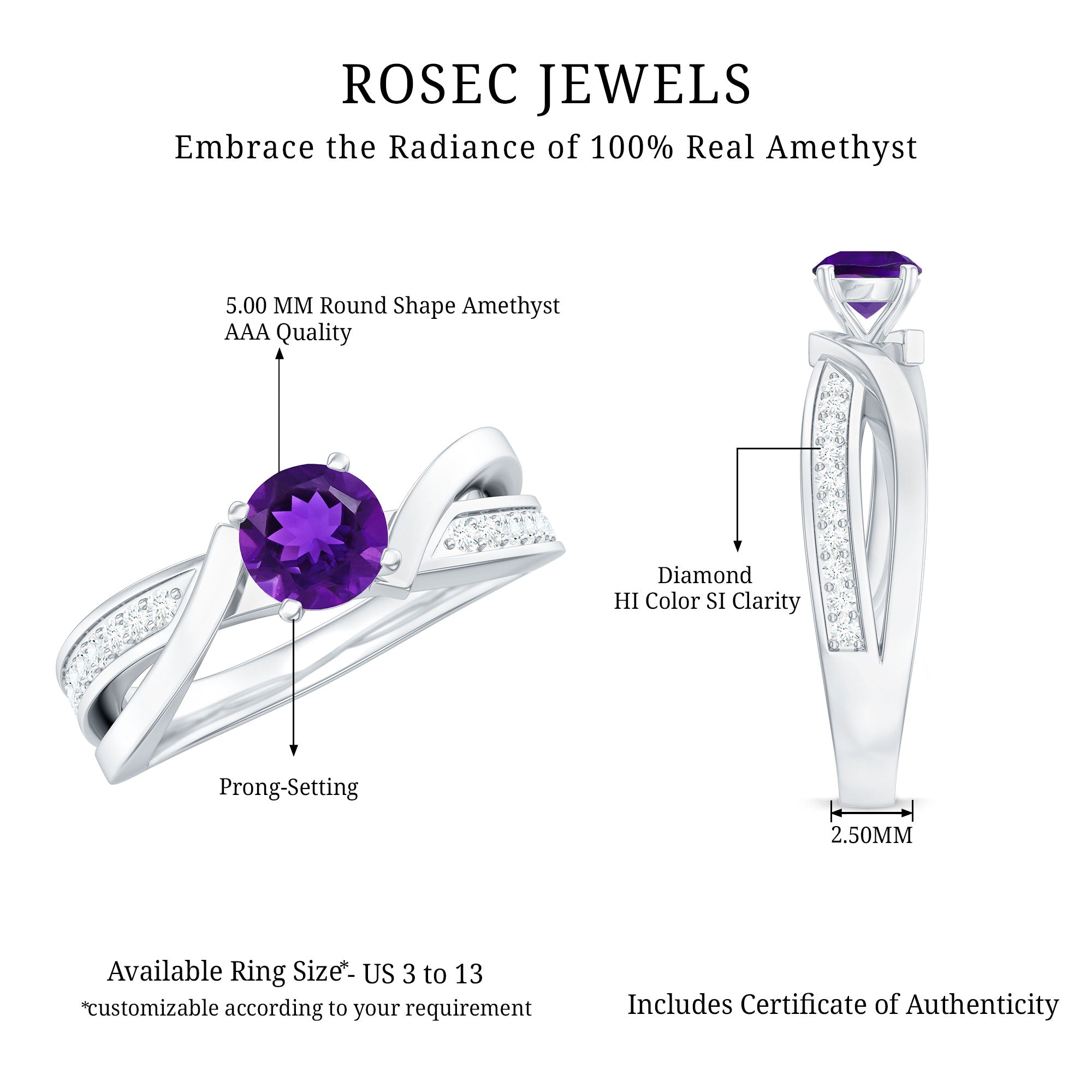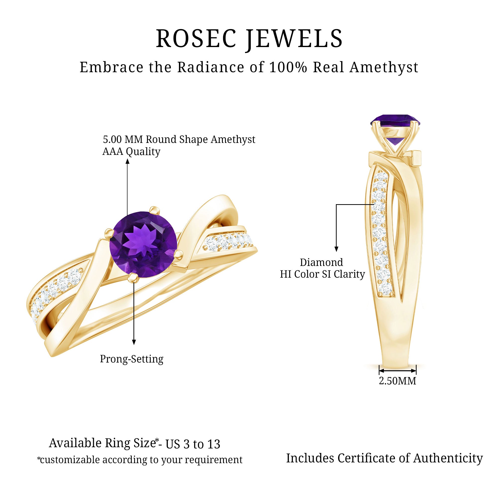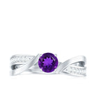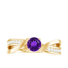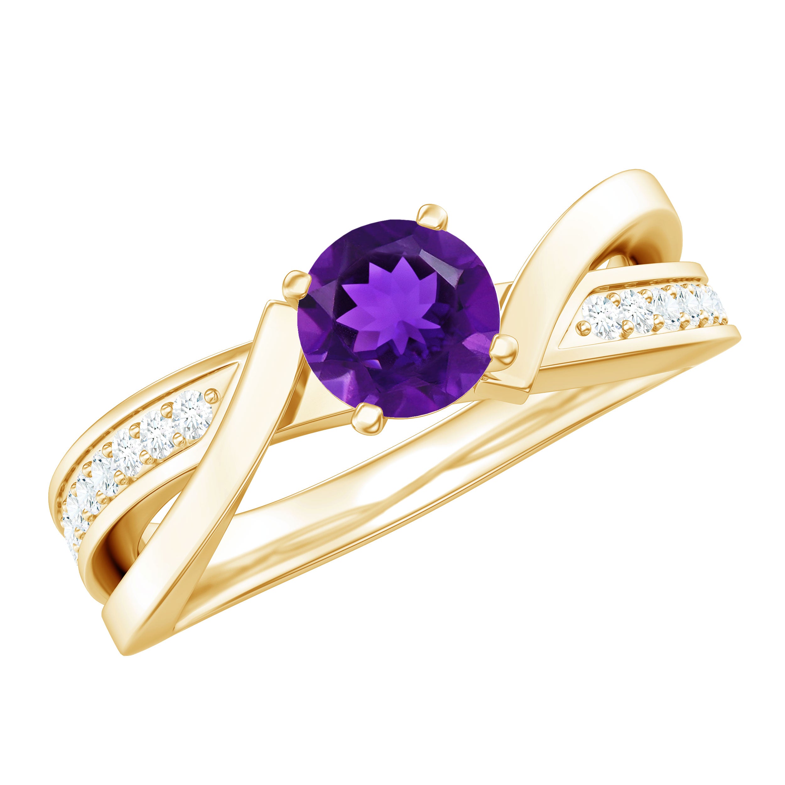 Make your special day memorable with this elegant Infinity Ring crafted with Solid Gold. This ring is adorned with Round Shape Amethyst Solitaire in prong setting with Diamond Accent as Side Stones. Amethyst Solitaire Ring is a charming choice for any occasion.