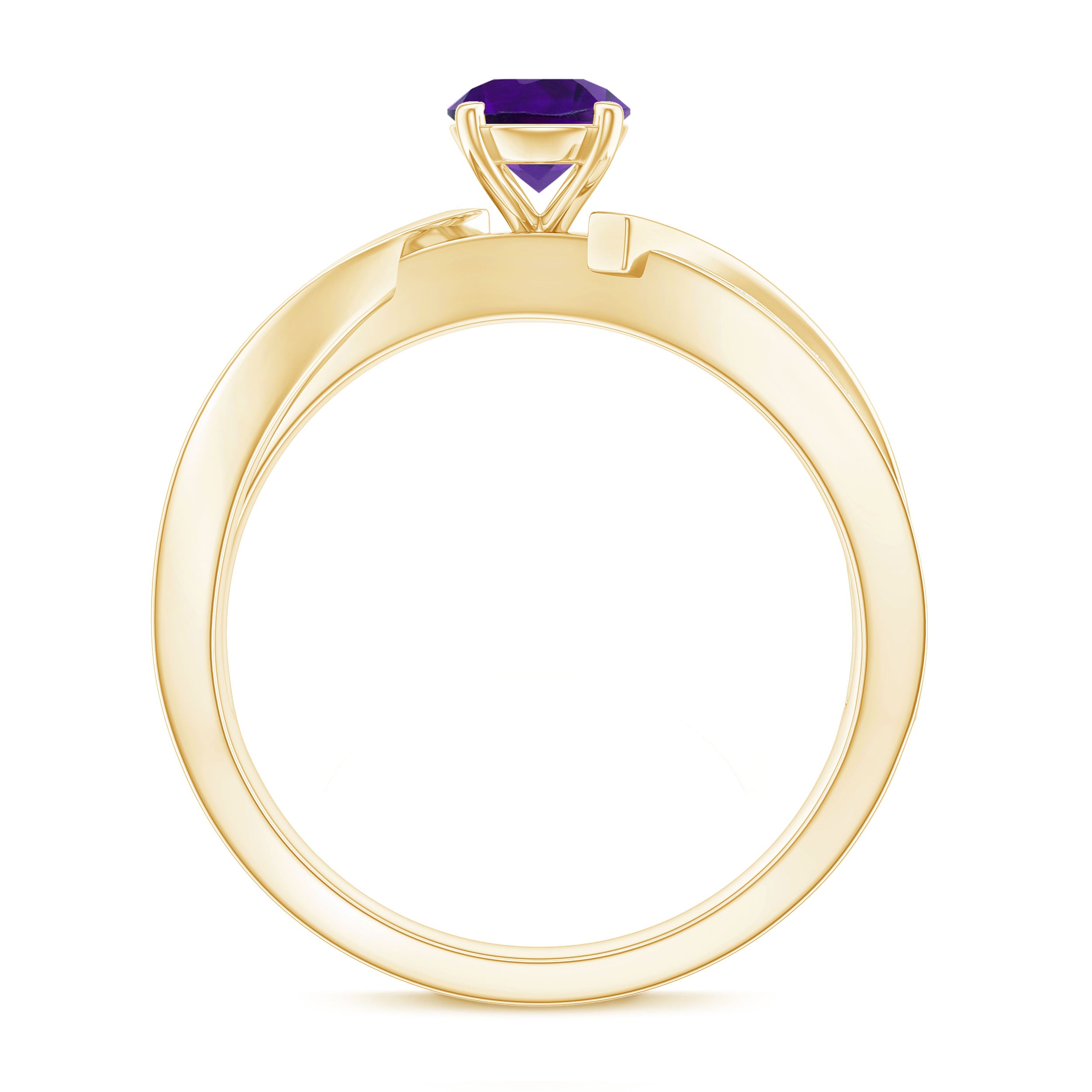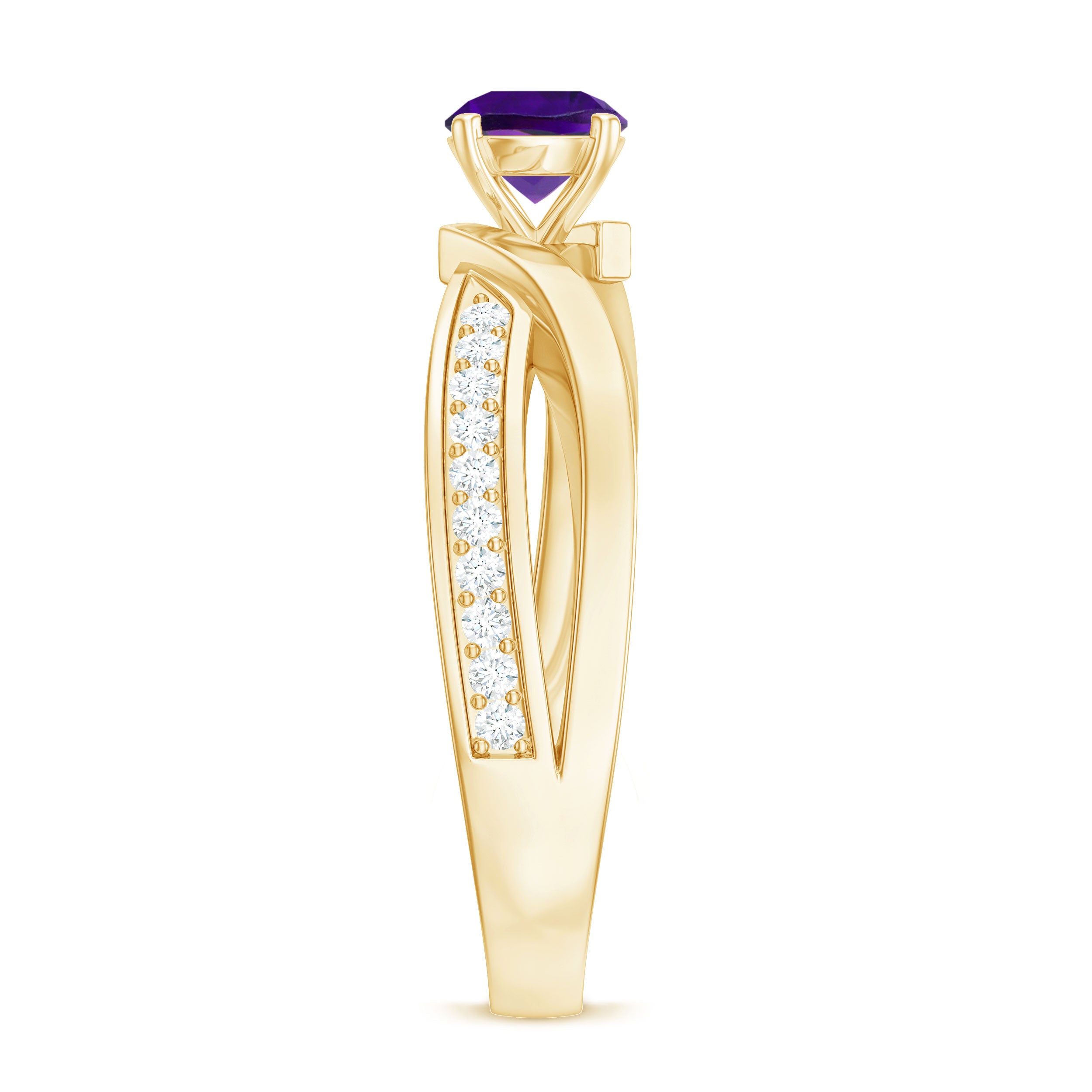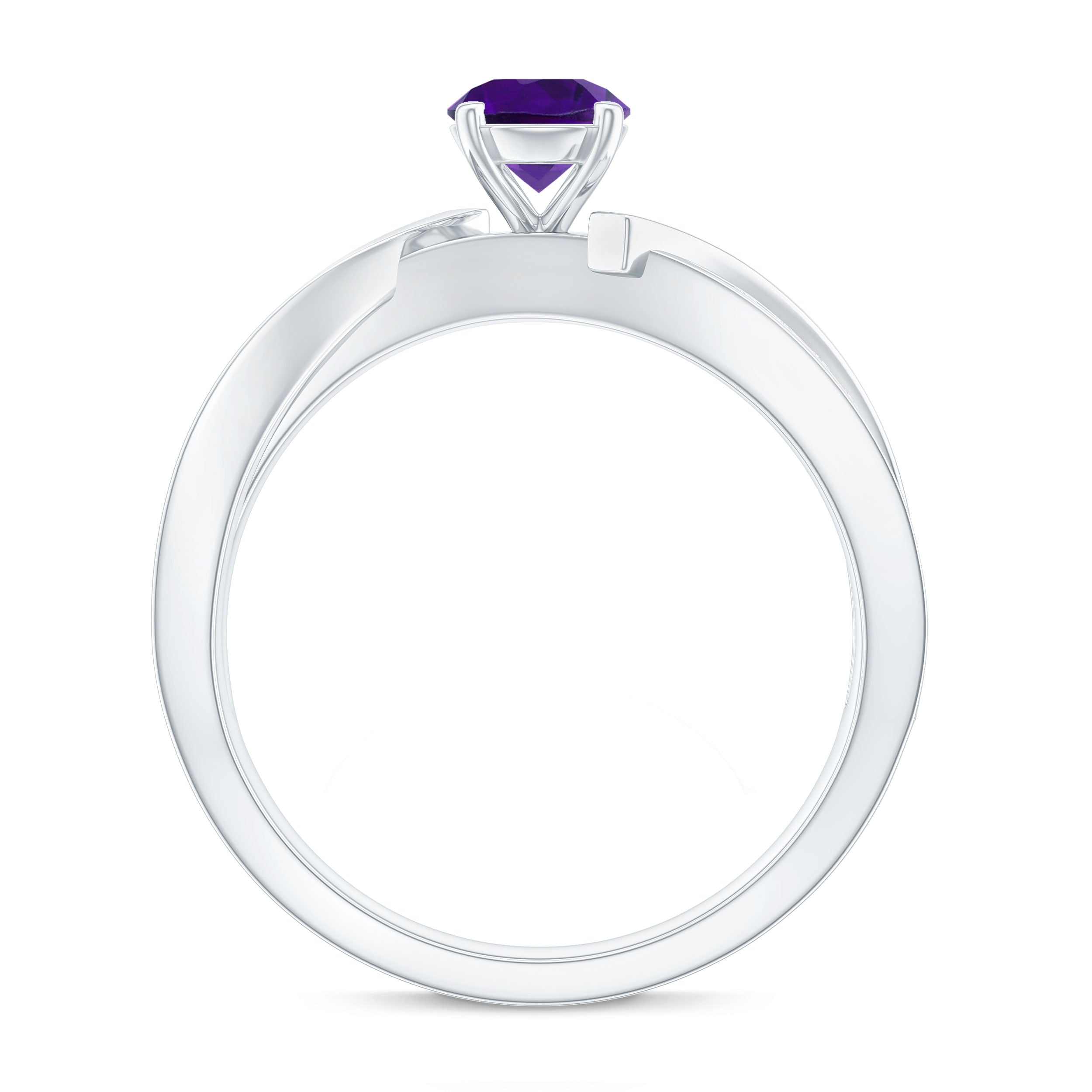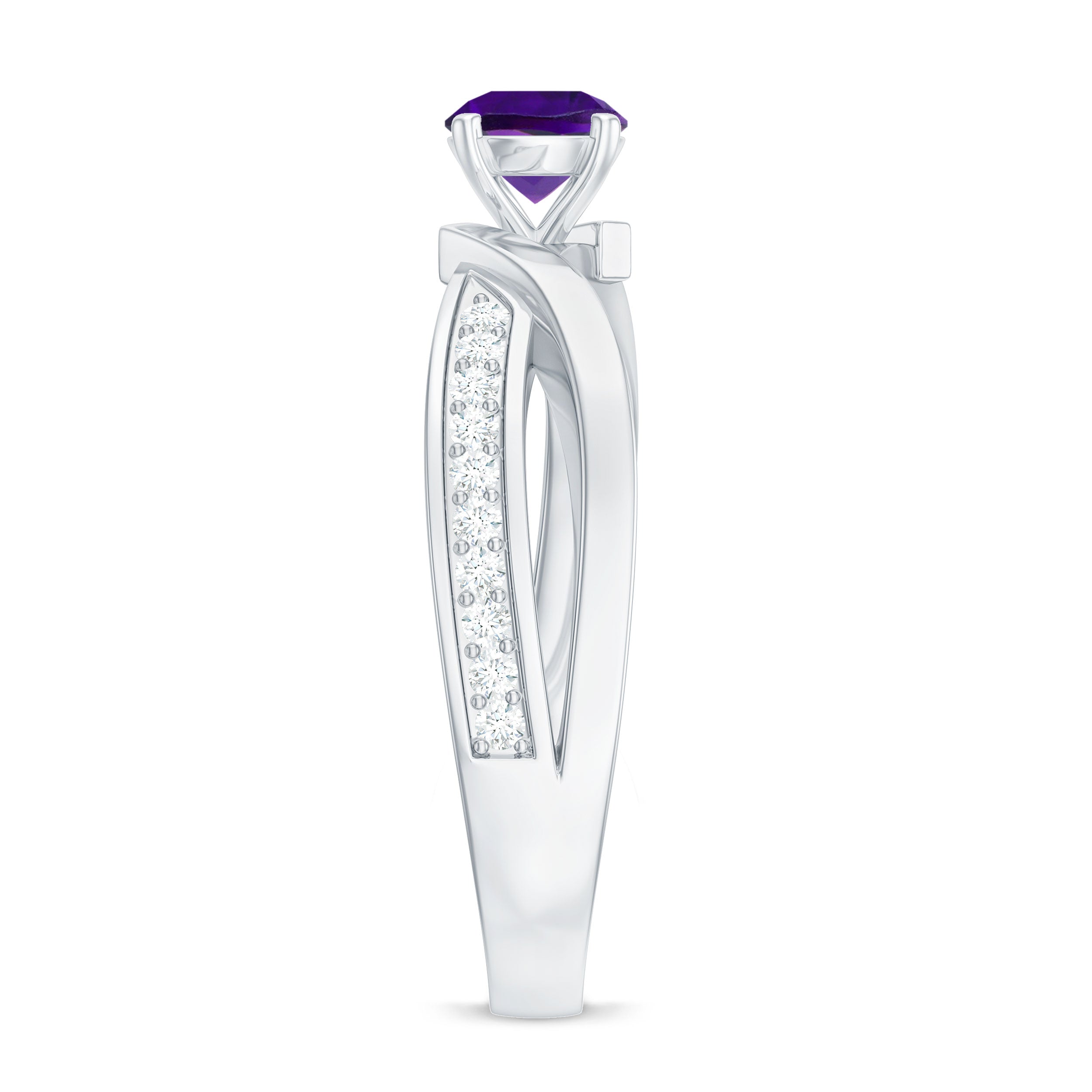 Make your special day memorable with this elegant Infinity Ring crafted with Solid Gold. This ring is adorned with Round Shape Amethyst Solitaire in prong setting with Diamond Accent as Side Stones. Amethyst Solitaire Ring is a charming choice for any occasion.