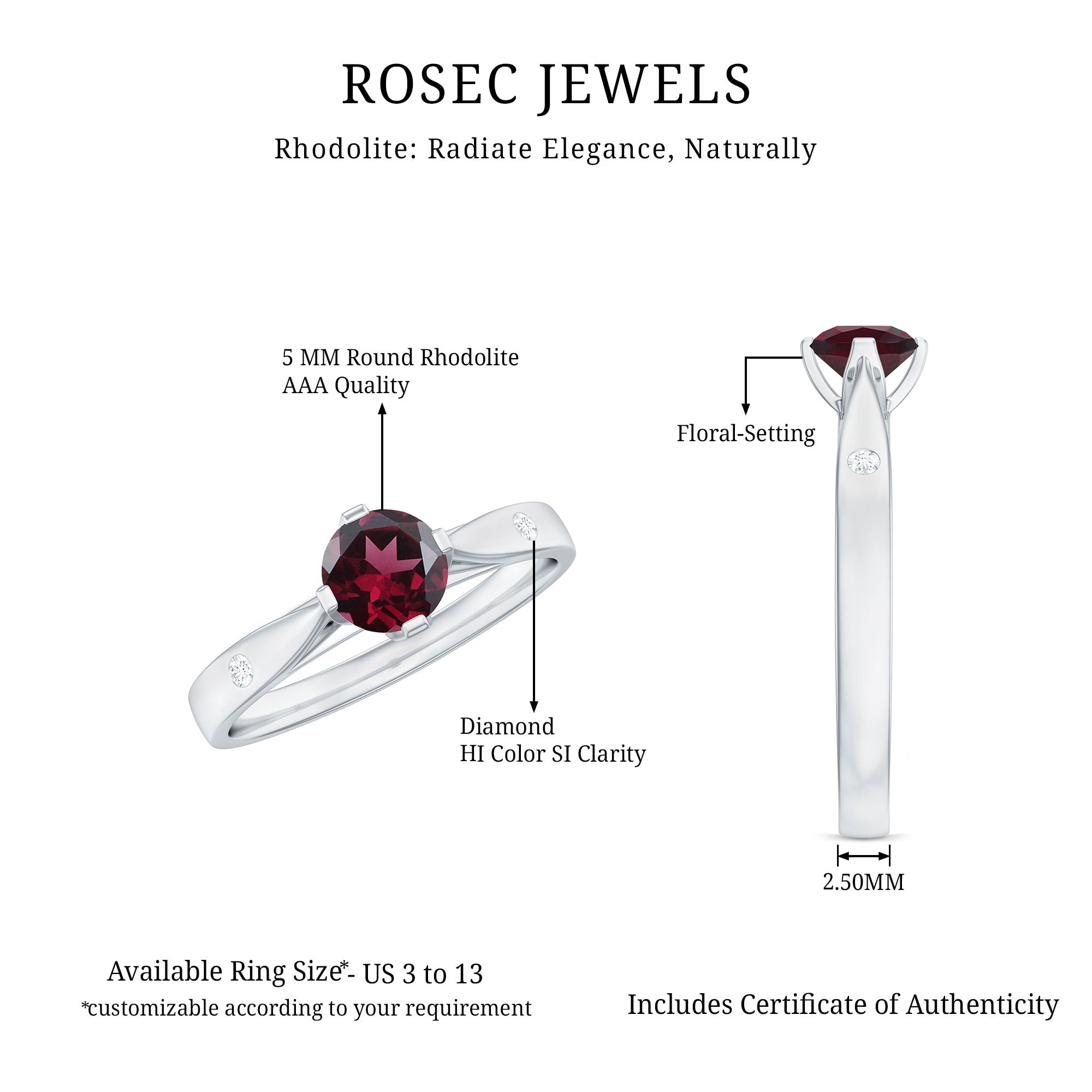 3/4 CT Solitaire Engagement Ring with Rhodolite and Diamond