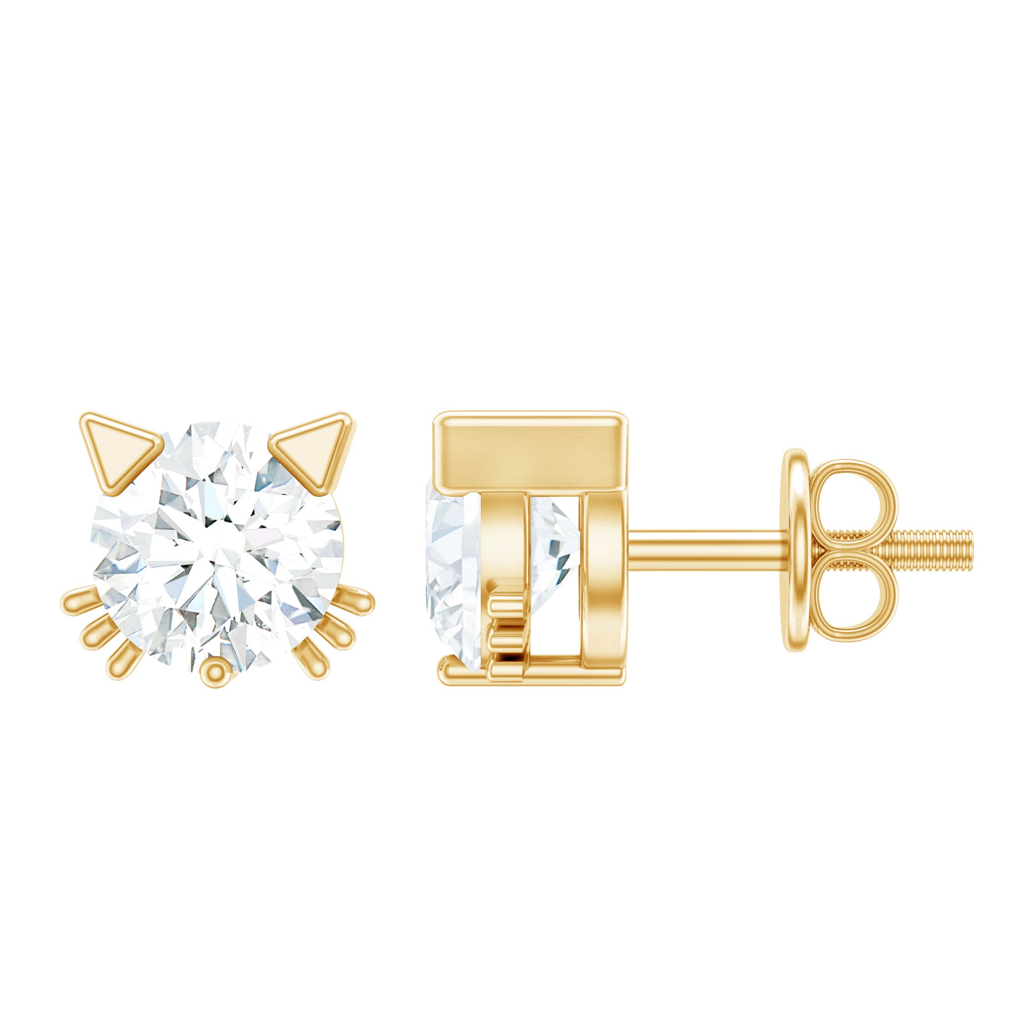 3/4 CT Solitaire Moissanite Cat Stud Earrings in Gold