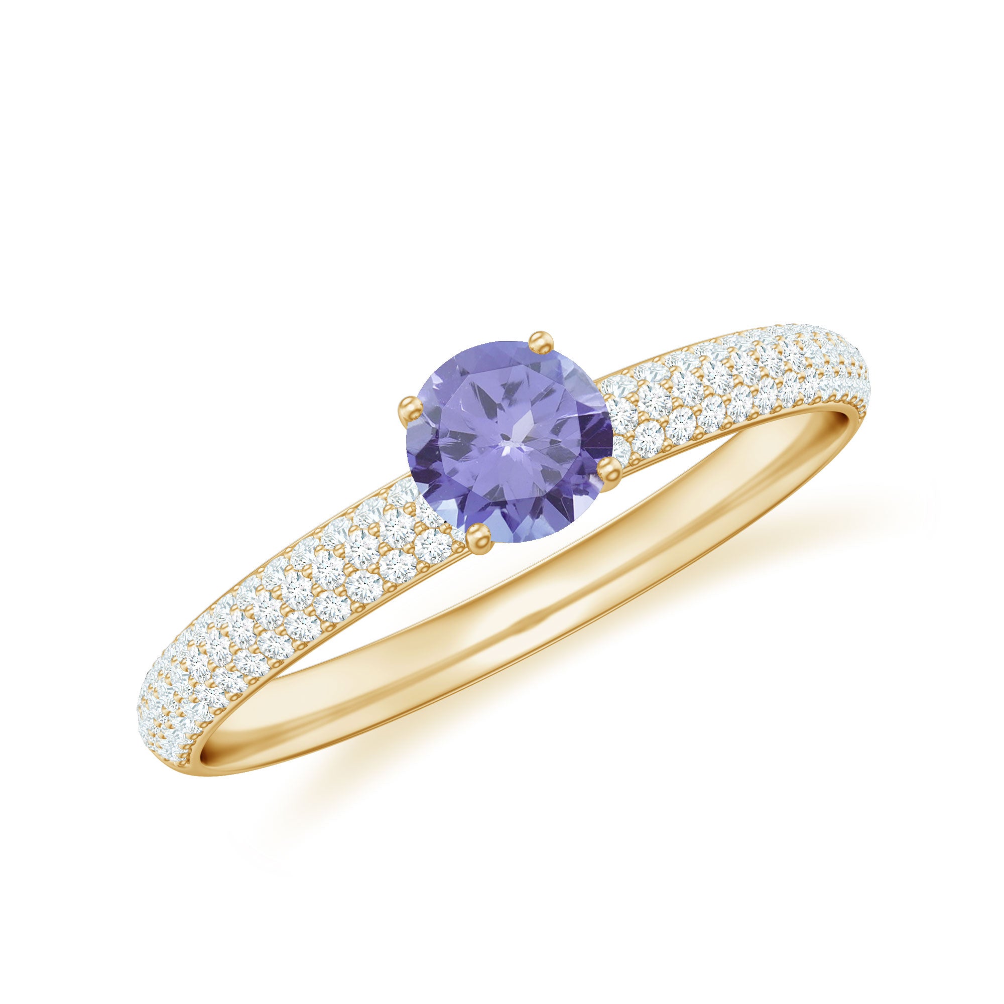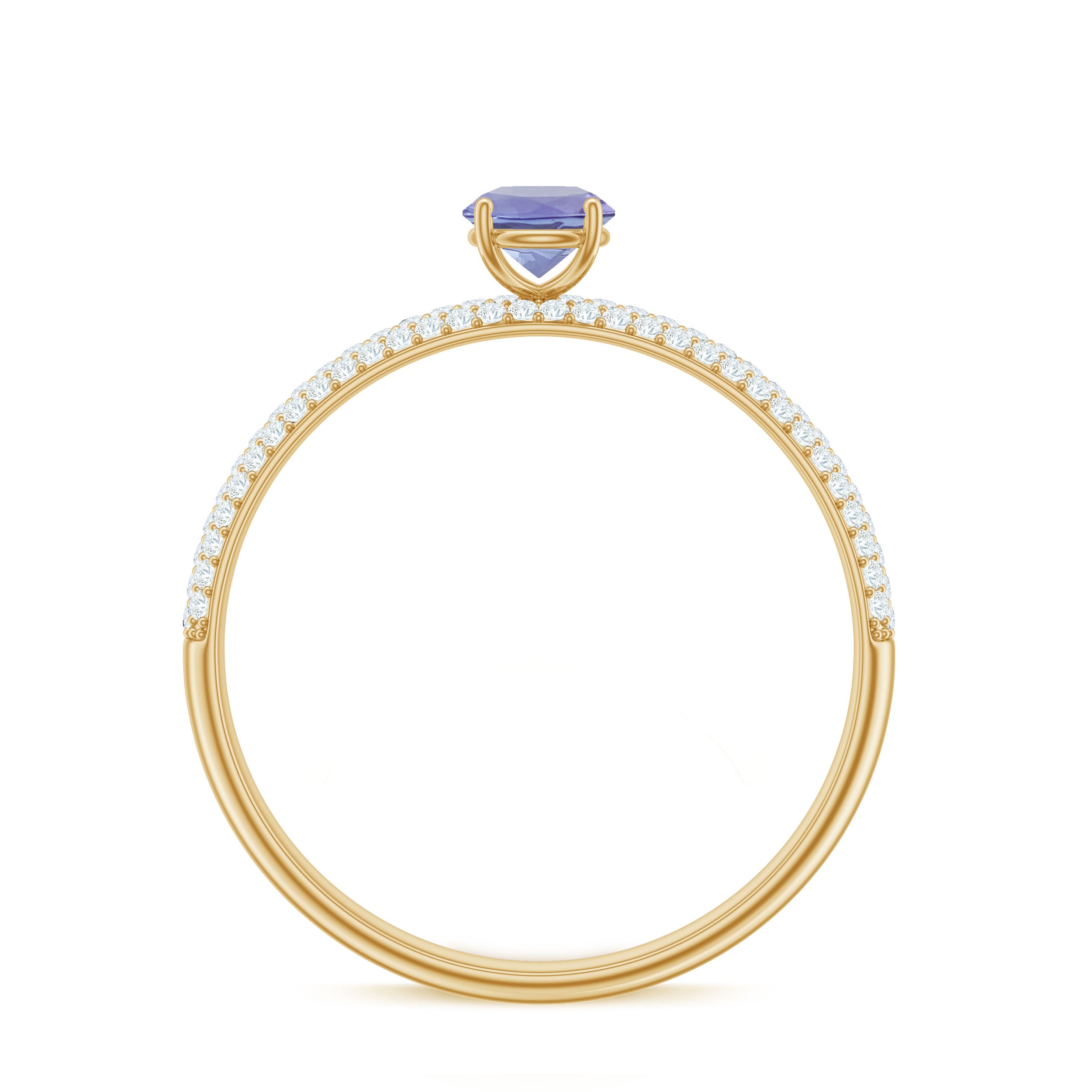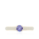 A Lovely and Beautiful Solitaire Ring has been embellished with Round Shape Tanzanite set as a solitaire in a 4 prong setting and Round Shape Diamond as Side Stone. This Solitaire Ring is available in solid gold.
