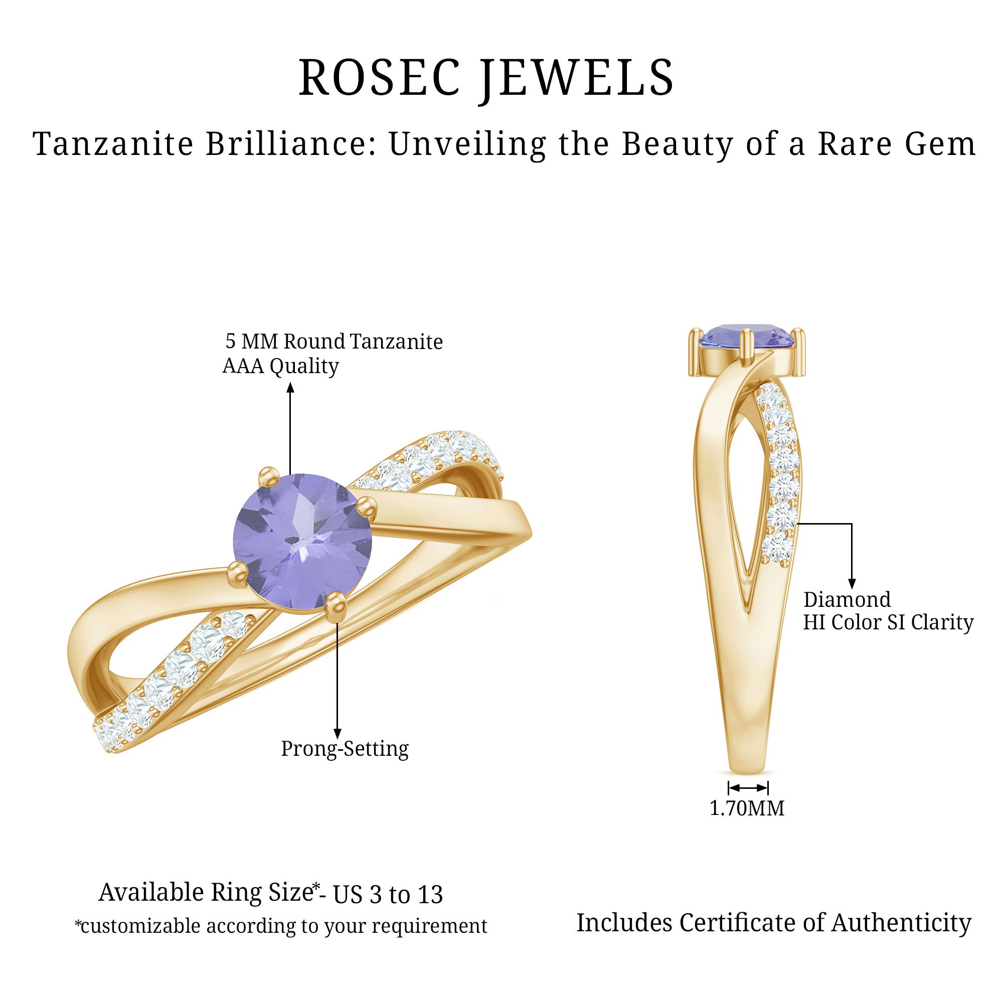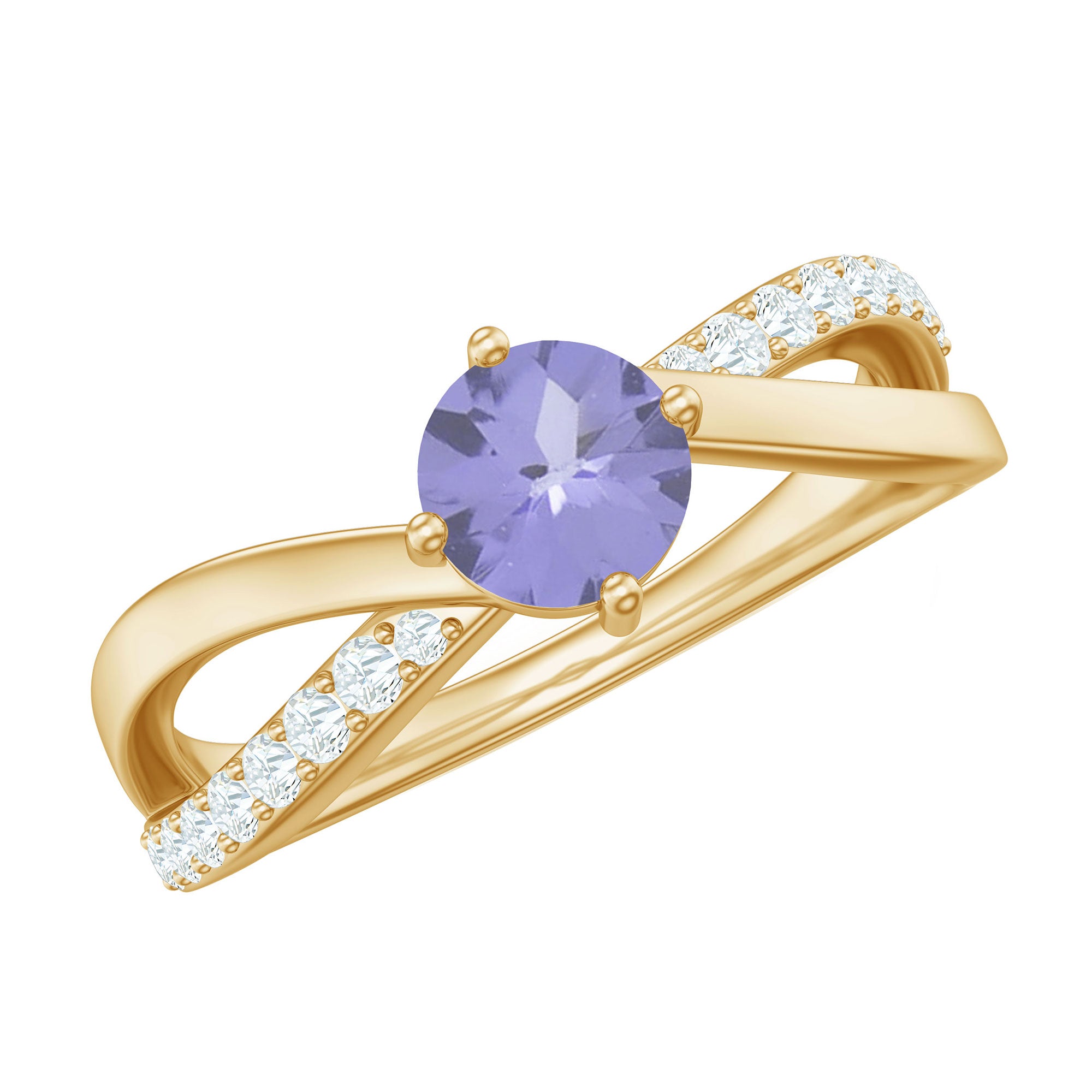 Enhance your love with this Solitaire Ring is adorned with Round Shape Tanzanite set as a solitaire in a prong setting and Round Shape Diamond in a prong setting. This Gold Infinity Ring is available in solid gold.