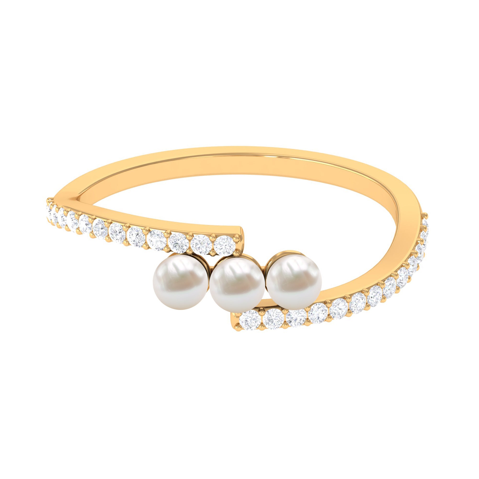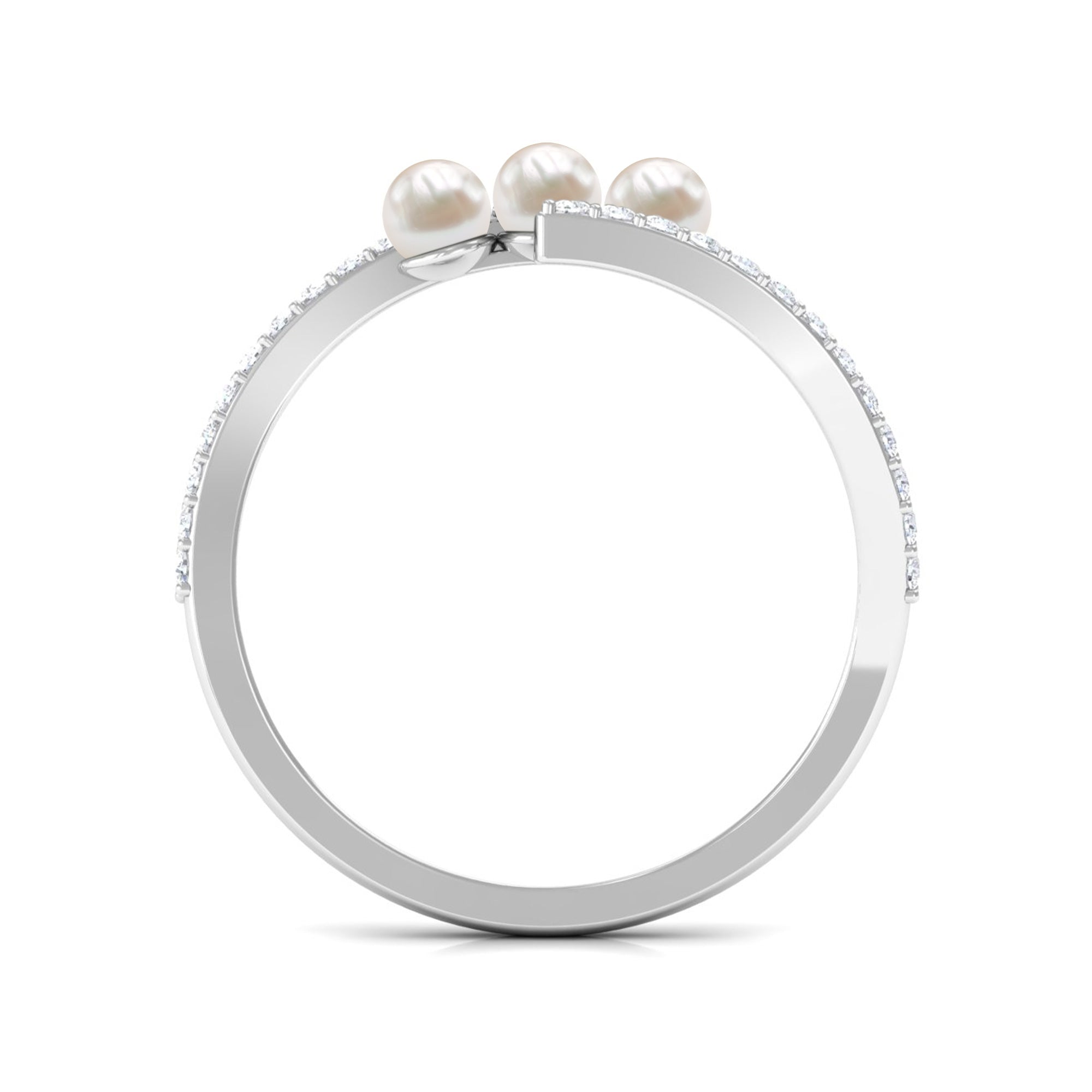 3/4 CT Three Stone Freshwater Pearl Bypass Ring with Diamond