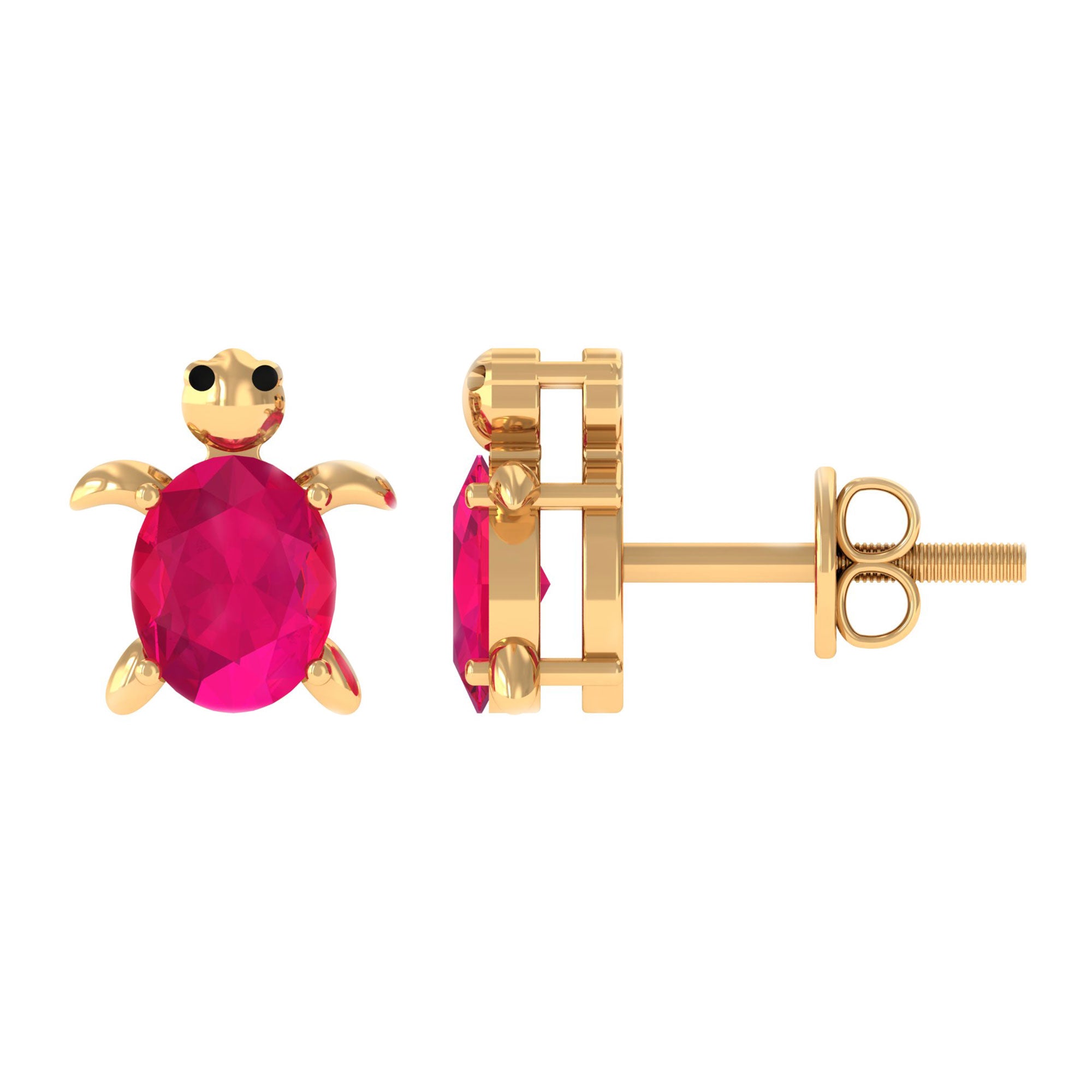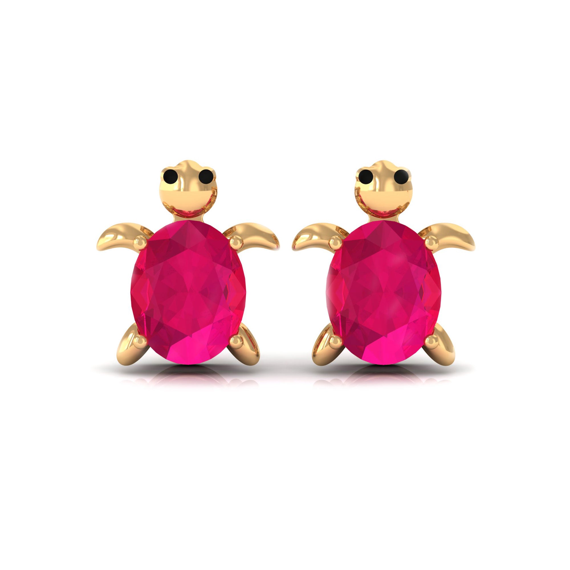 These cute Turtle Stud Earrings are adorned with Oval Cut Ruby and crafted with various metal options to make for a lovely choice for casual outings.