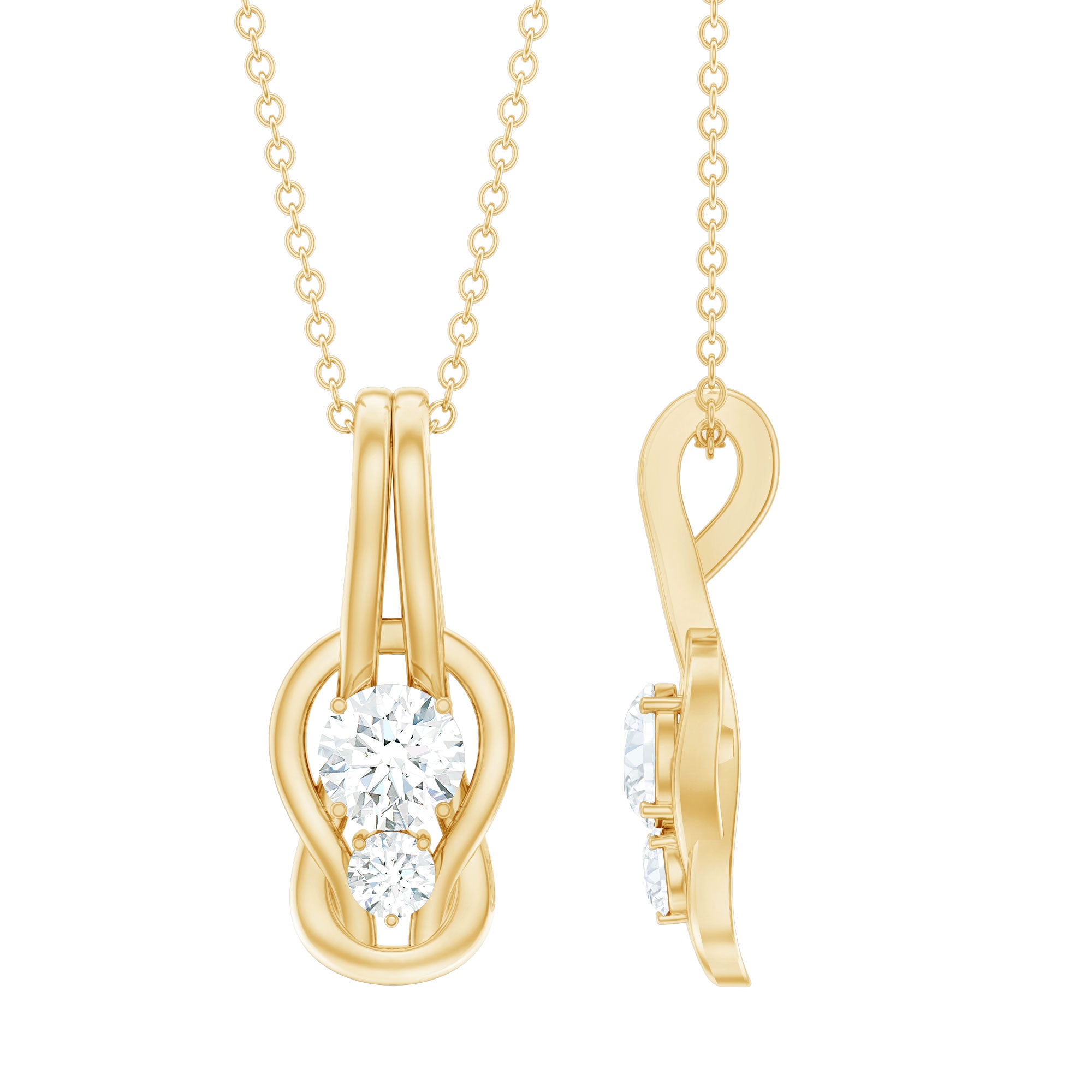 Turn your bad day into good with our Infinity Knot Gold Pendant featuring Two Round Cut Moissanite set in 4 Prong Setting and adorned in Solid Gold.