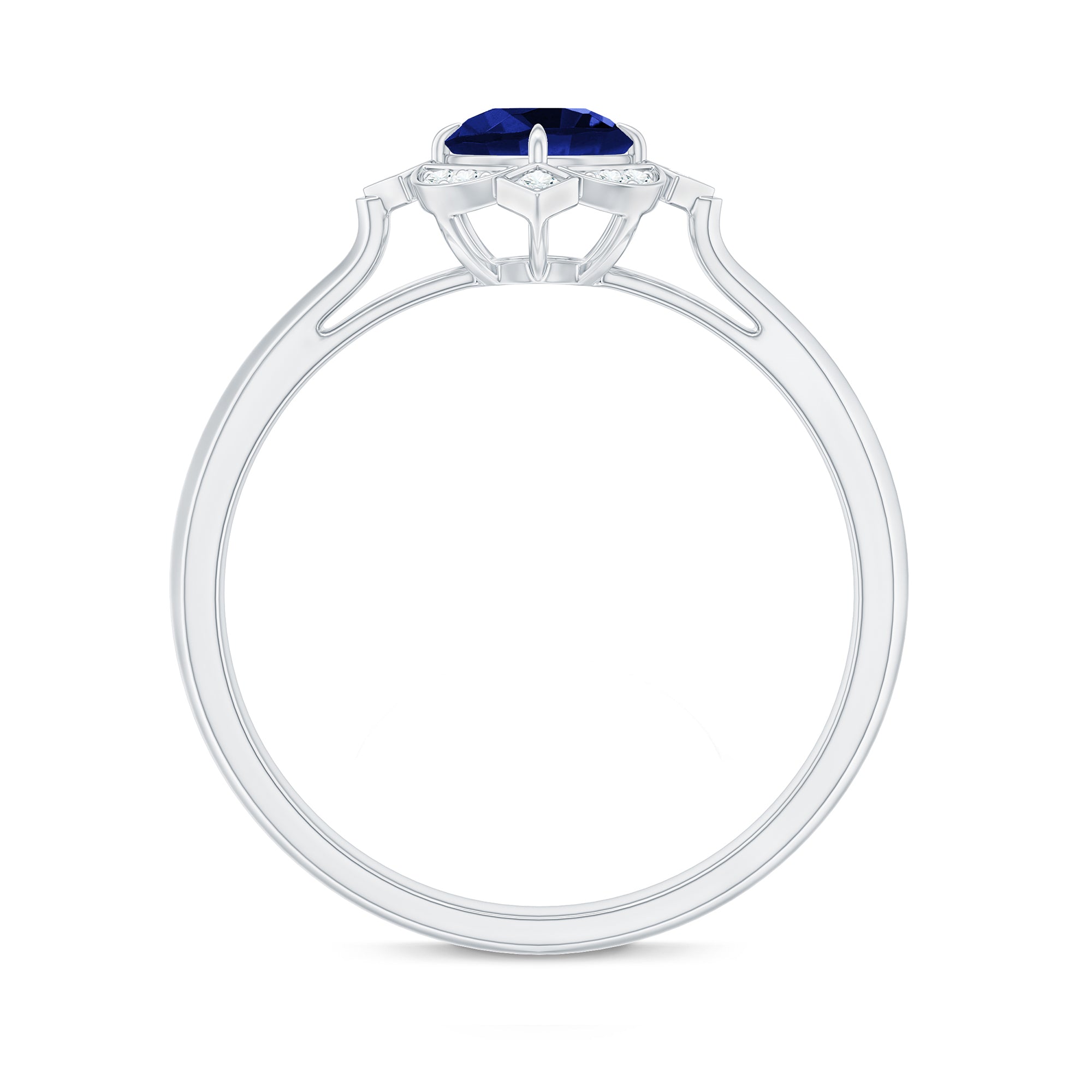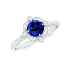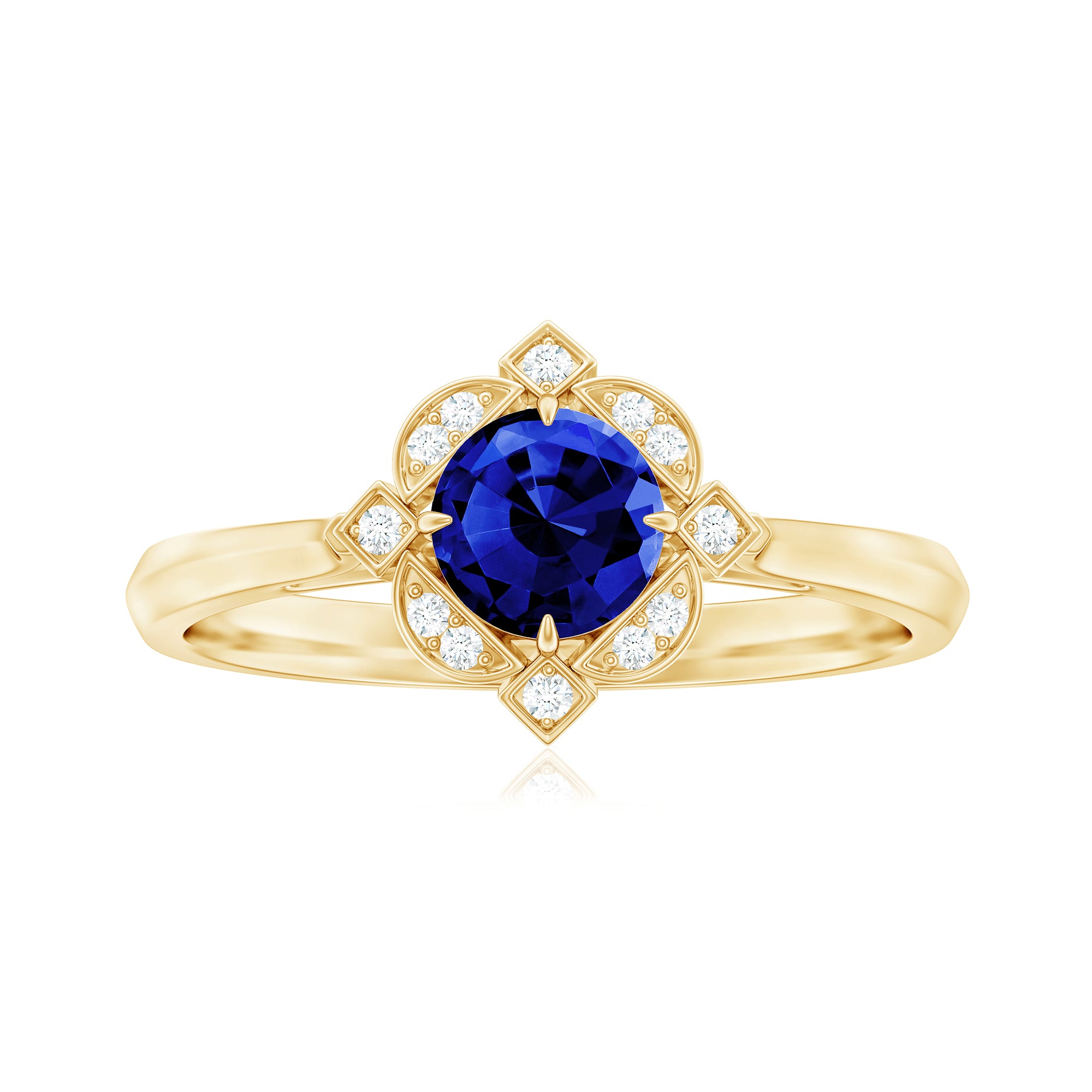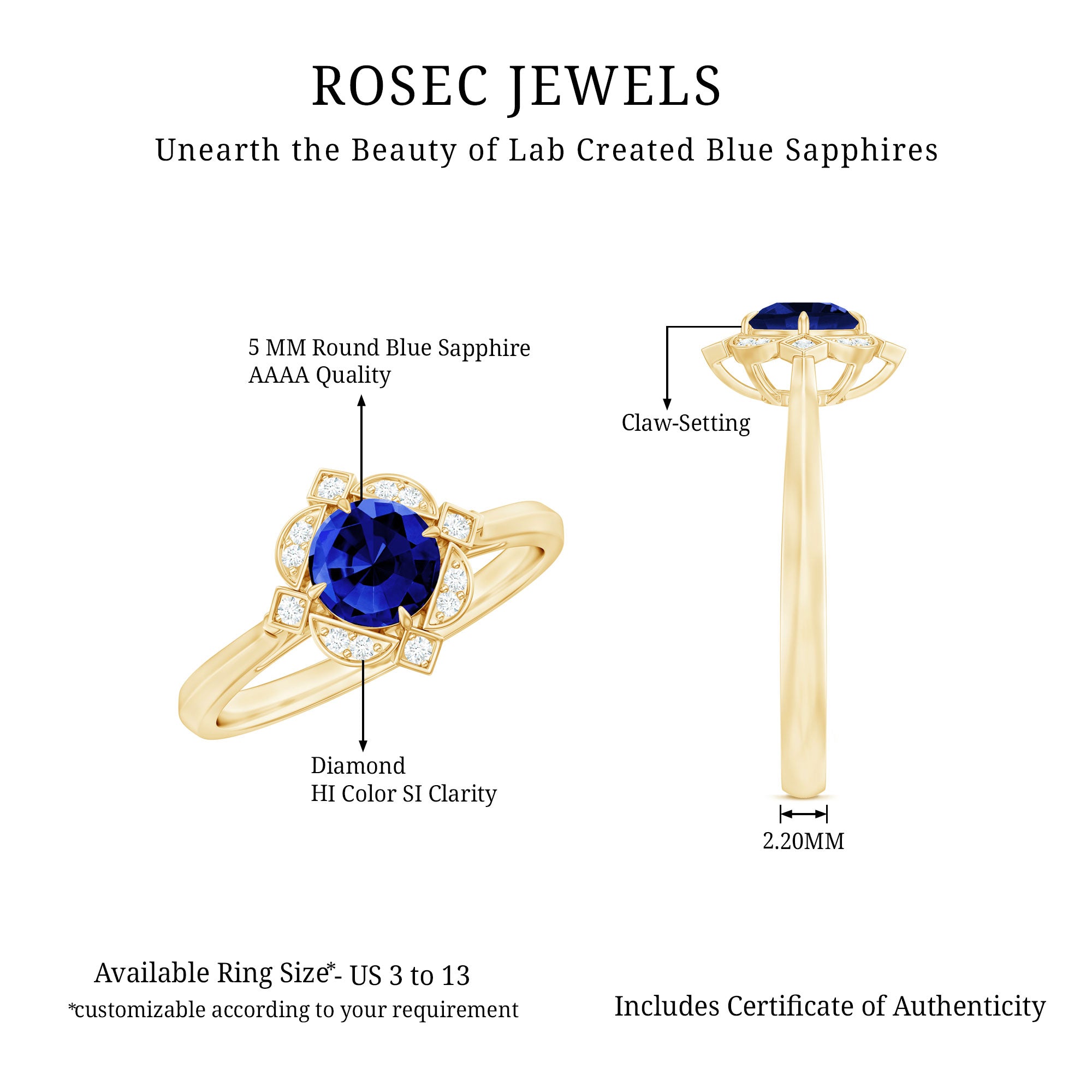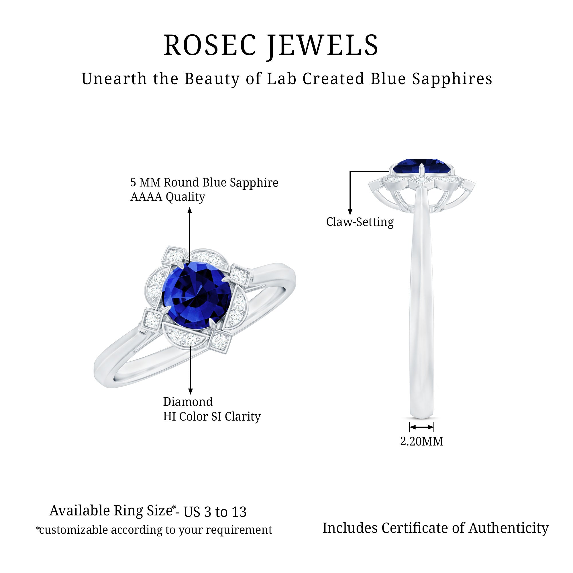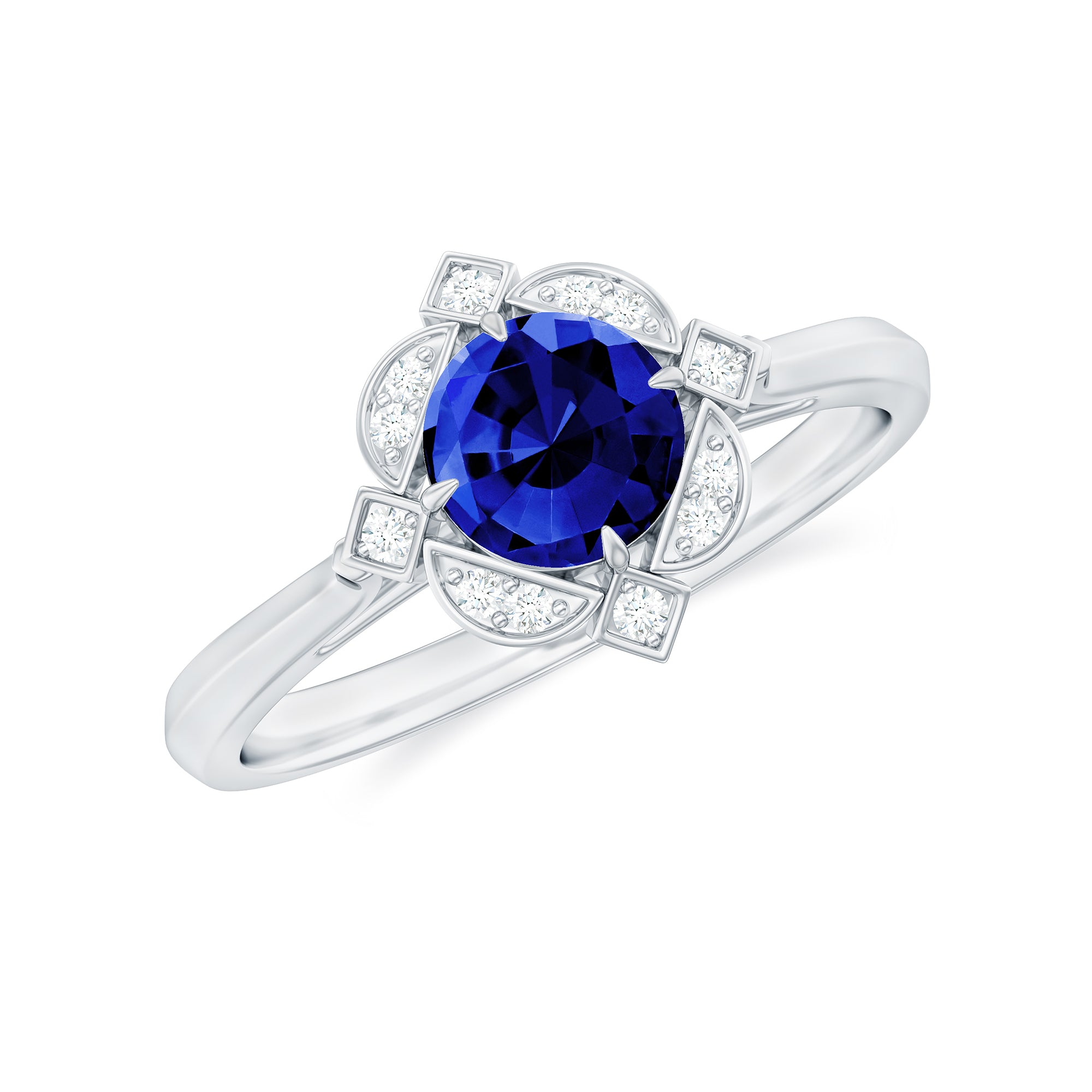 3/4 CT Vintage Created Blue Sapphire and Diamond Engagement Ring