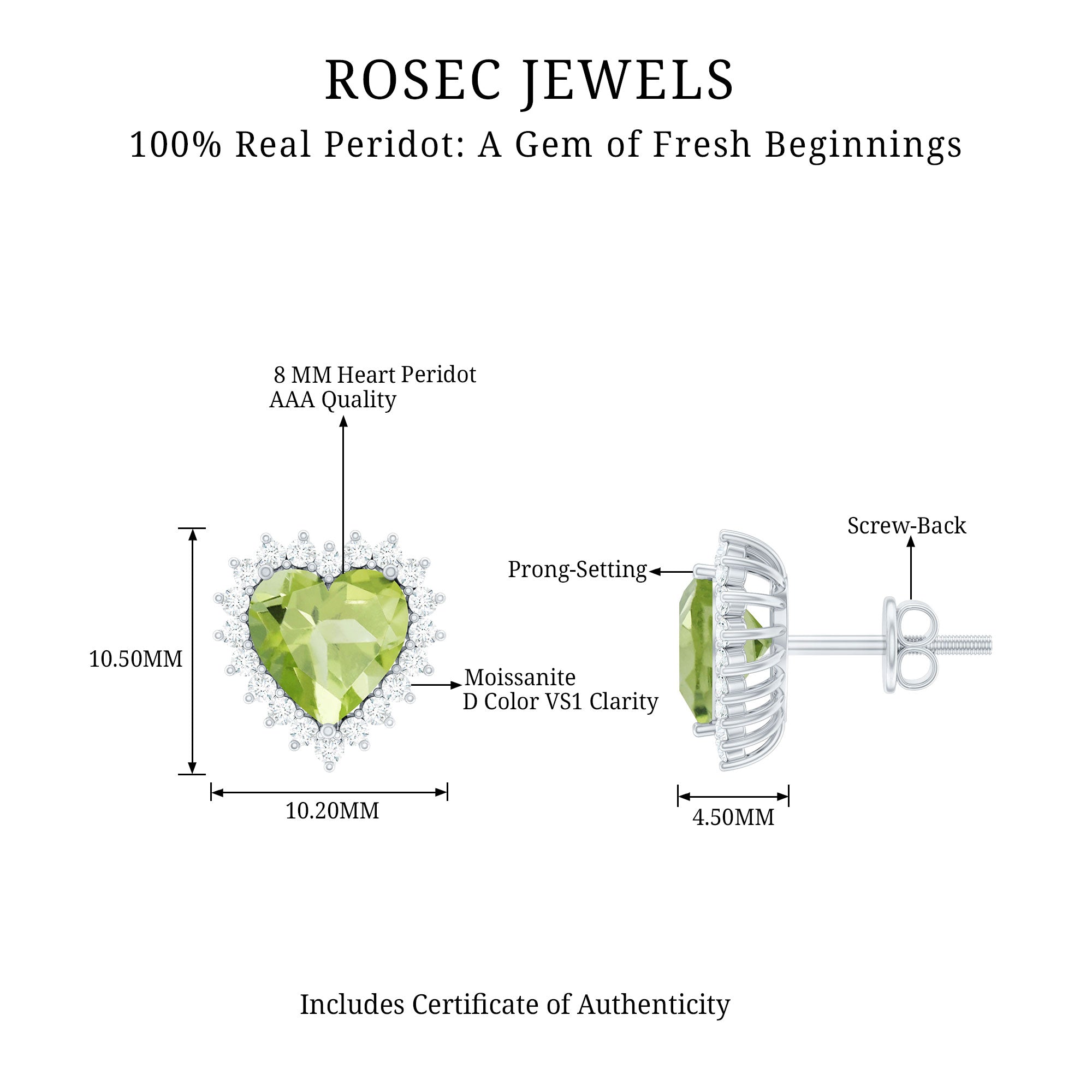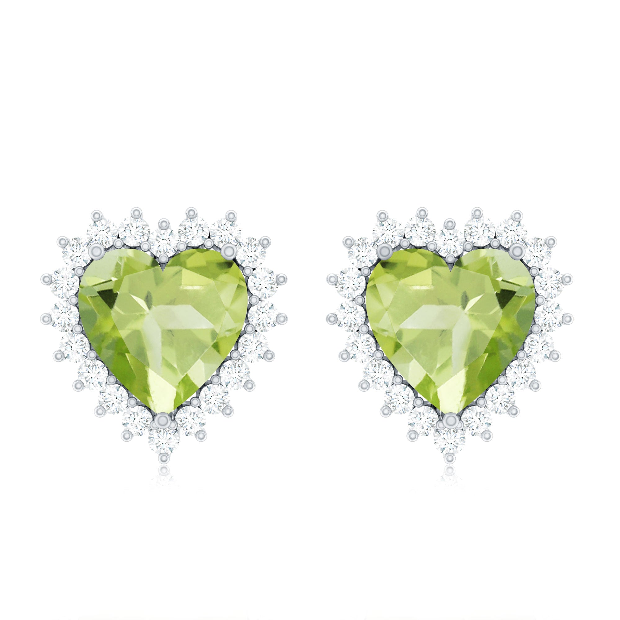 3.50 CT Heart Shaped Peridot and Moissanite Statement Stud Earrings