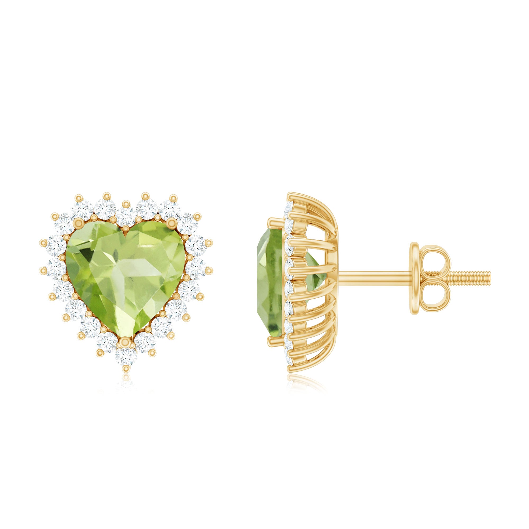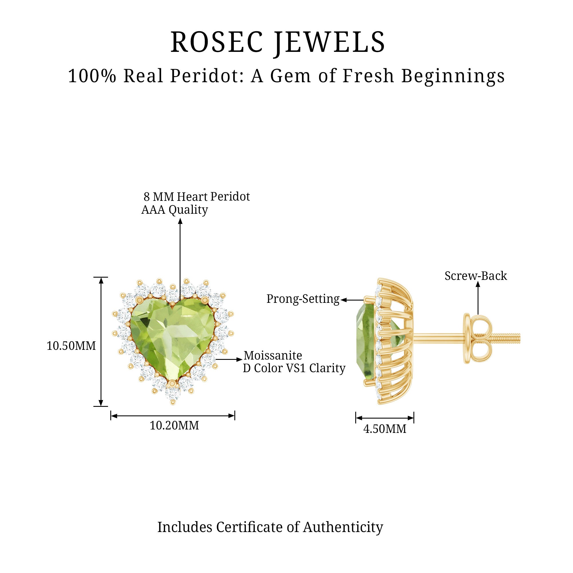Make a Statement when you flaunt these Stud Earrings adorned with a 7 MM Heart Peridot Solitaire accentuated by Round Brilliant Moissanite Halo adding to the look of these Statement Stud Earrings.