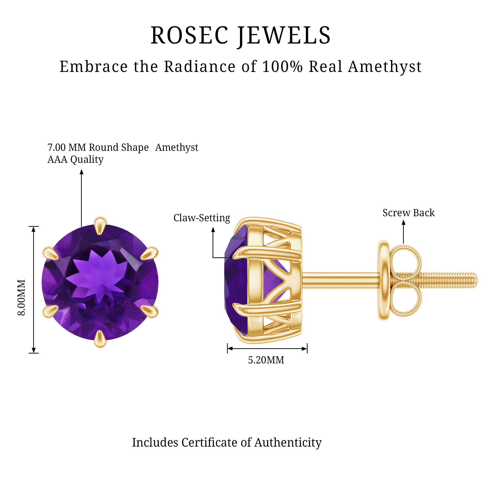 Elegantly designed, these Solitaire Stud Earrings are designed with Round Shaped Amethyst to make for a classic choice for your everyday style. The screw back closure helps keep the earrings secured in place.