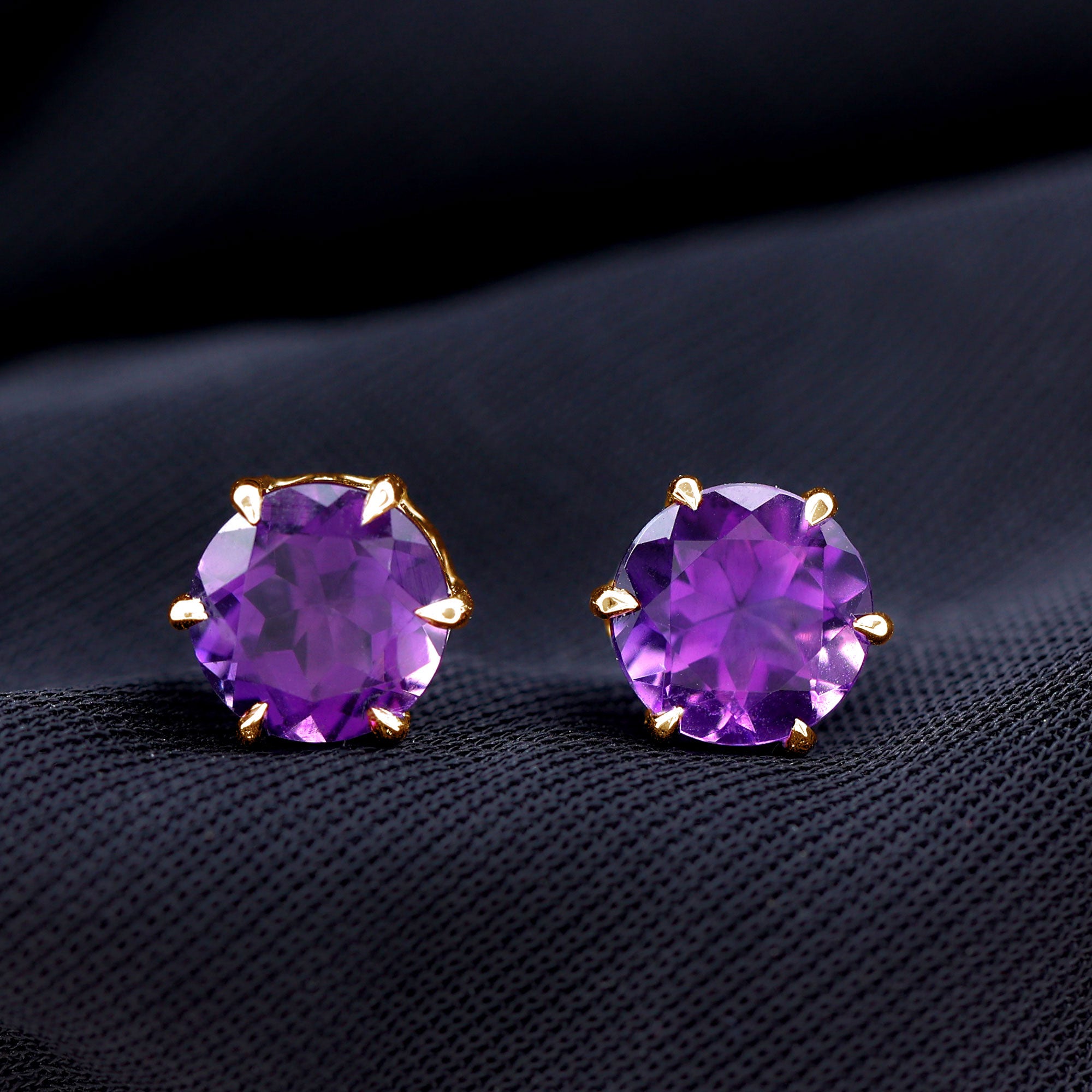 Solitaire Stud Earrings with Round Shaped Amethyst