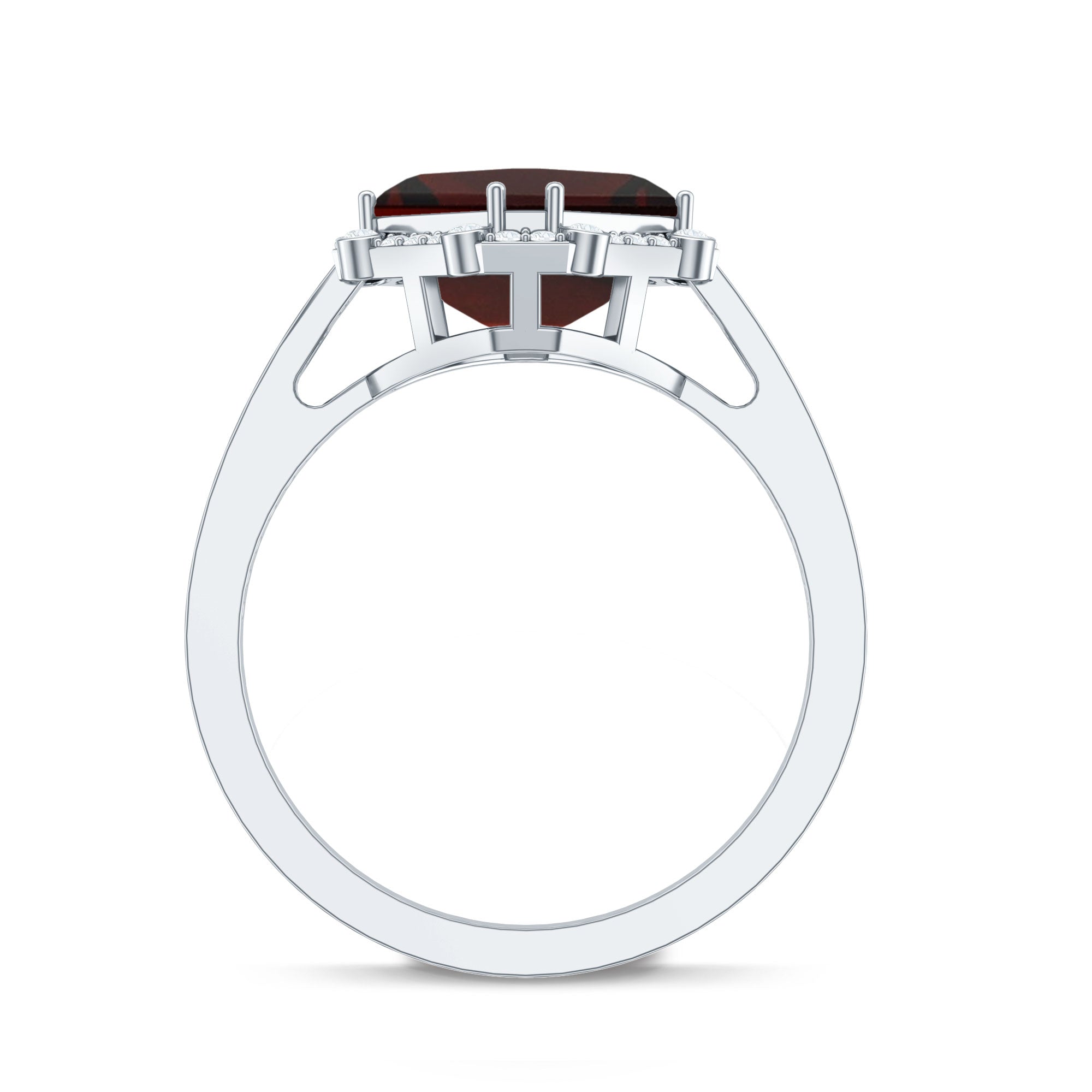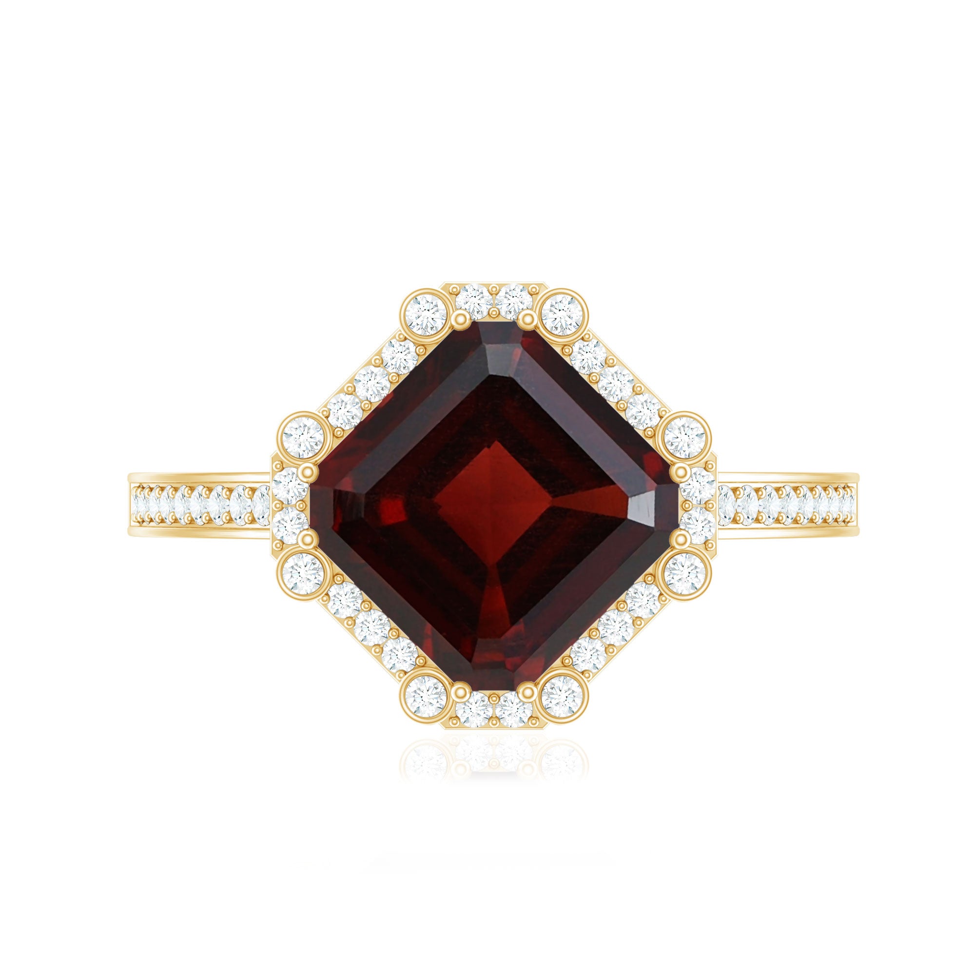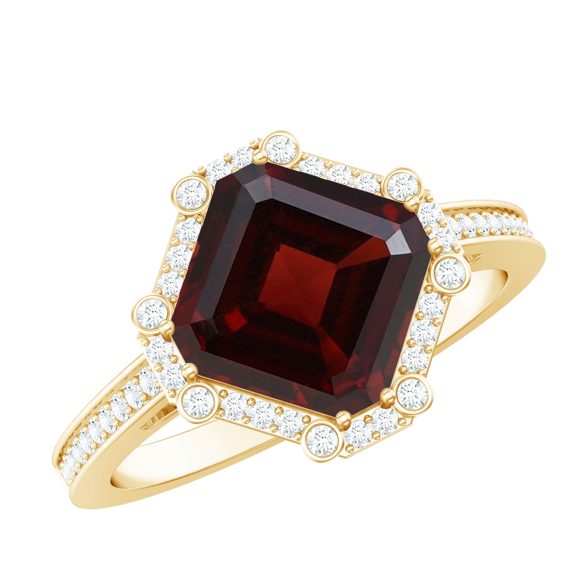 The subtle elegance of this Garnet Engagement Ring is what makes you stand out from the crowd. The Asscher Cut Garnet is accentuated by Round Diamond arranged as an accent. This Antique Garnet Engagement Ring is a beautiful piece of fine jewelry. If you are looking for a Designer Engagement Ring, go for this Garnet Ring and impress your lady.