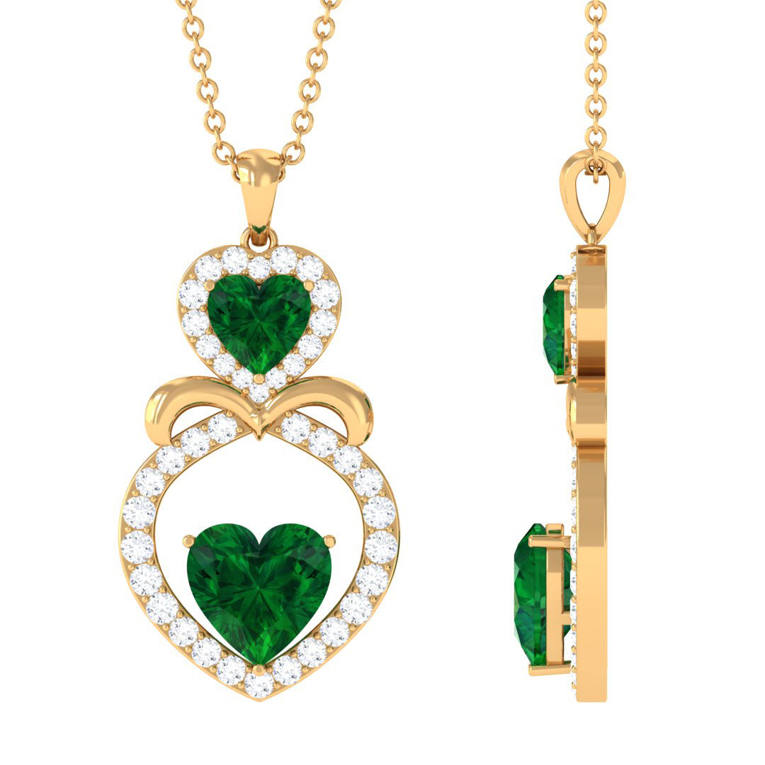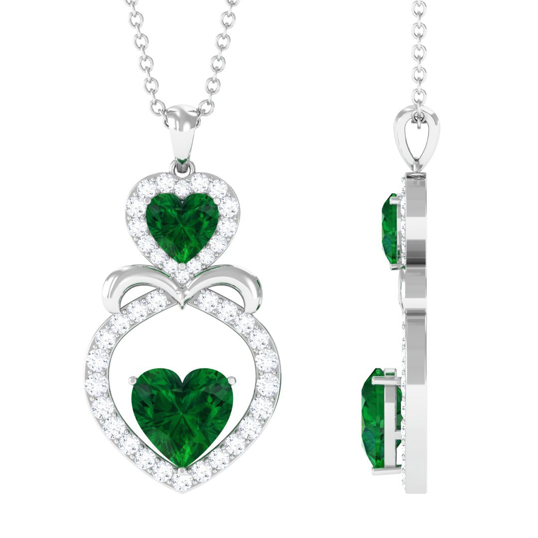 3.75 CT Designer Created Emerald and Diamond Heart Infinity Pendant