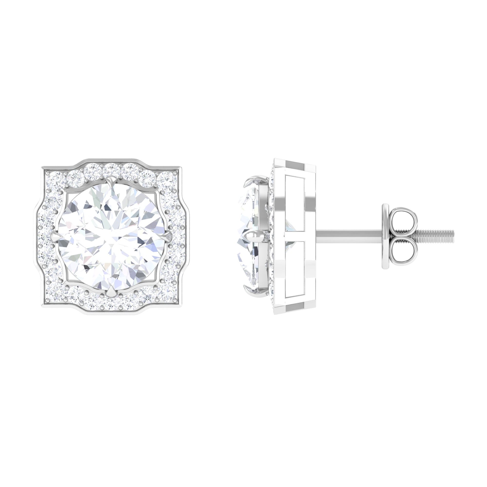 3.75 CT Moissanite Vintage Inspired Halo Stud Earrings