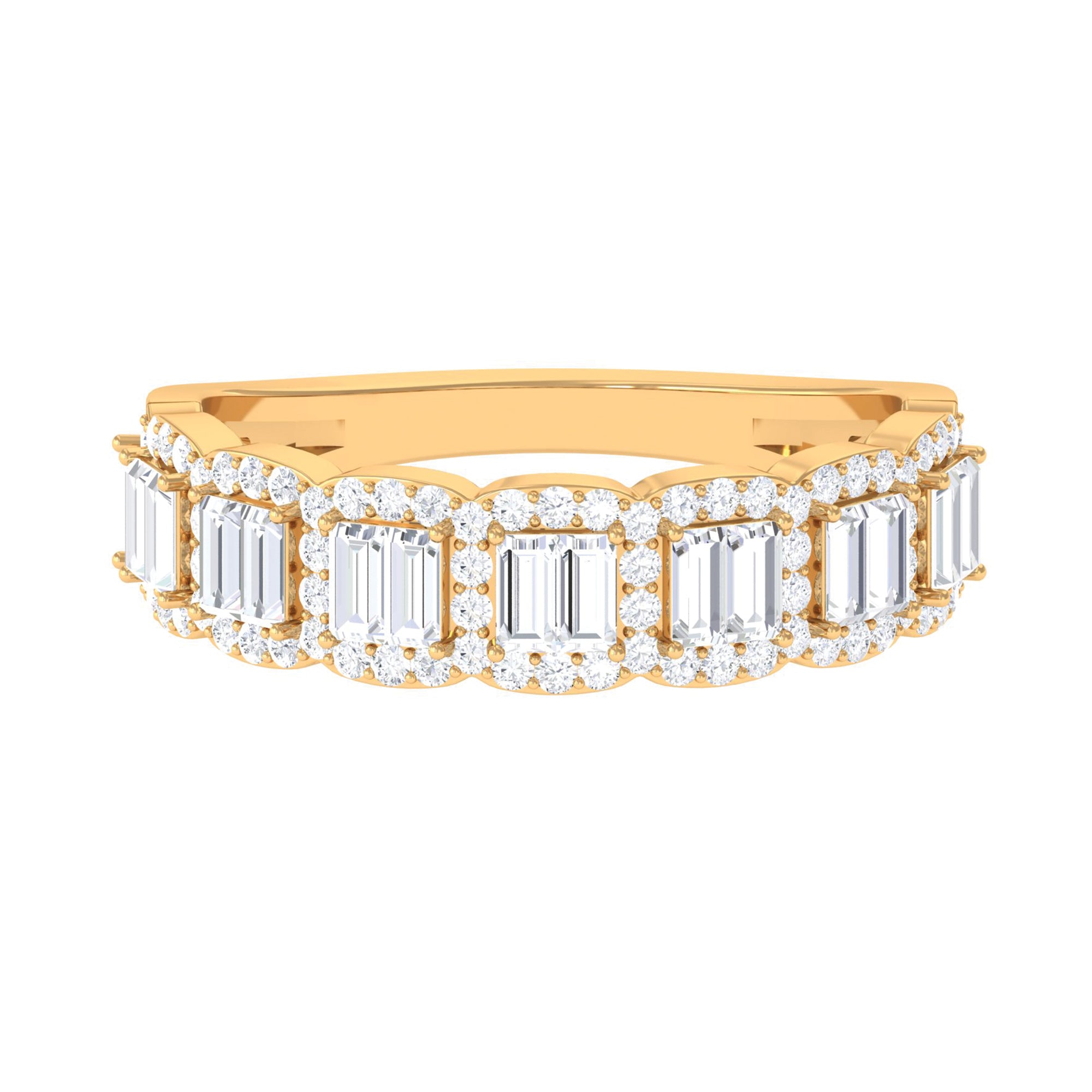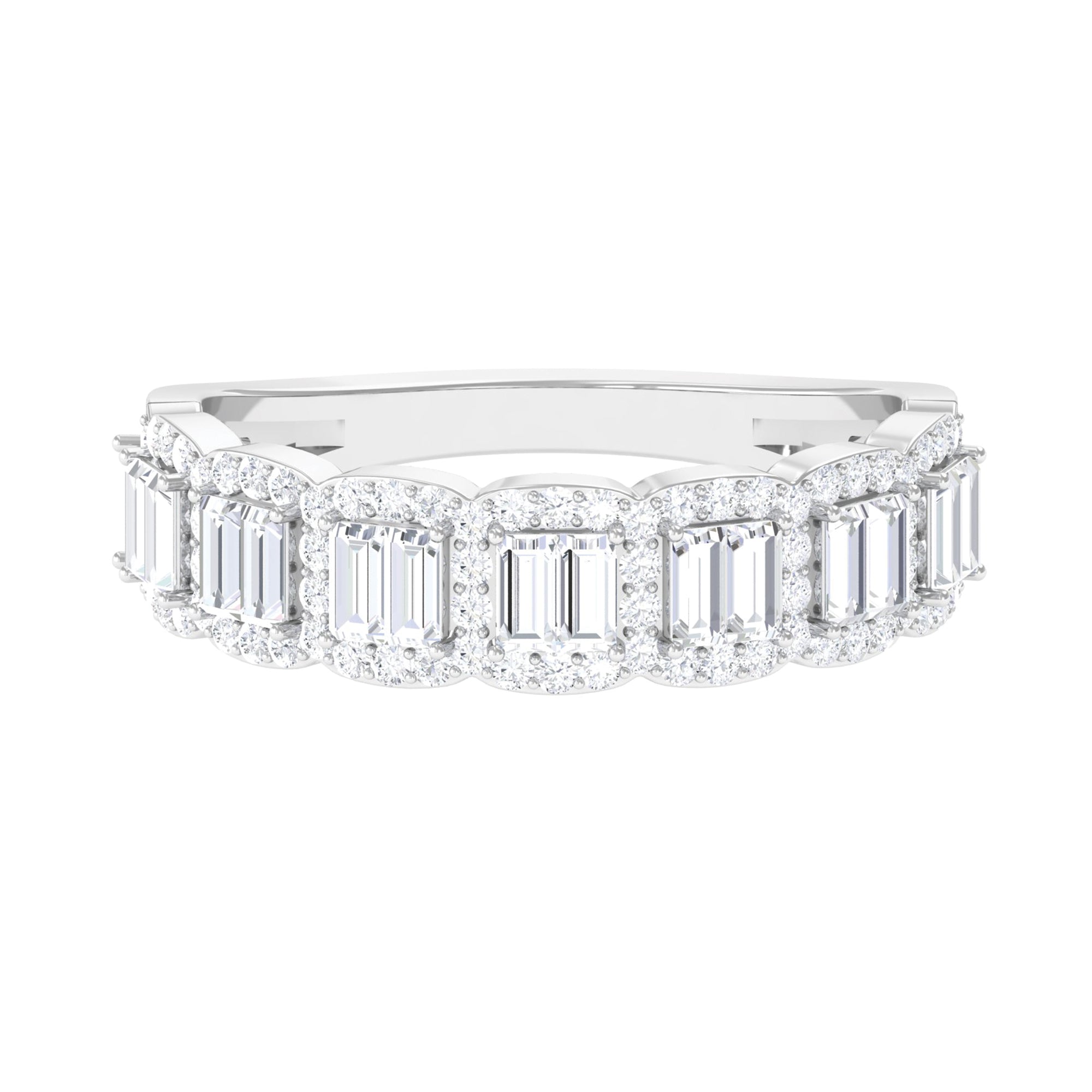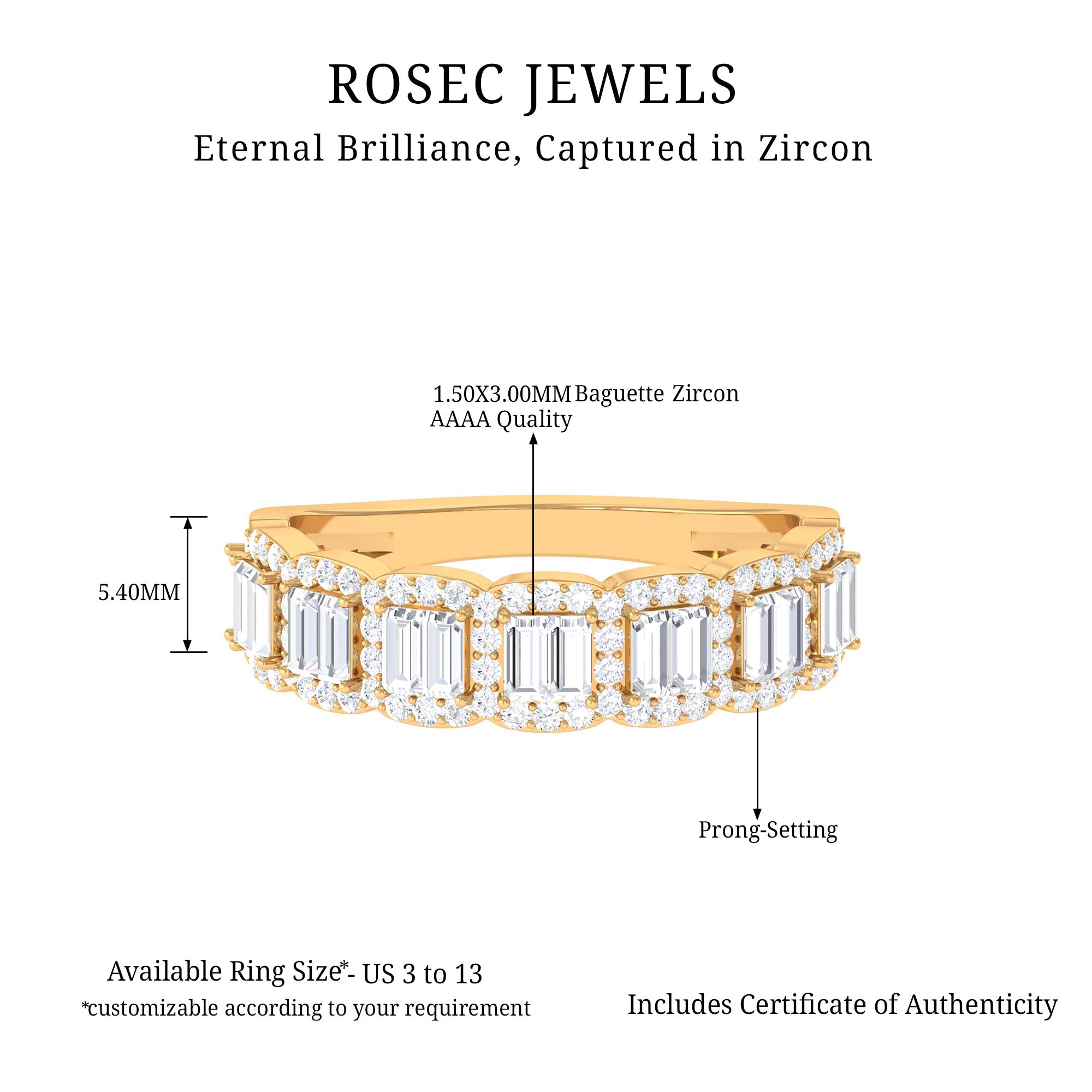 Behold the exquisite beauty of this Sparkling Half Eternity Ring, adorned with Baguette Shape Zircon and encircled by a halo of Round Shape Zircon. The stunning design of this Designer Eternity Ring is sure to captivate anyones heart, making it an ideal gift for your loved ones on any special occasion.