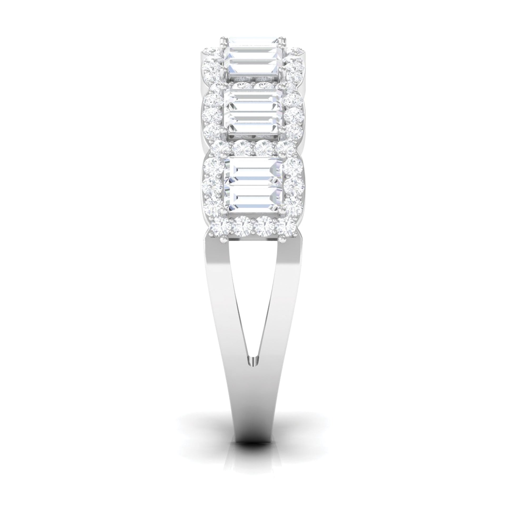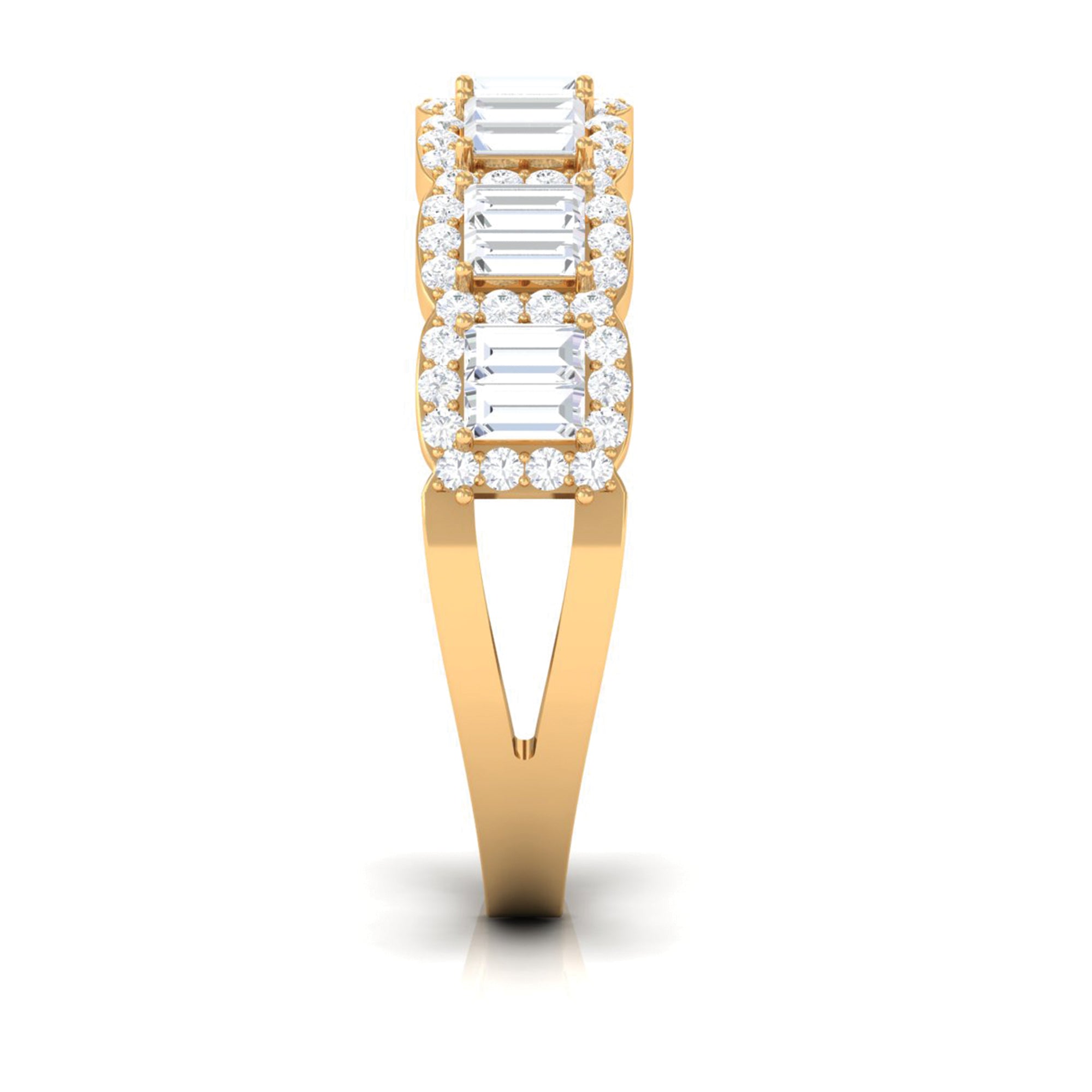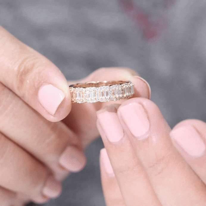 Behold the exquisite beauty of this Sparkling Half Eternity Ring, adorned with Baguette Shape Zircon and encircled by a halo of Round Shape Zircon. The stunning design of this Designer Eternity Ring is sure to captivate anyones heart, making it an ideal gift for your loved ones on any special occasion.