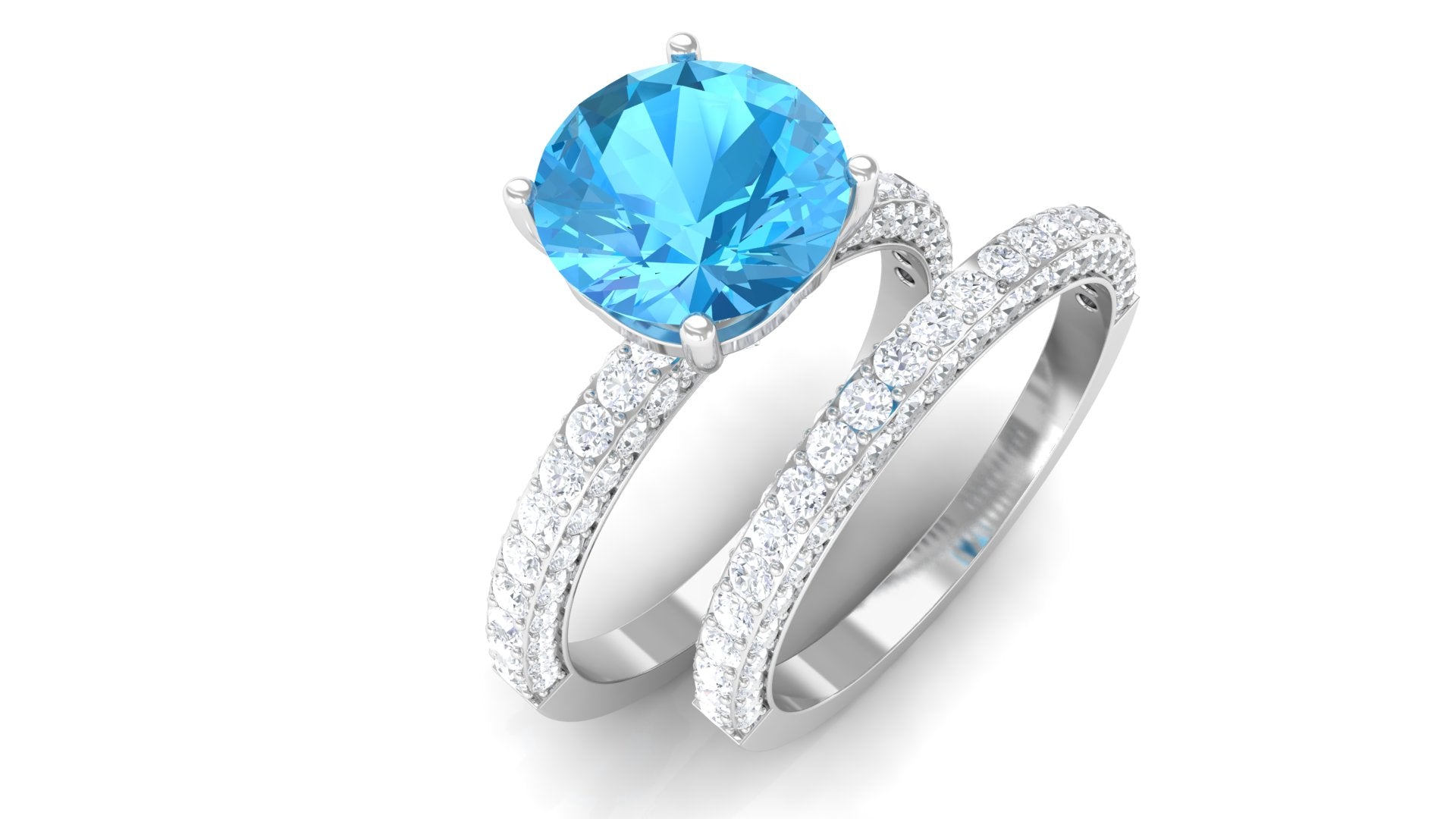 3.75 CT Swiss Blue Topaz and Moissanite Wedding Ring Set