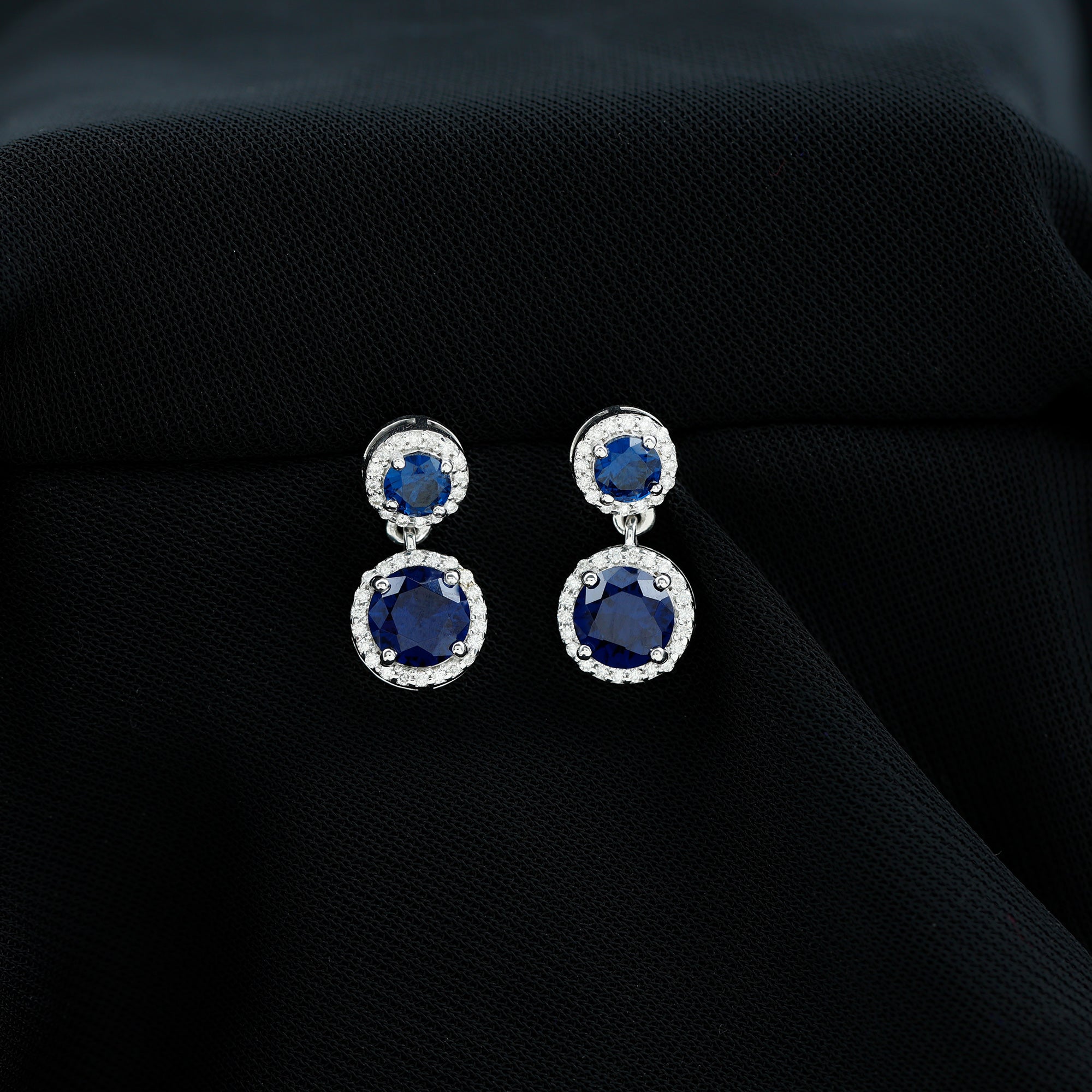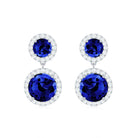3 CT Created Blue Sapphire and Moissanite Halo Dangle Earrings