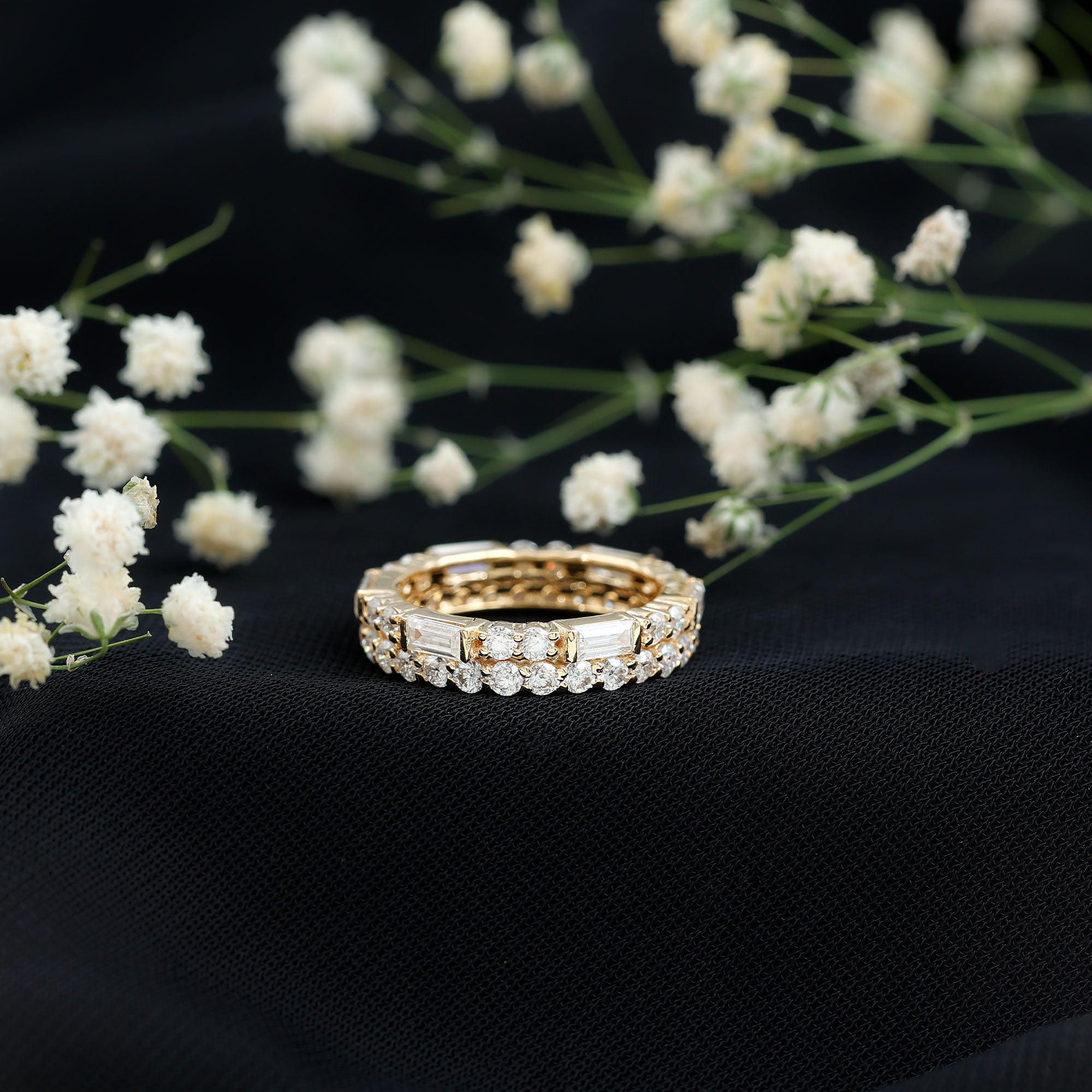 3 CT Cubic Zirconia Two Row Eternity Ring in Gold