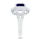 Cushion Cut Created Blue Sapphire Double Halo Engagement Ring with Moissanite
