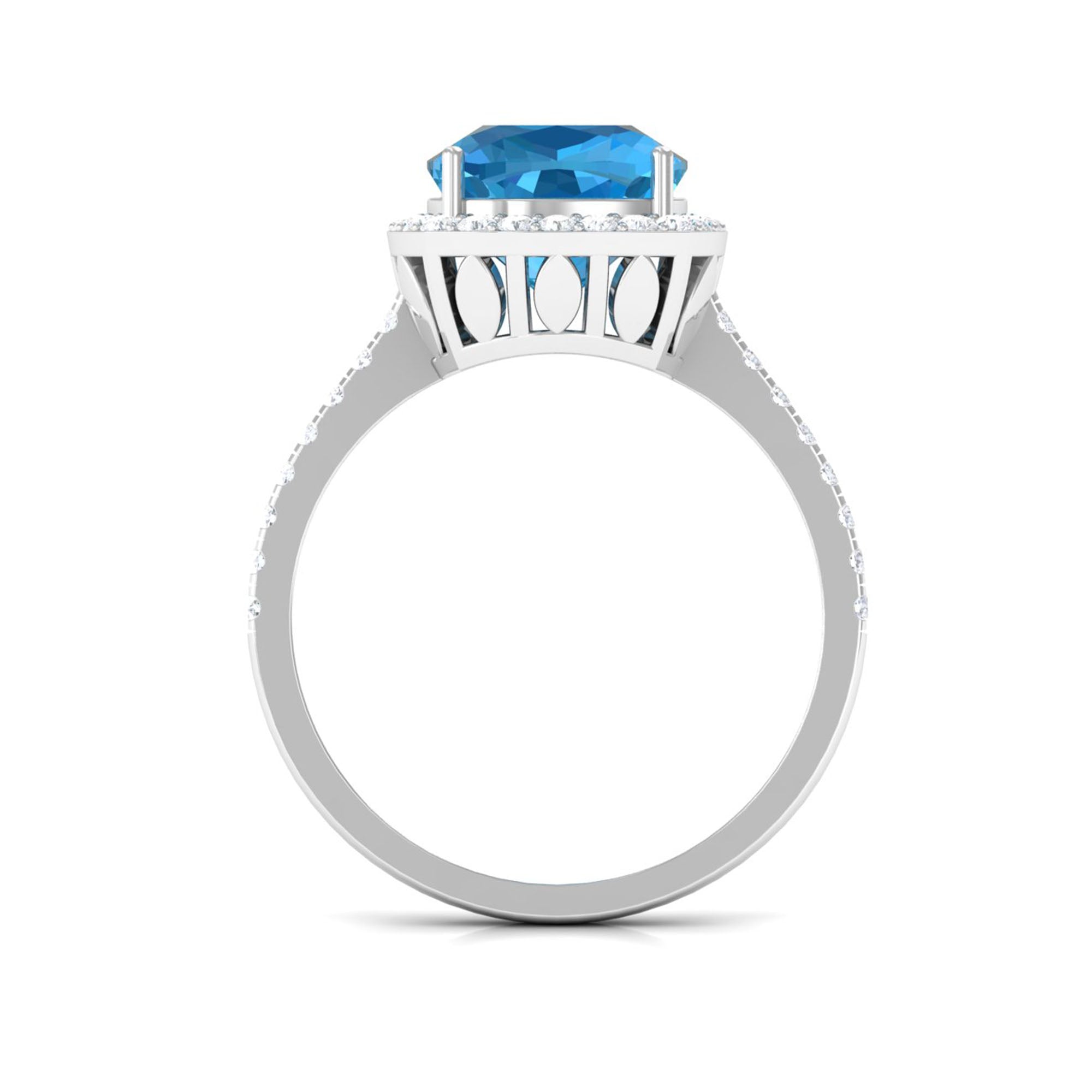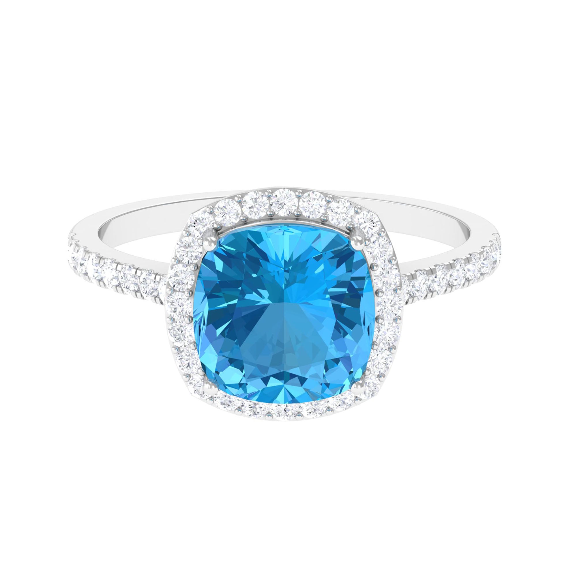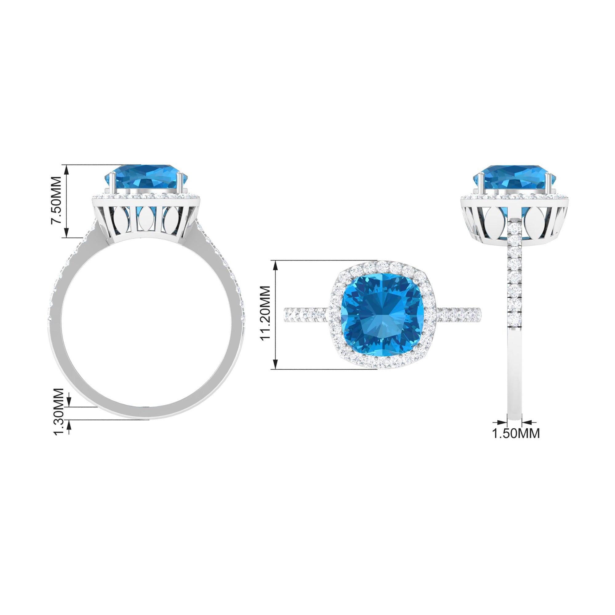 3 CT Cushion Cut Swiss Blue Topaz Solitaire Ring with Diamond Side Stones