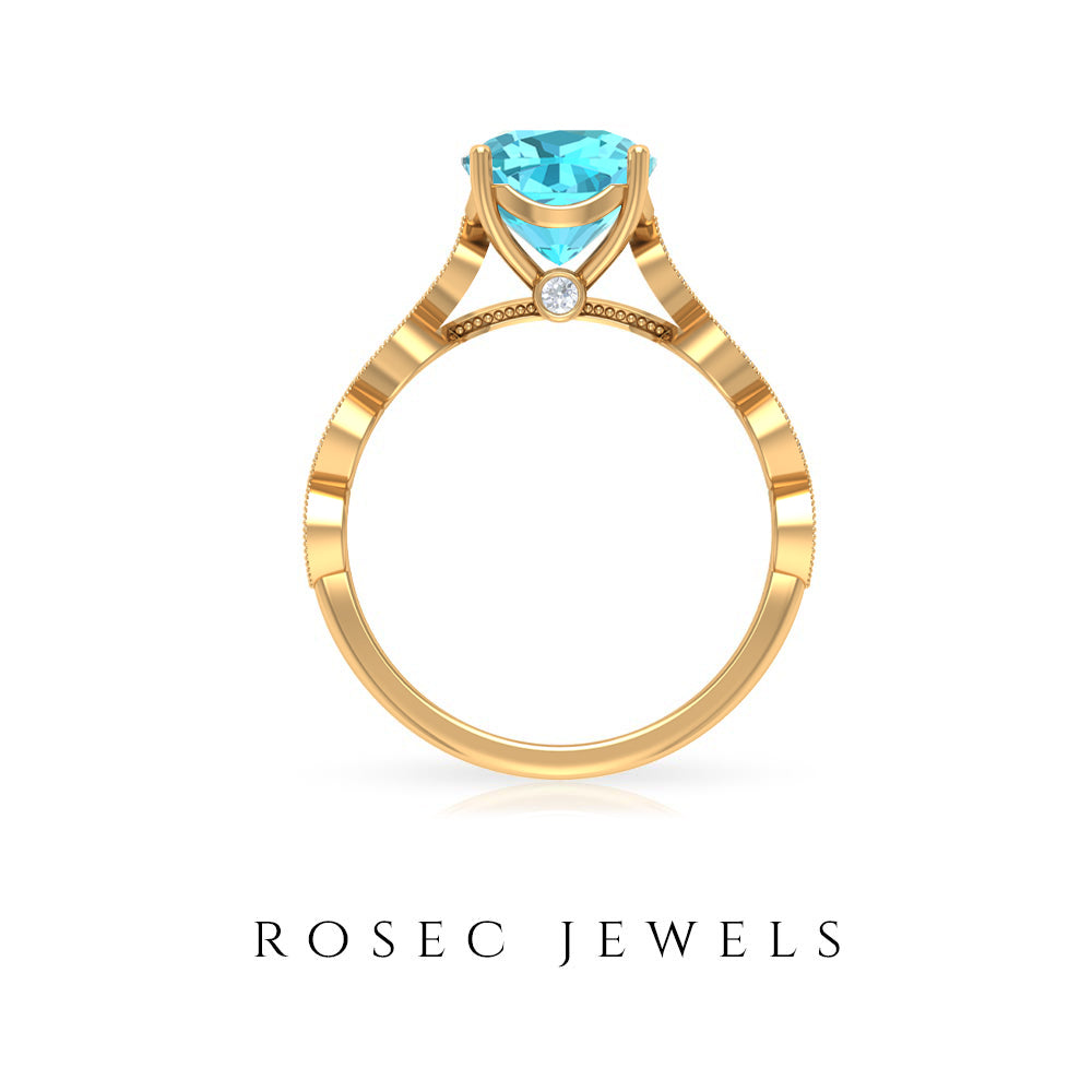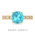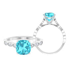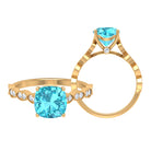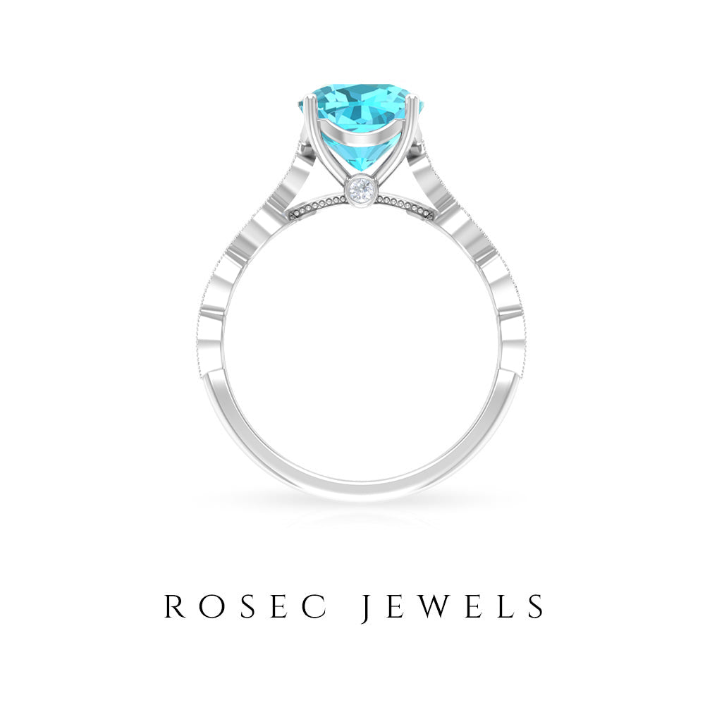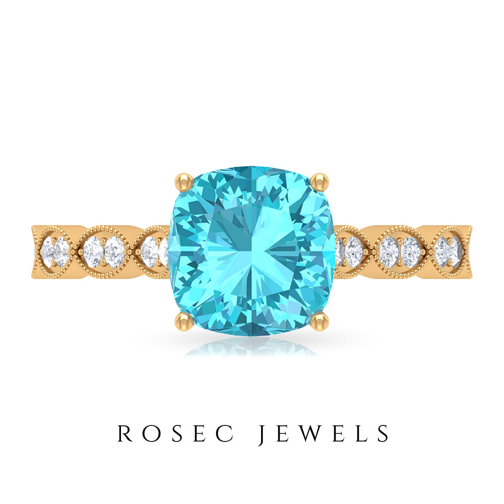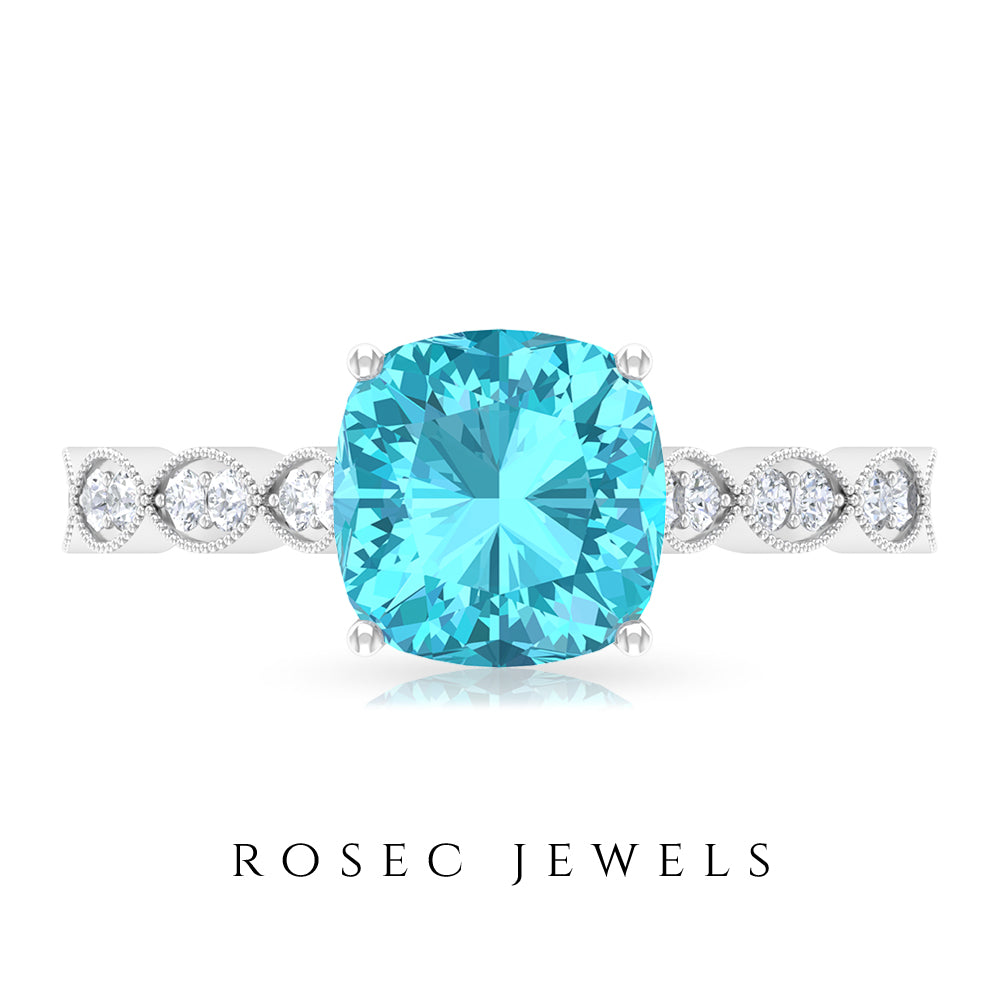 3 CT Cushion Swiss Blue Topaz Vintage Engagement Ring with Diamond