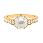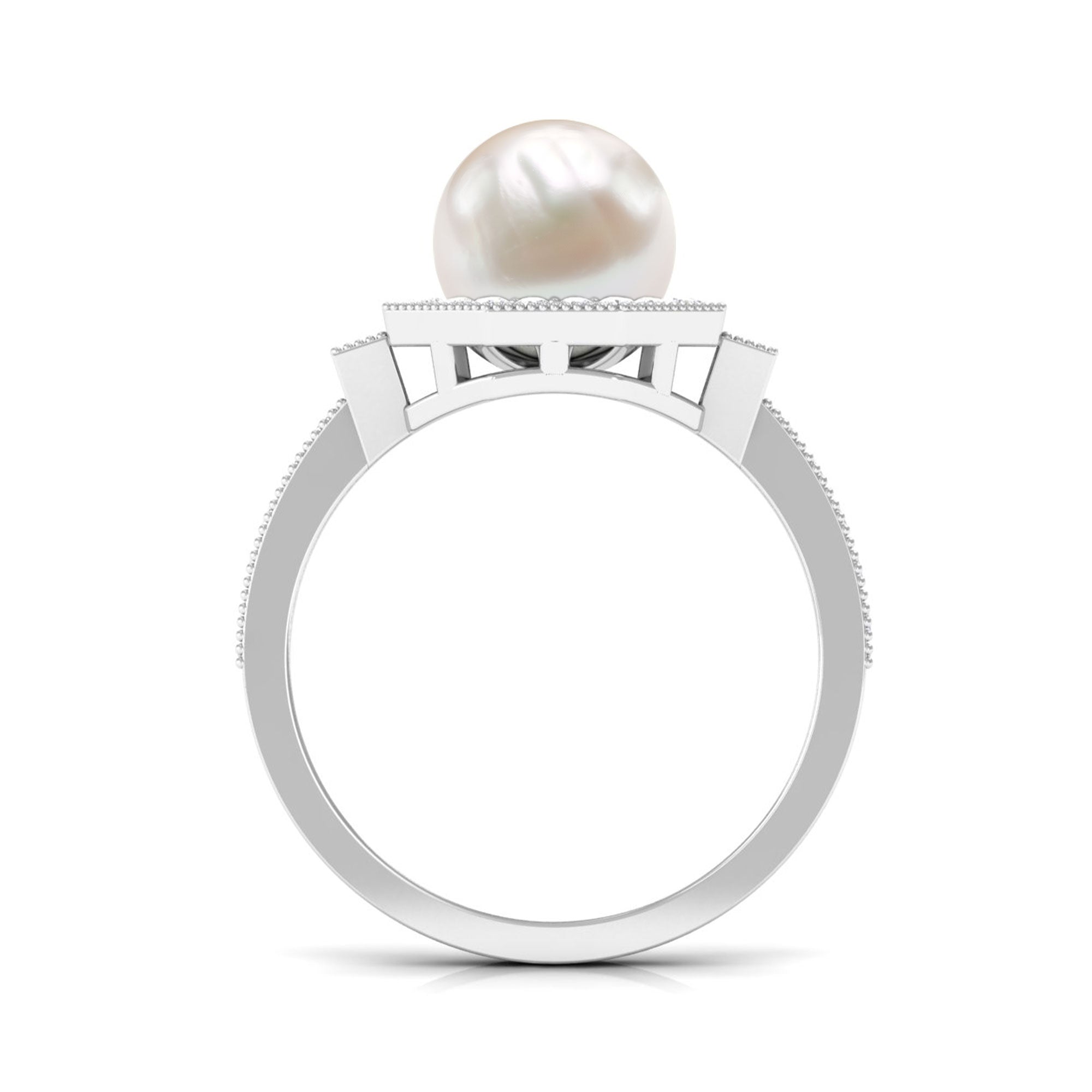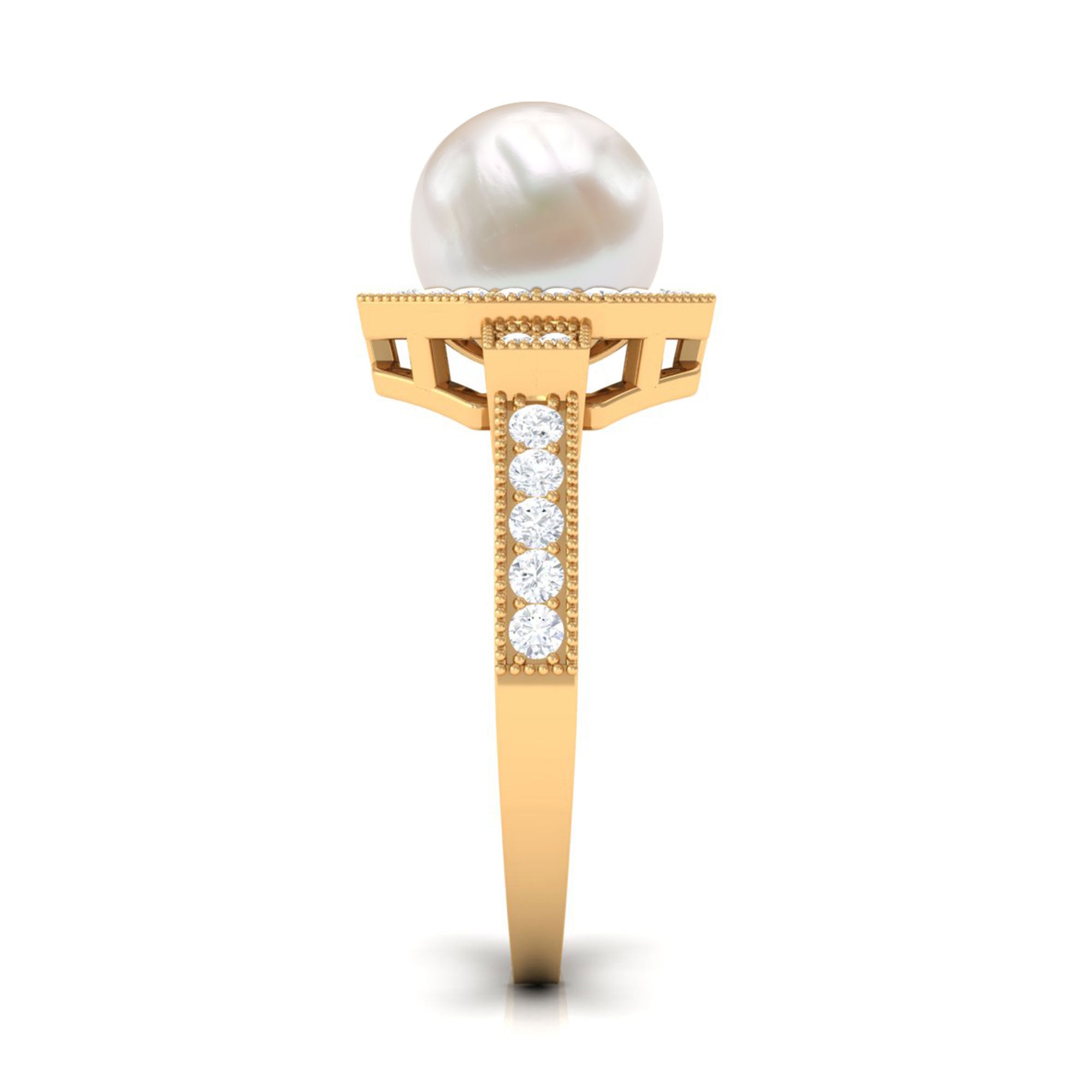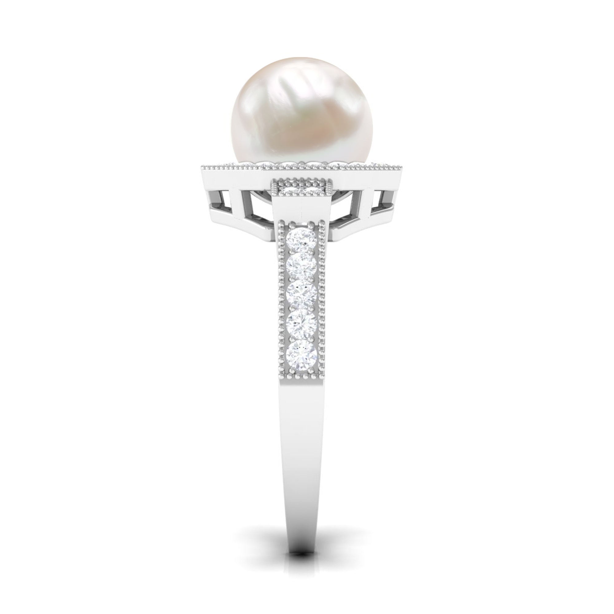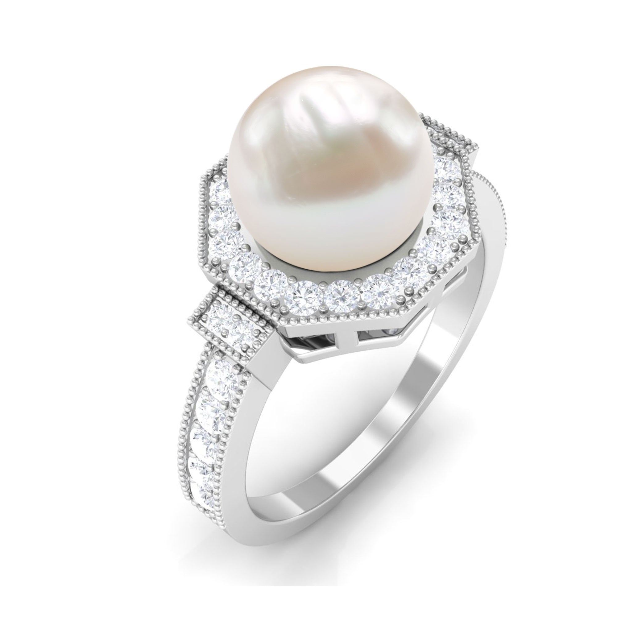 3 CT Freshwater Pearl Antique Beaded Ring with Diamond Halo