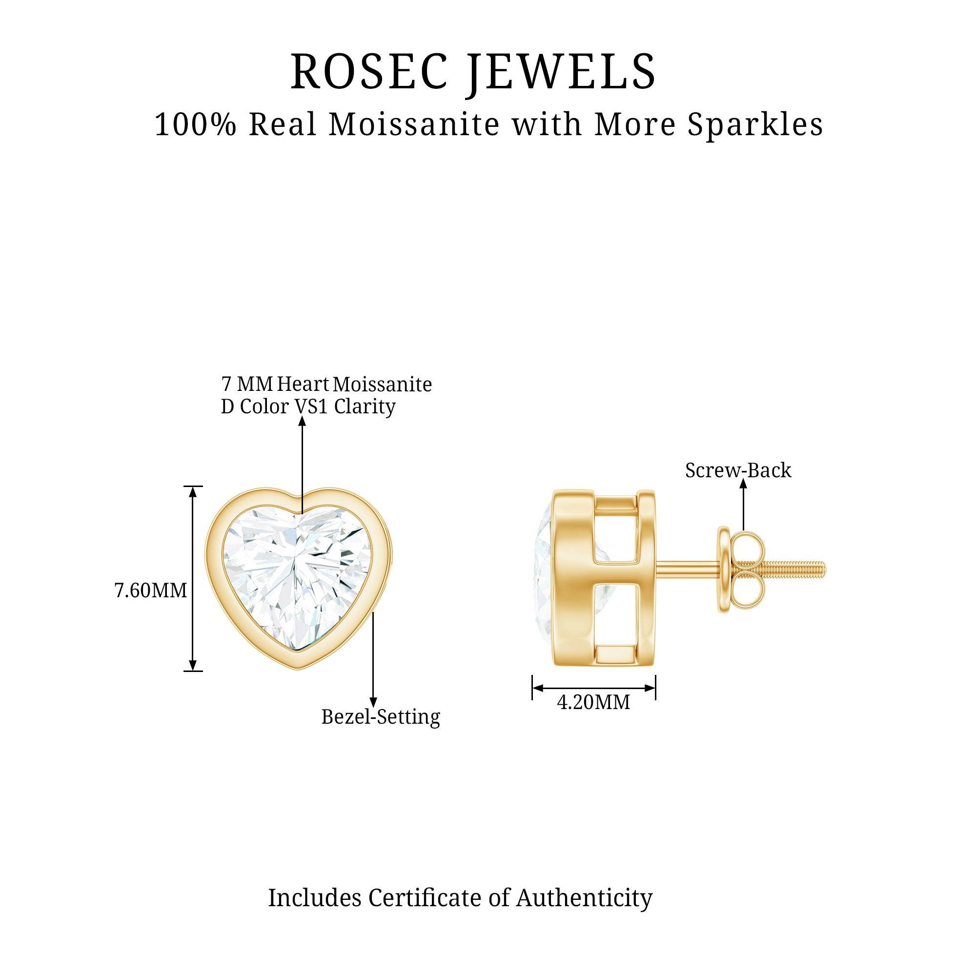 3 CT Heart Shape Moissanite Solitaire Stud Earrings in Bezel Setting