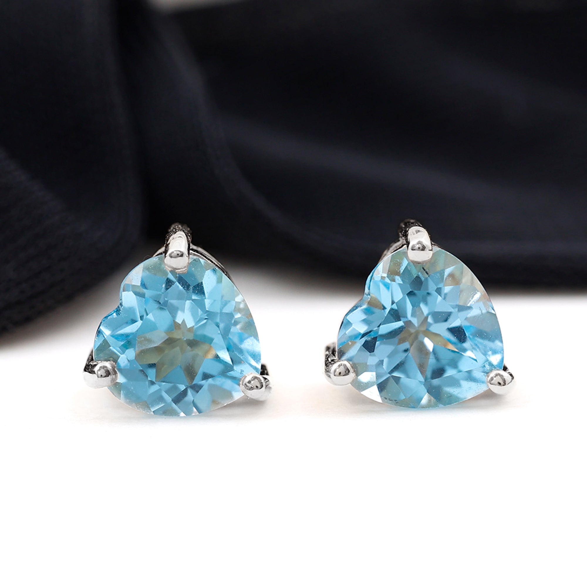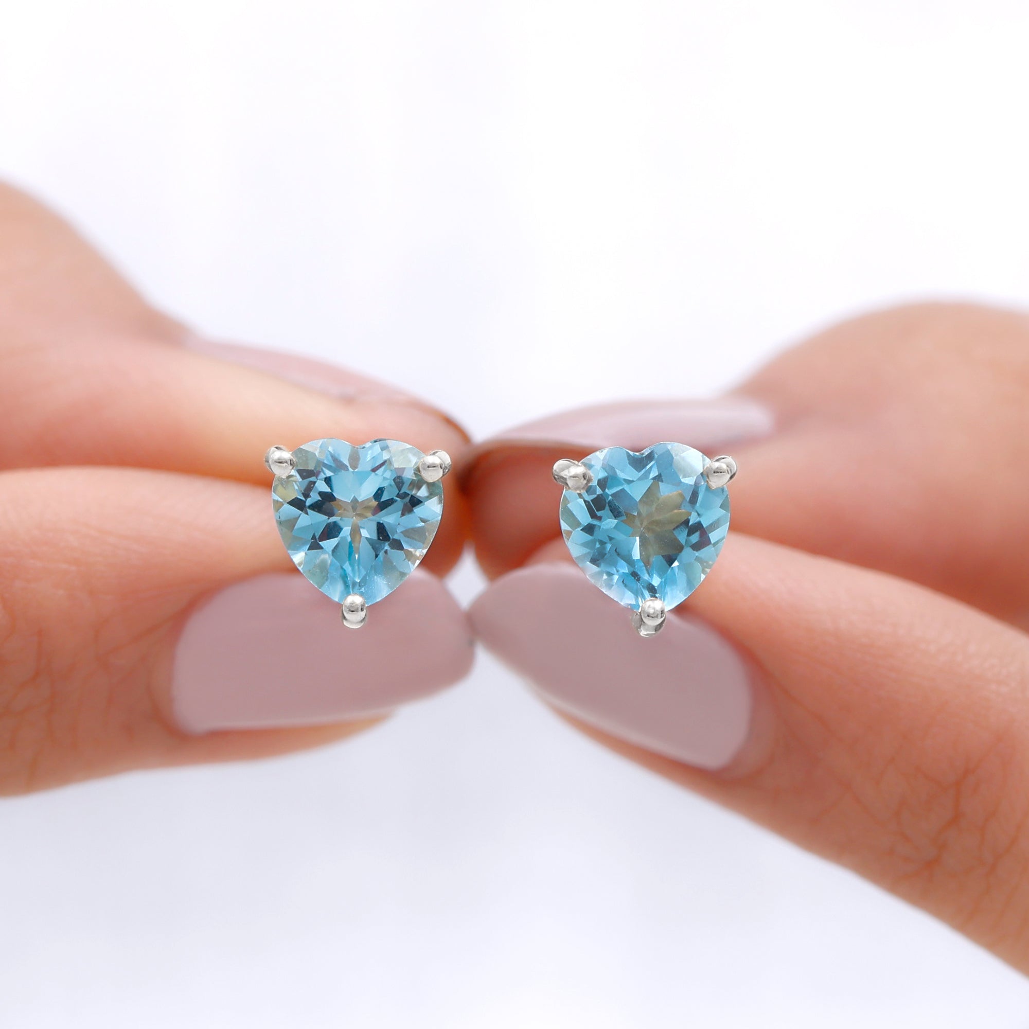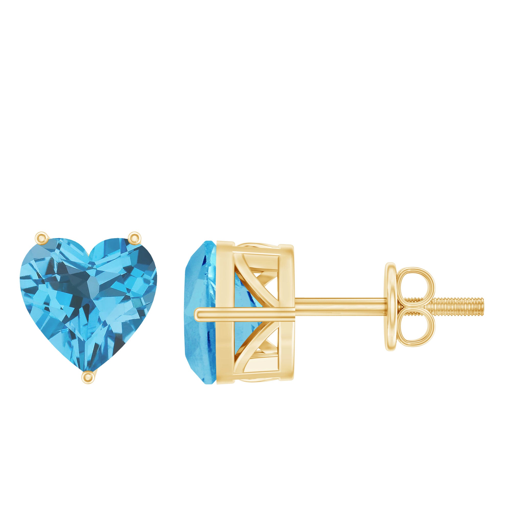 Win hearts when you flaunt these Stud Earrings embellished with a 7 MM Heart Shape Swiss Blue Topaz Solitaire in prong setting which will take your style a notch higher.